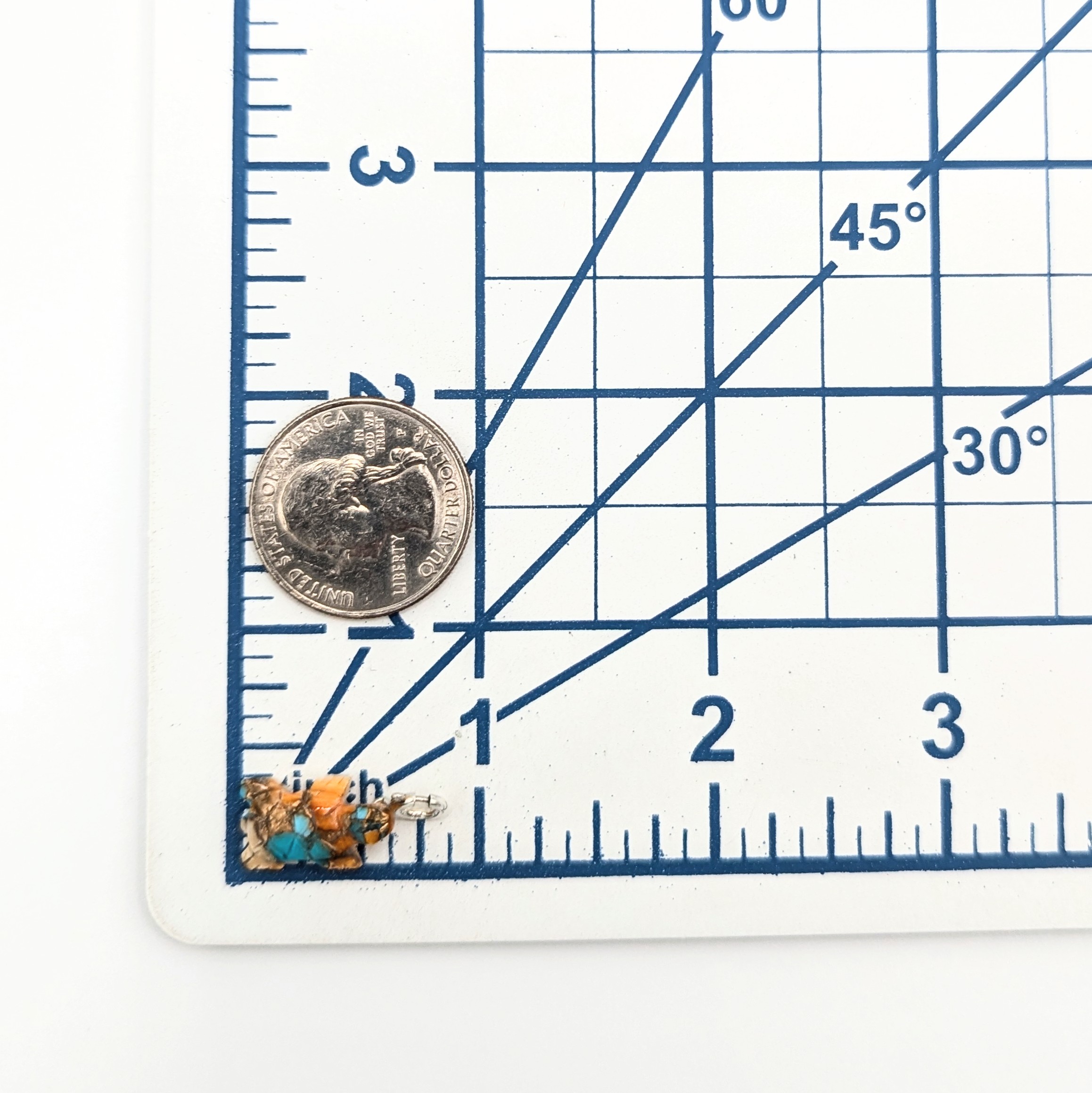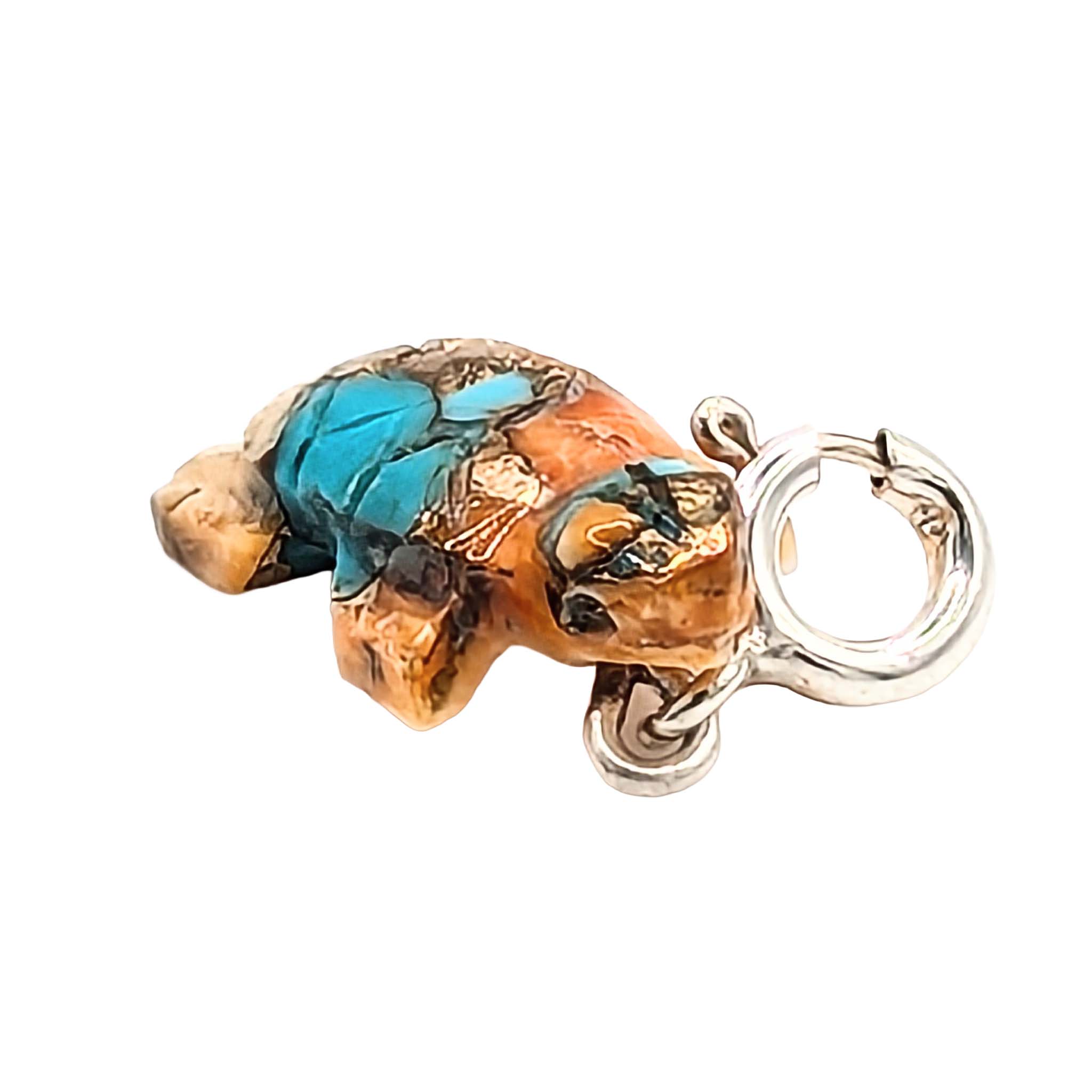 Native Hand Carved Spiny Mojave Turquoise Sterling Silver Turtle Charm 1.2g