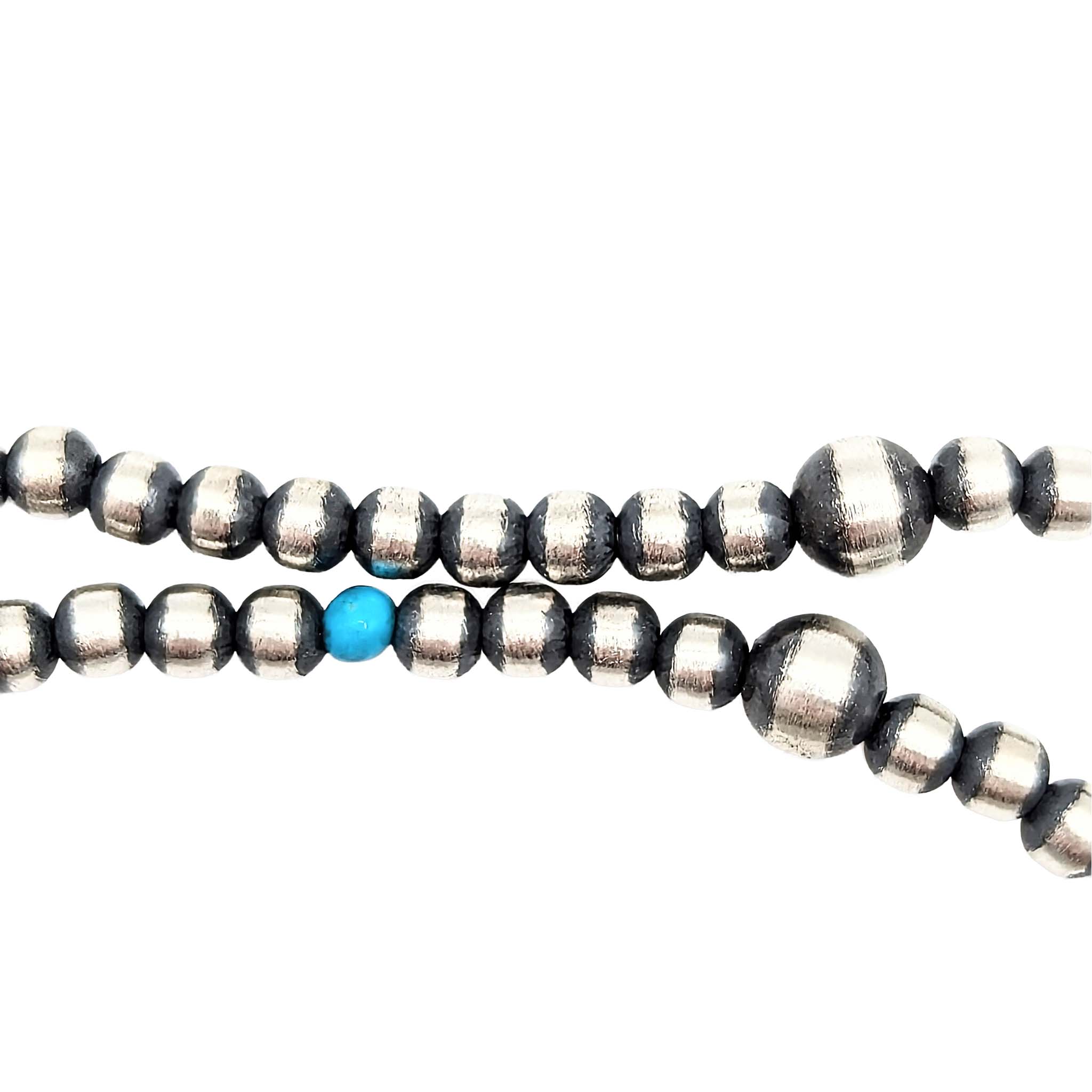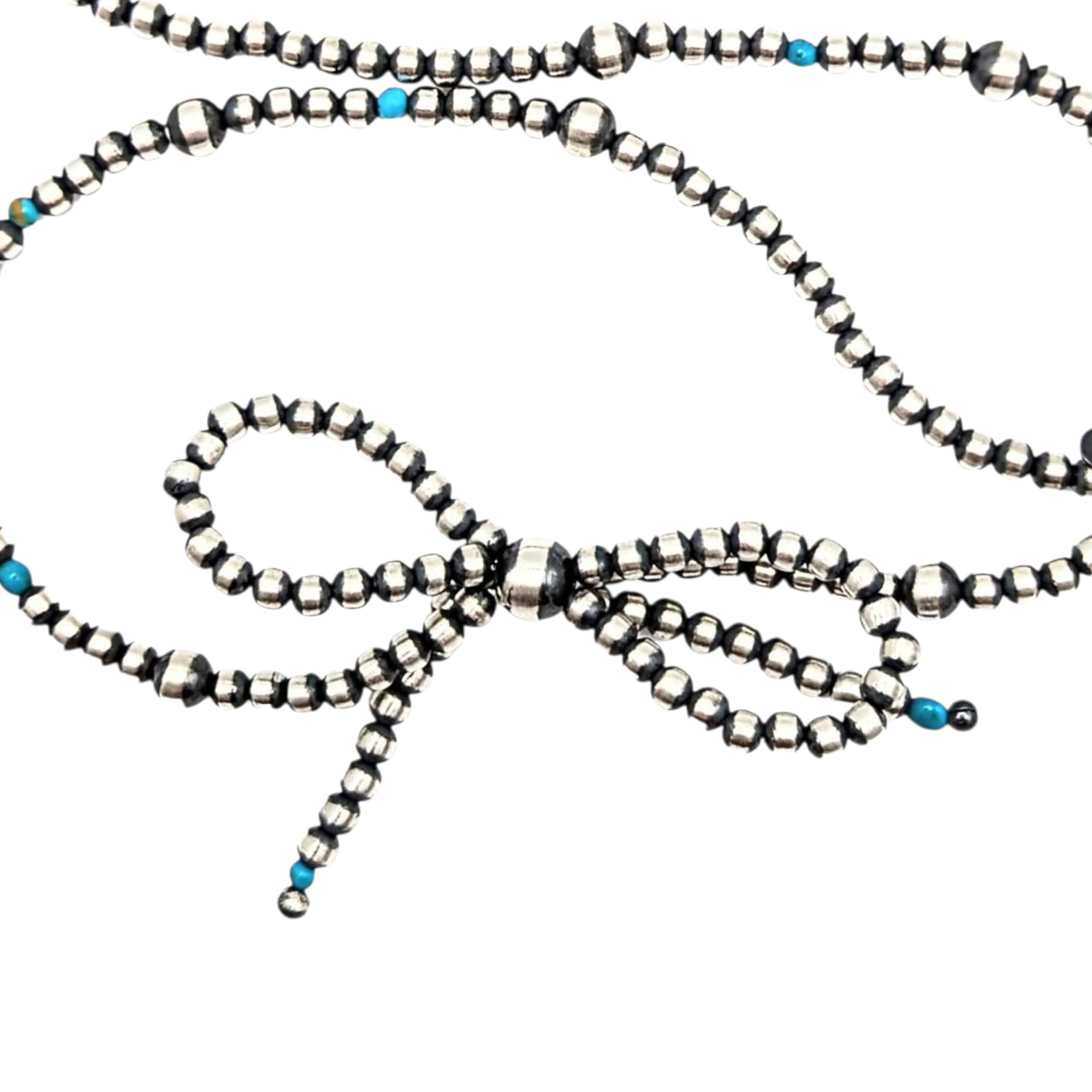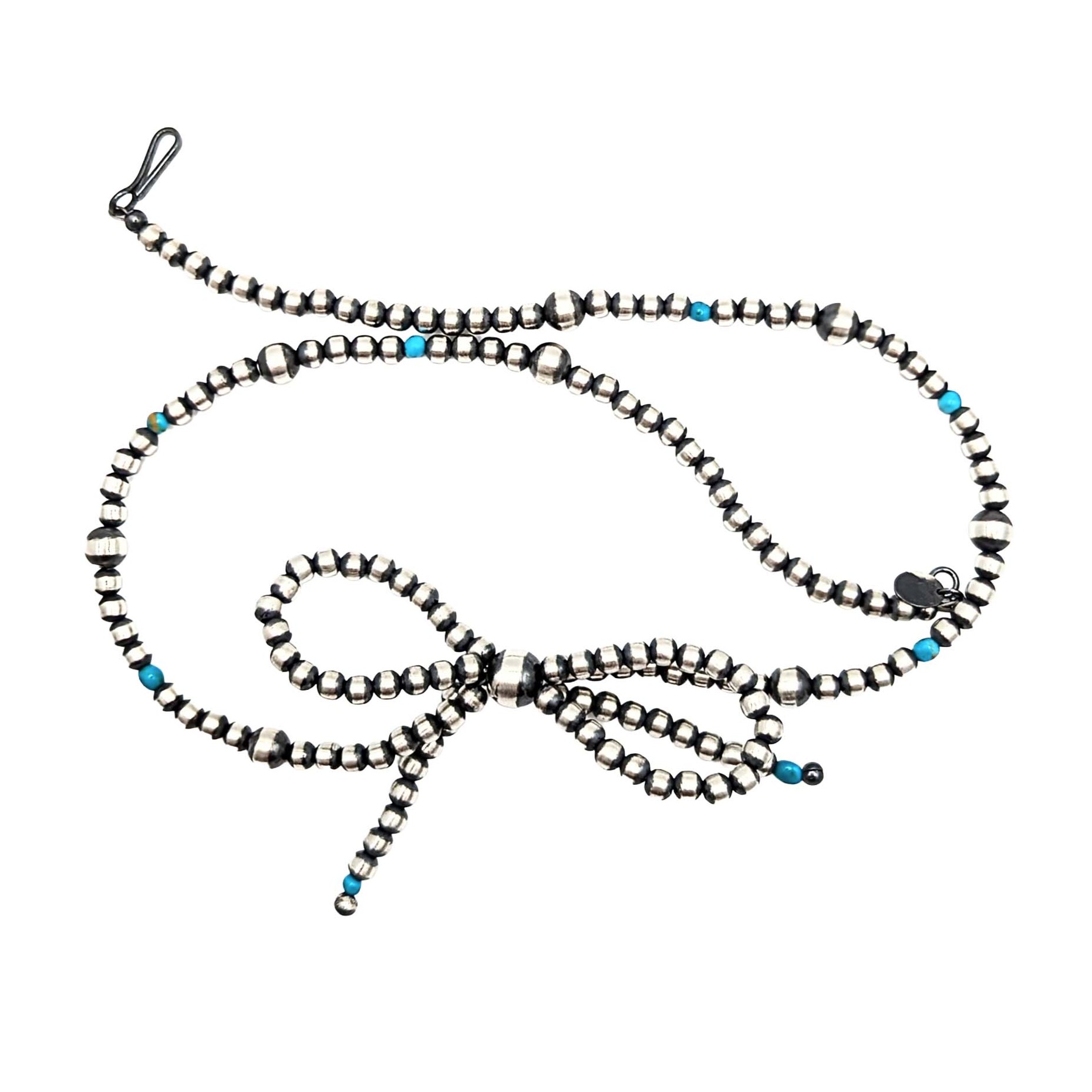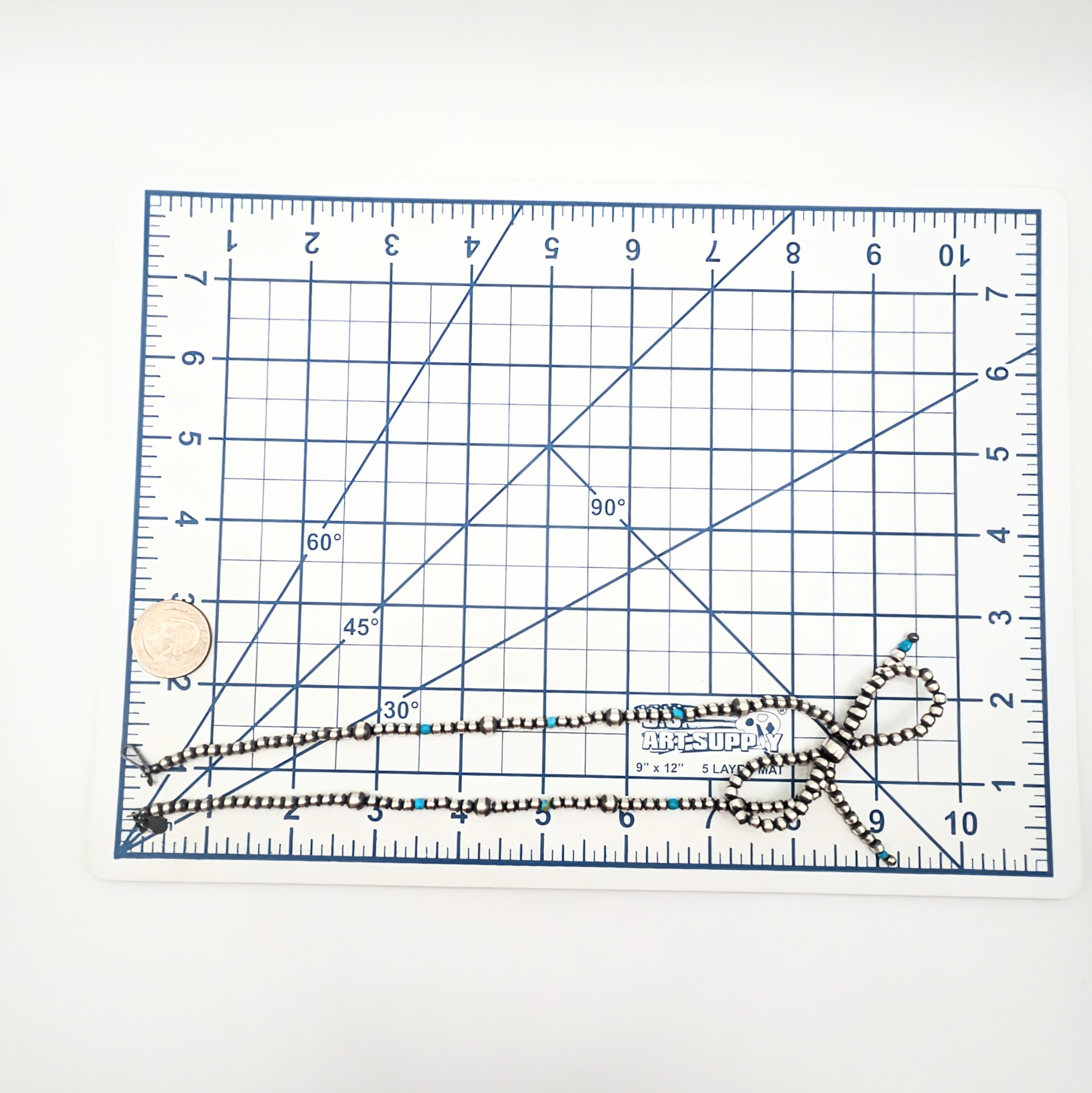 Native Made Sterling Silver Turquoise 3mm-5mm Beaded Bow Necklace 16g