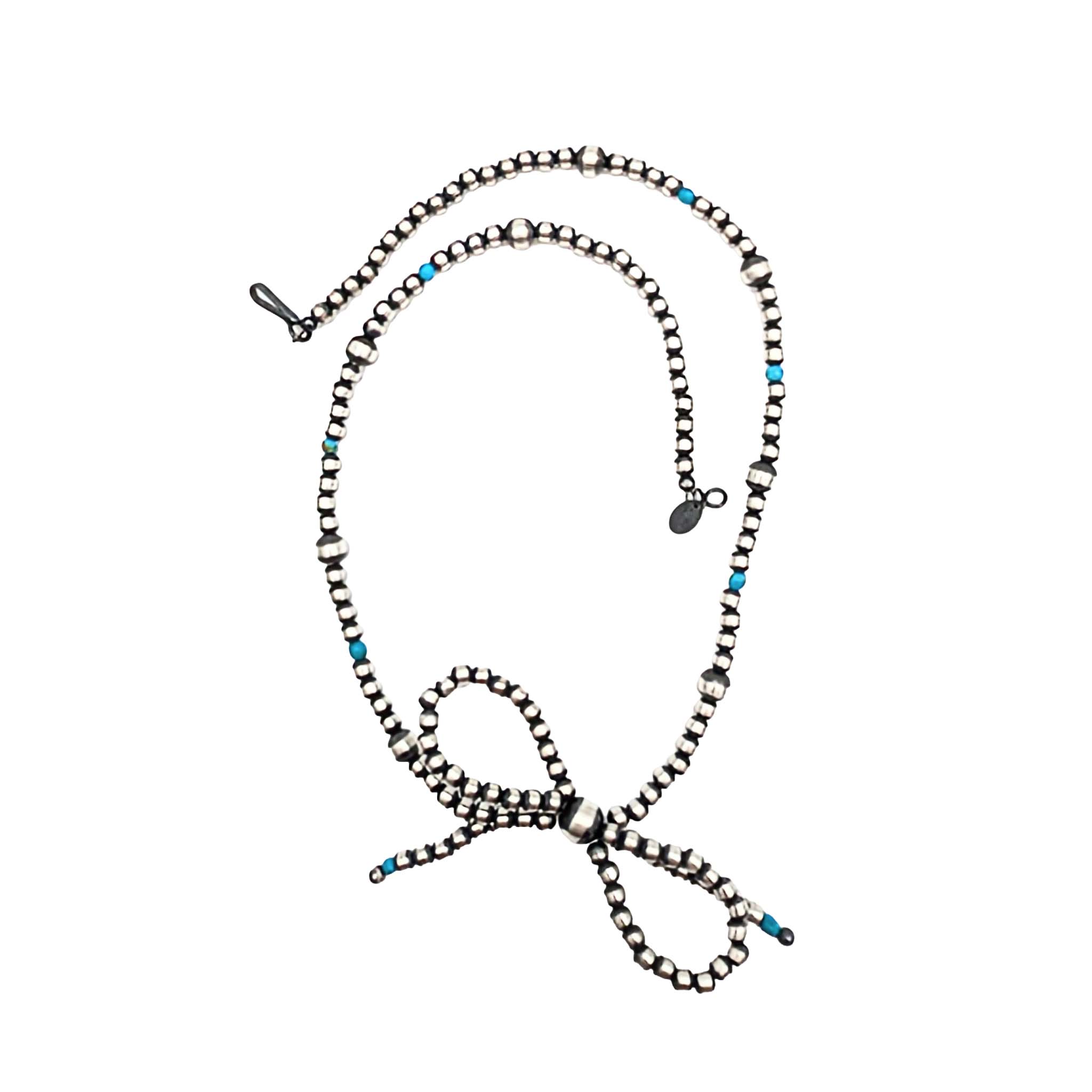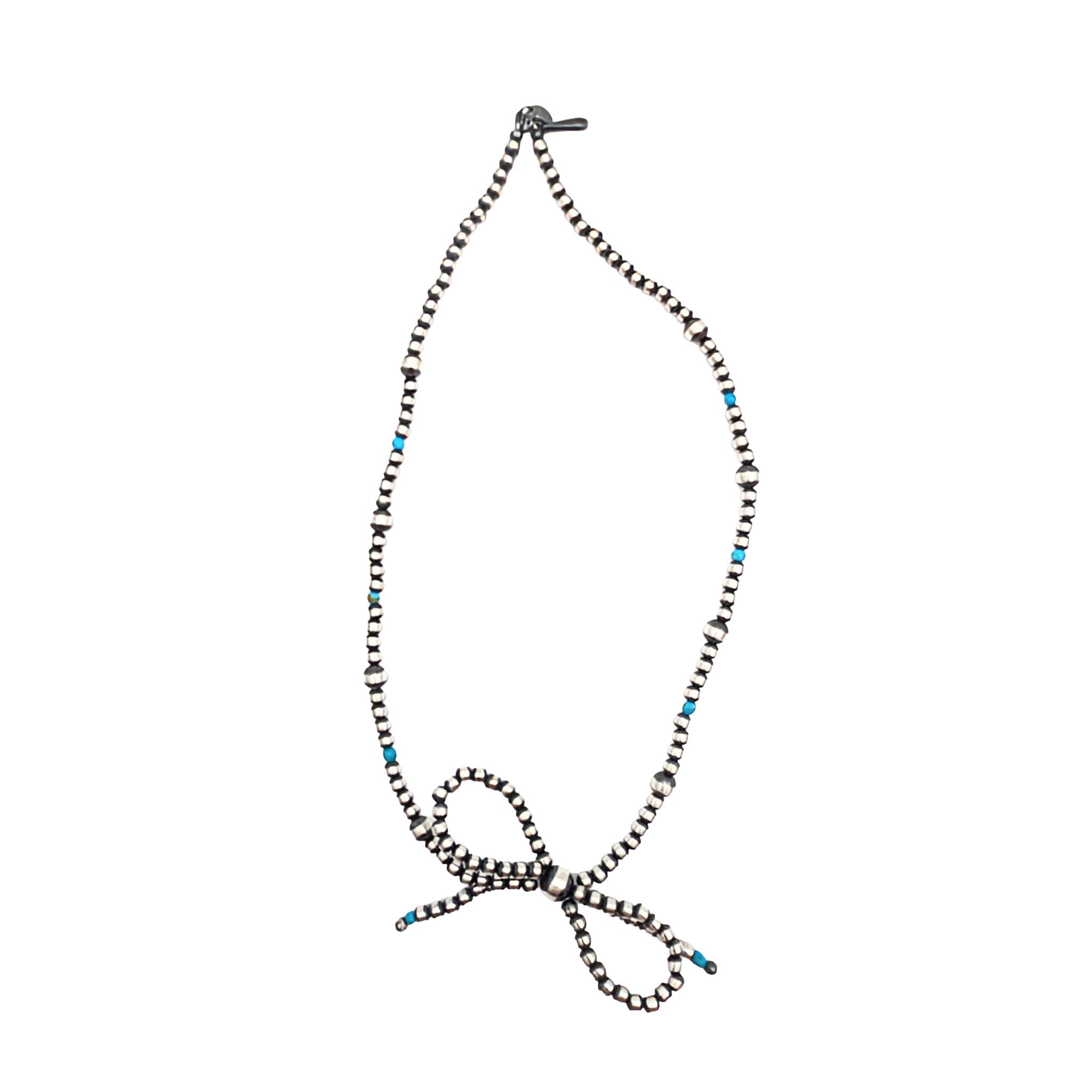 Native Made Sterling Silver Turquoise Beaded Bow Necklace
