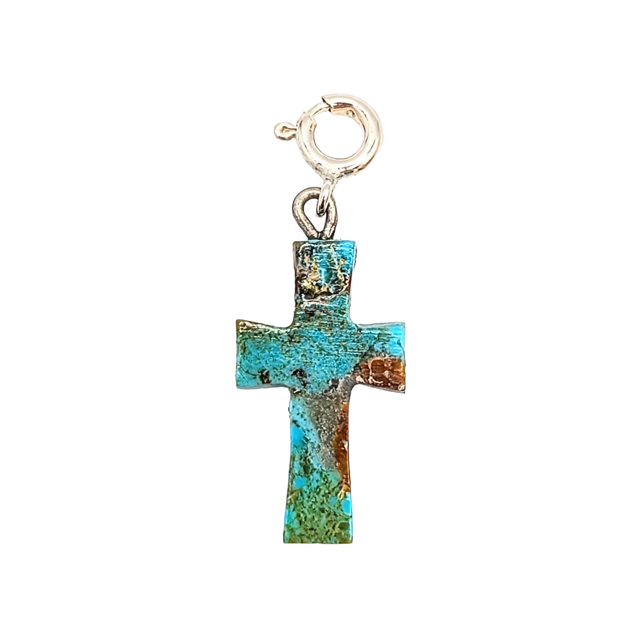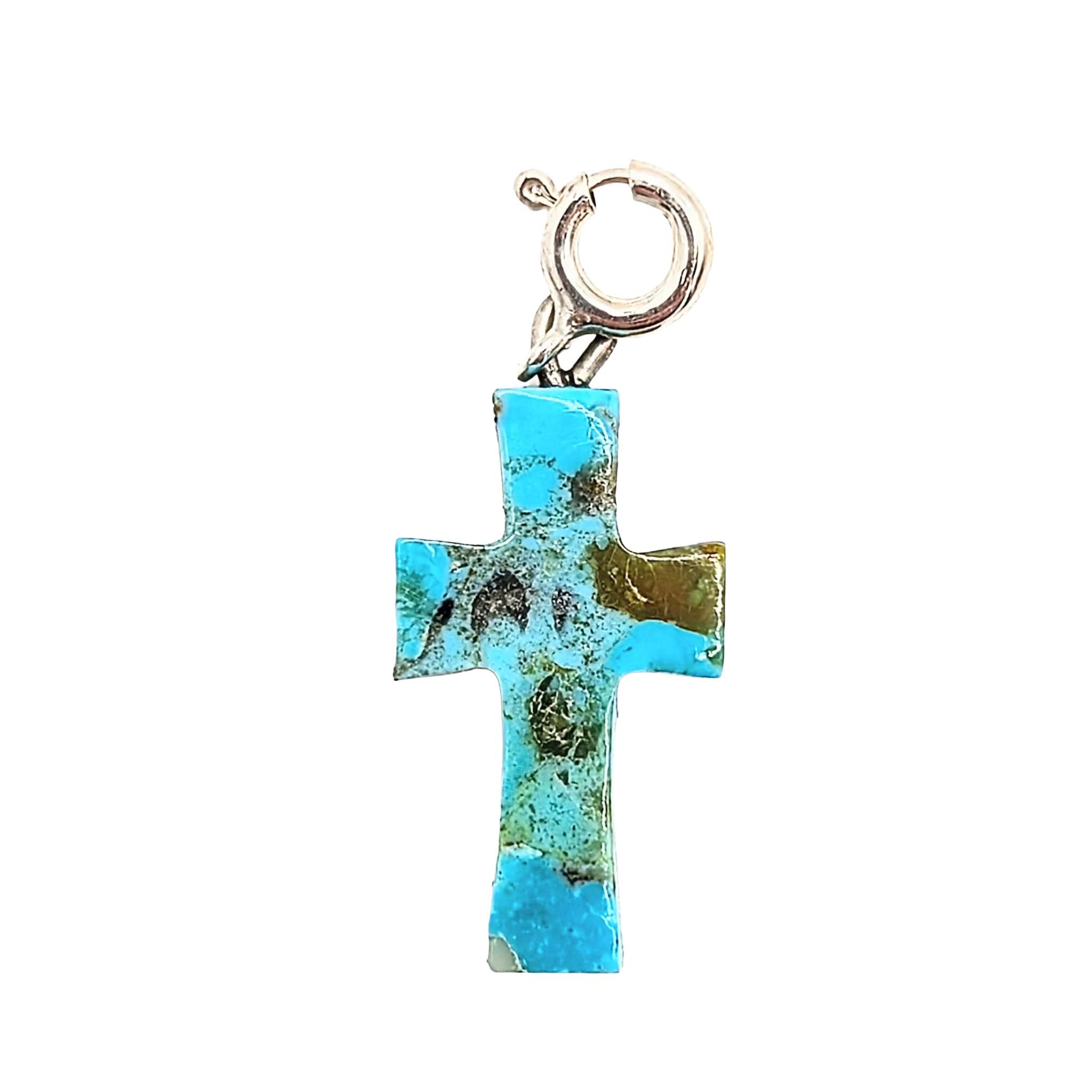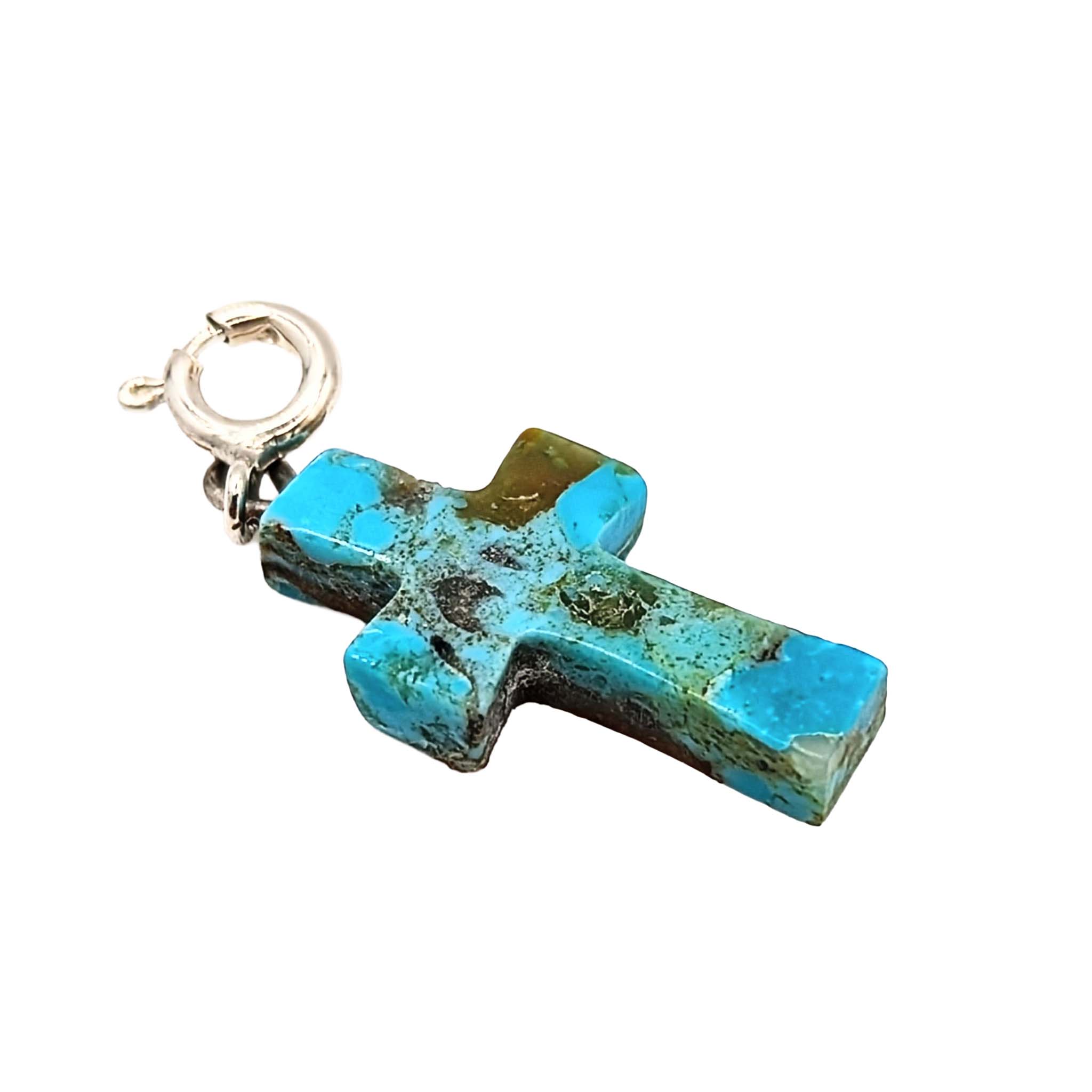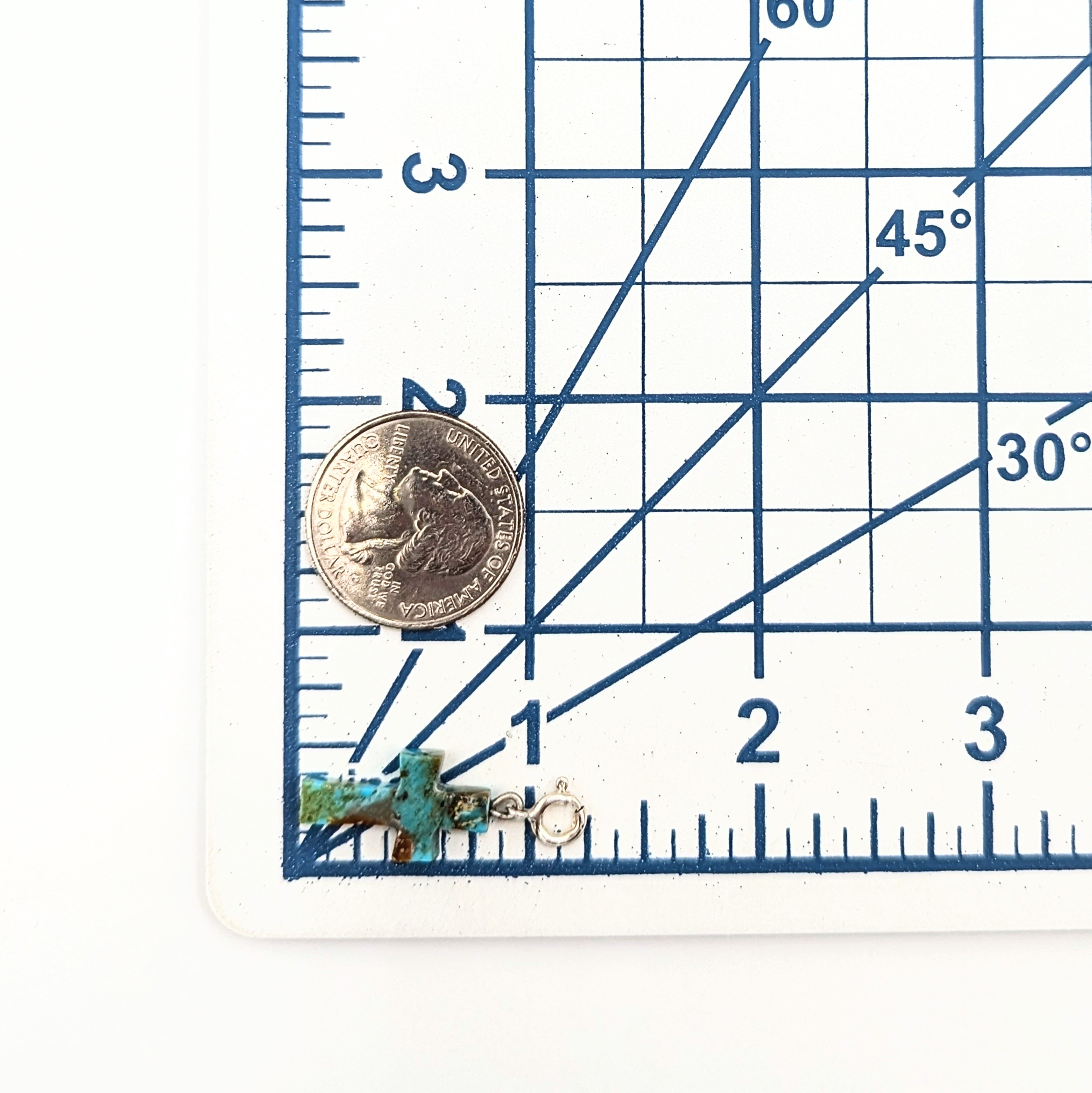 Native Hand Crafted Ice Blue Dhalia Turquoise Sterling Silver Cross Charm 1.1g