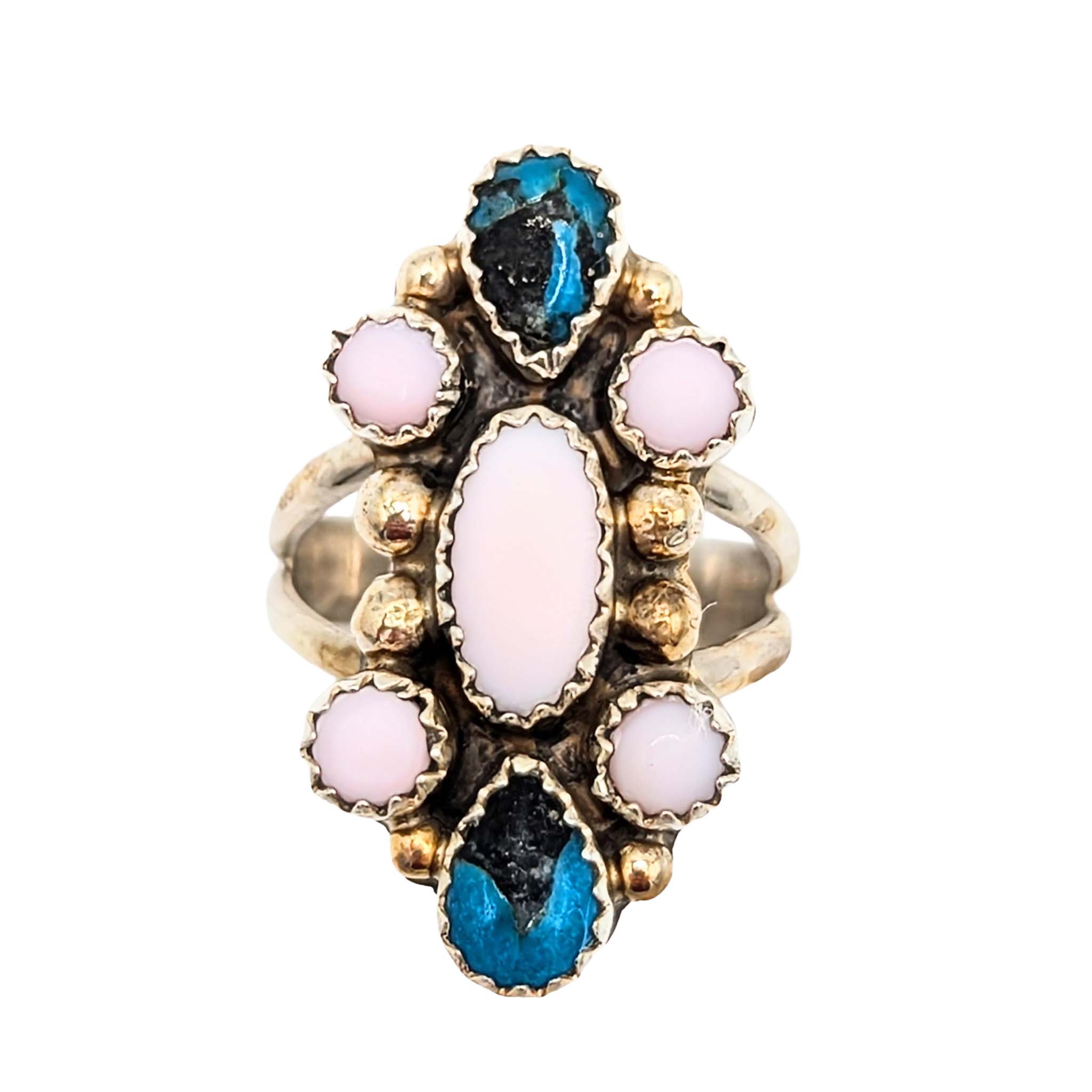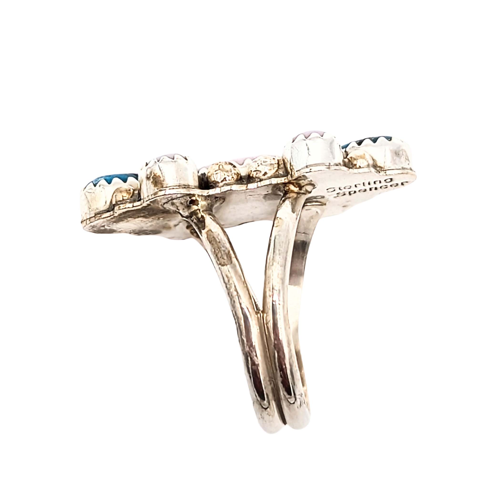 Pearlina Spencer Navajo Sterling Silver Turquoise Pink Opal Sheild Ring. Size 7. 5.7g