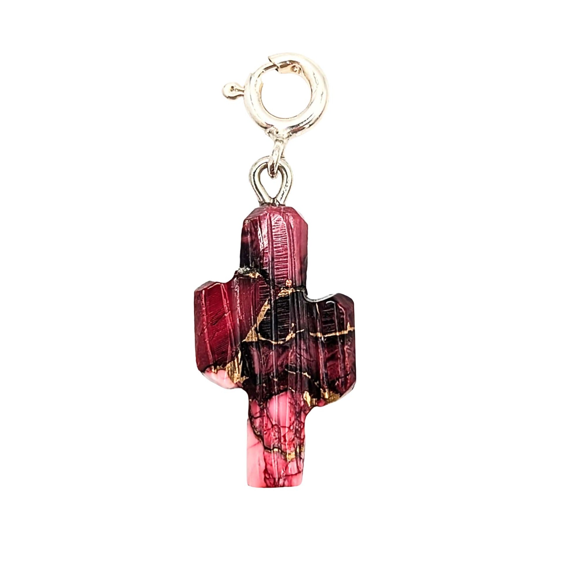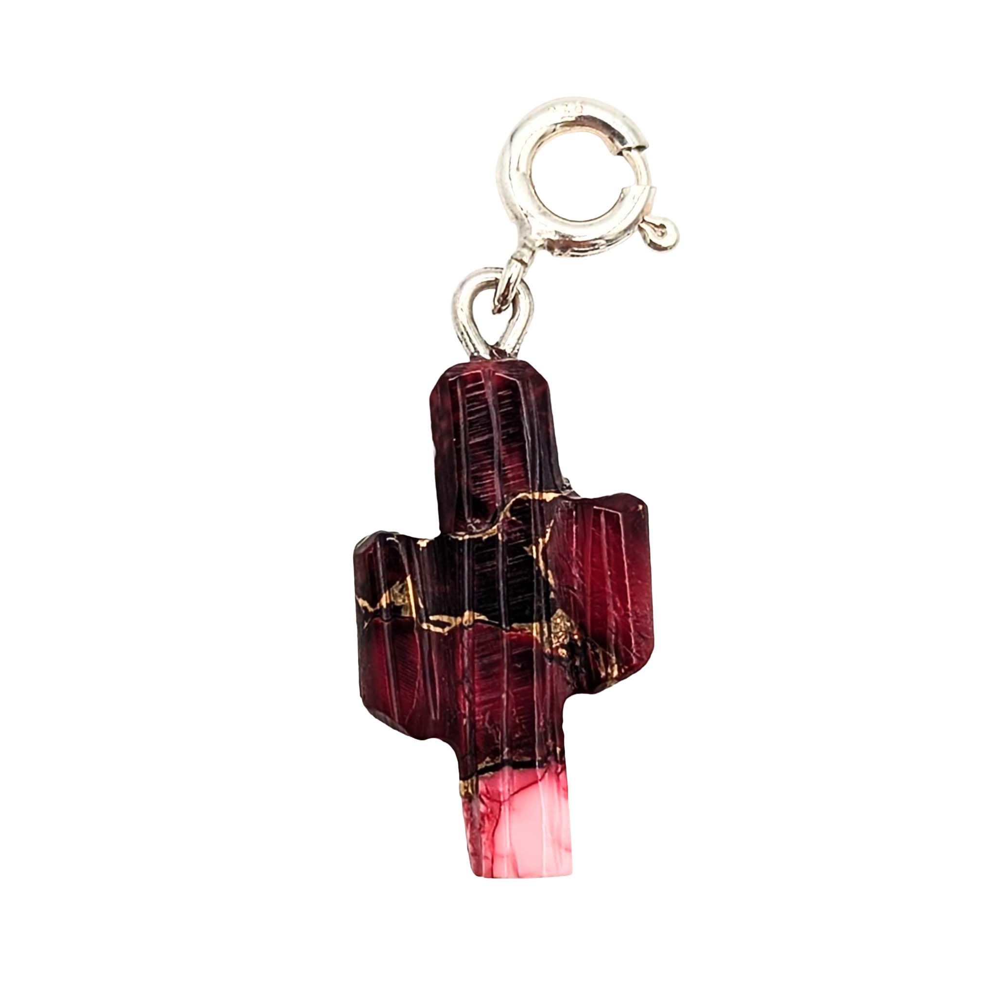Native Hand Carved Pink Dhalia Turquoise Sterling Silver Cactus Charm