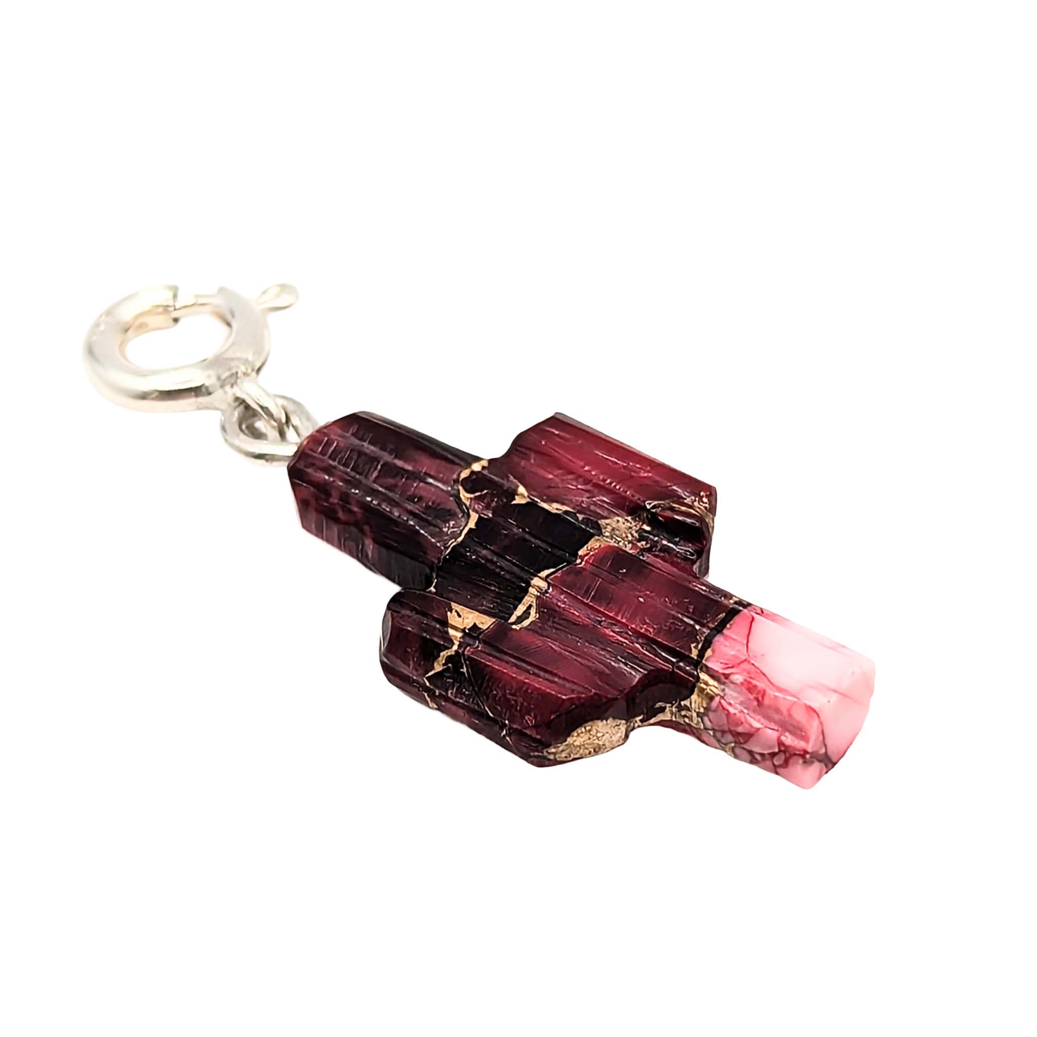 Native Hand Carved Pink Dhalia Turquoise Sterling Silver Cactus Charm 1.2g