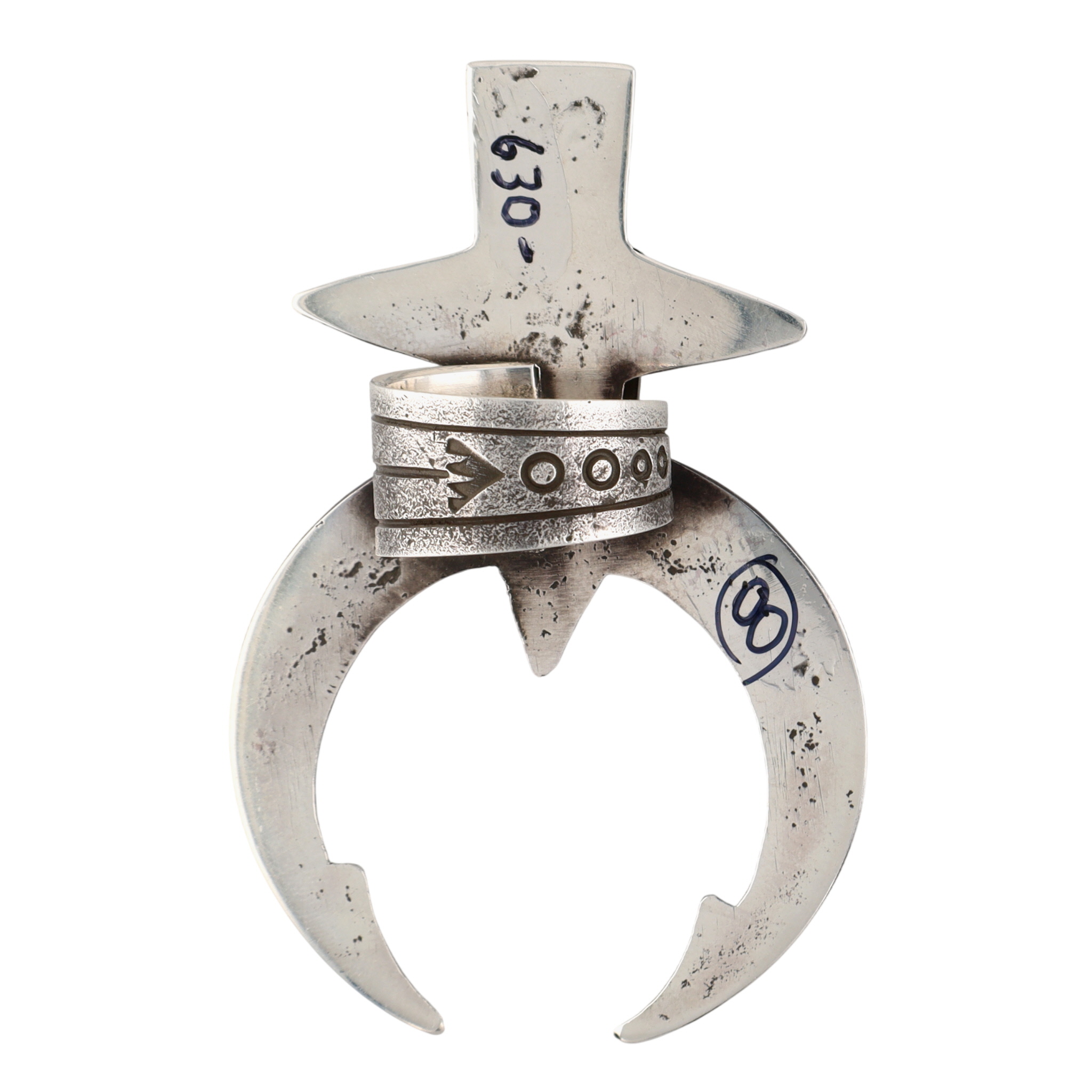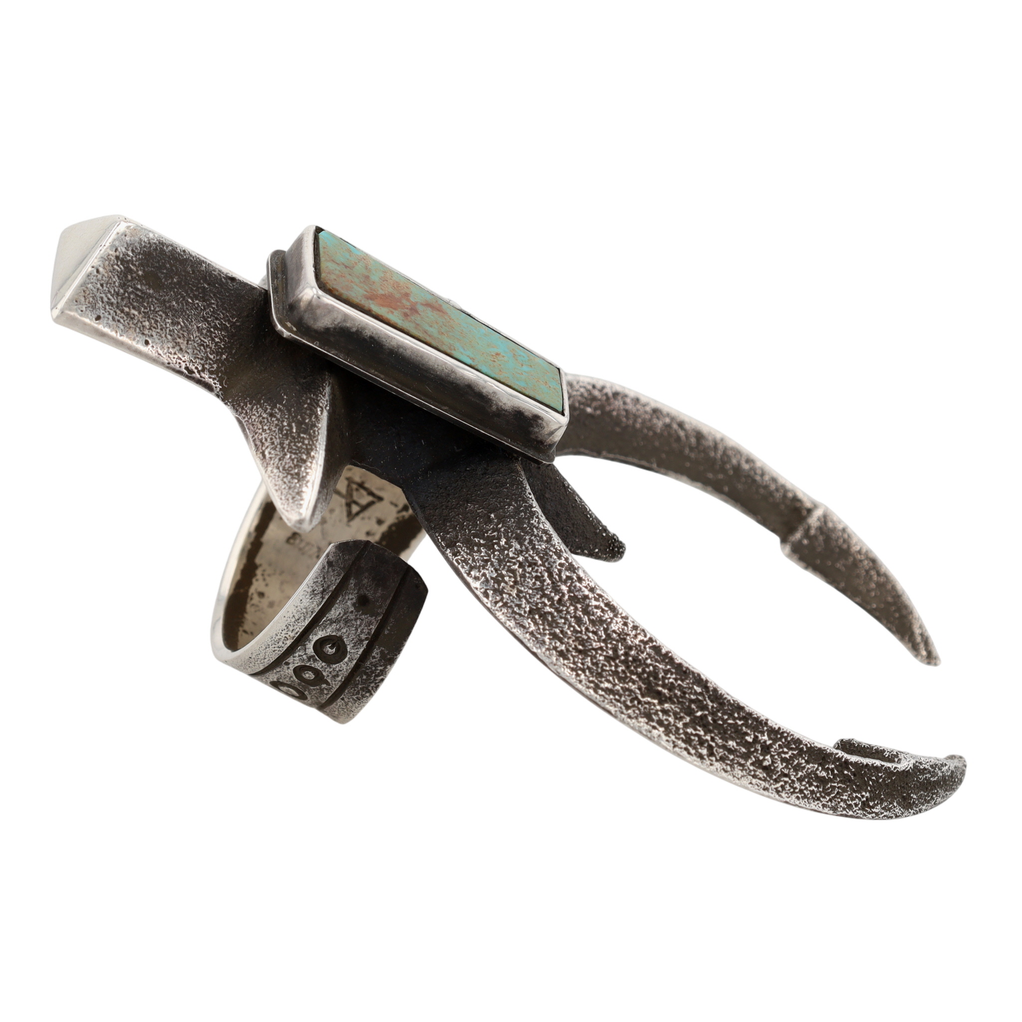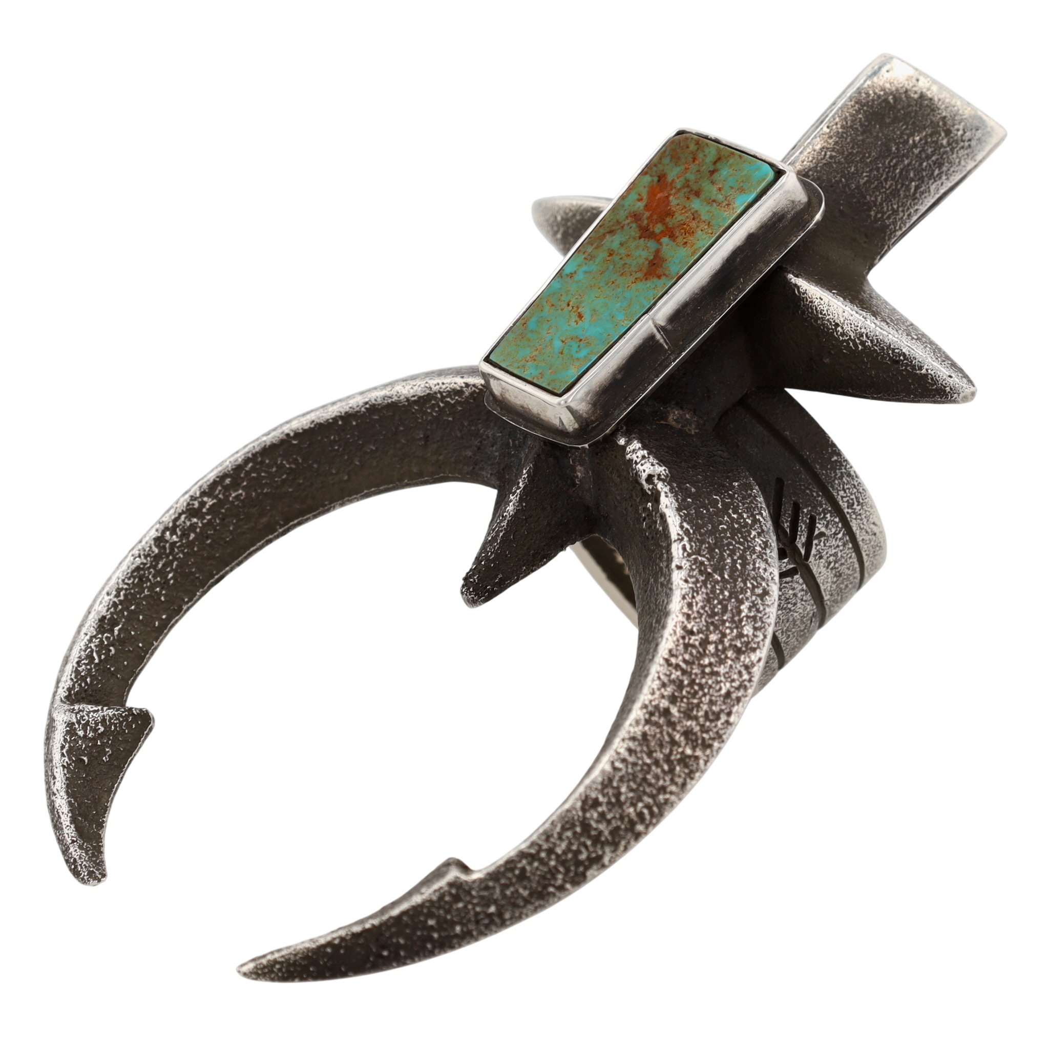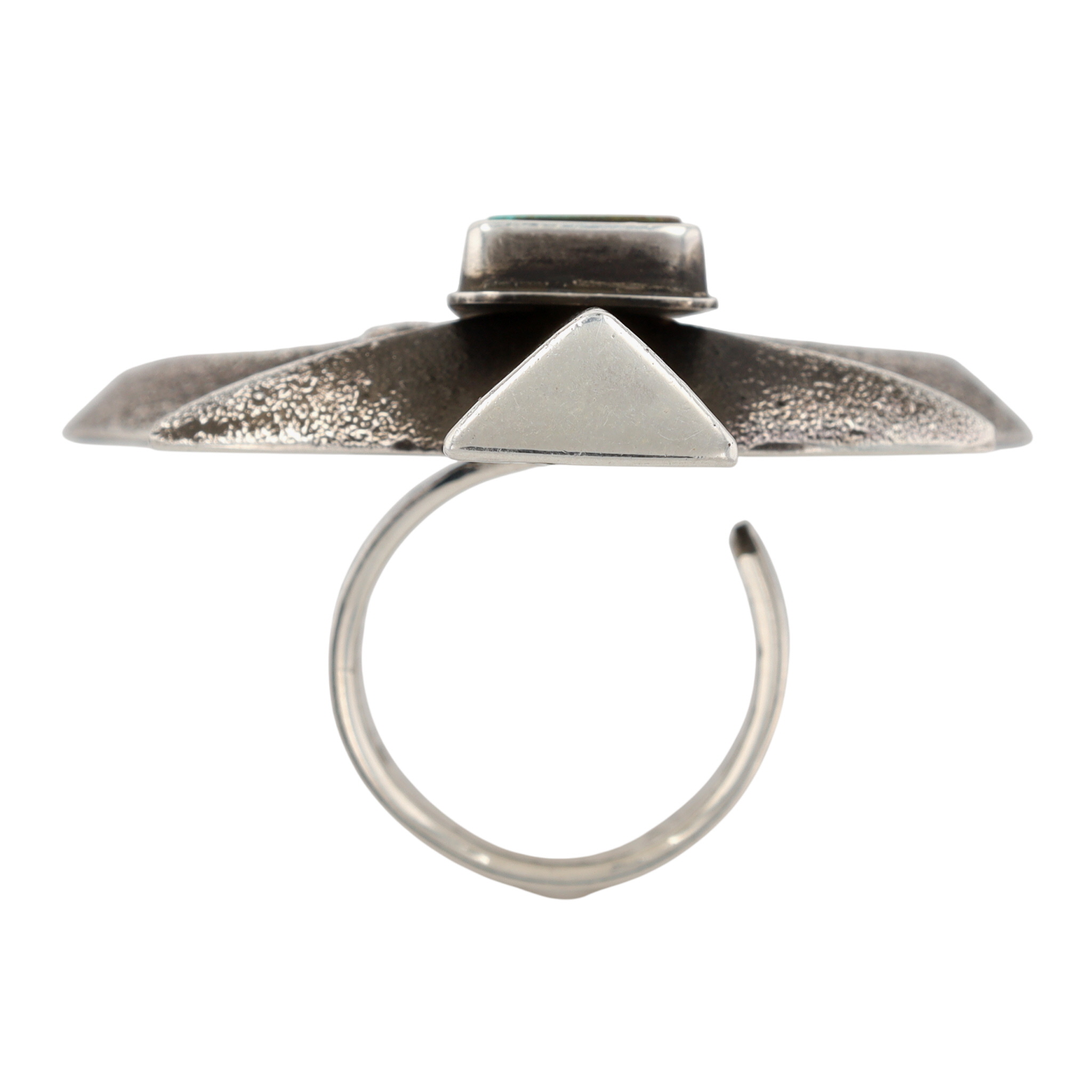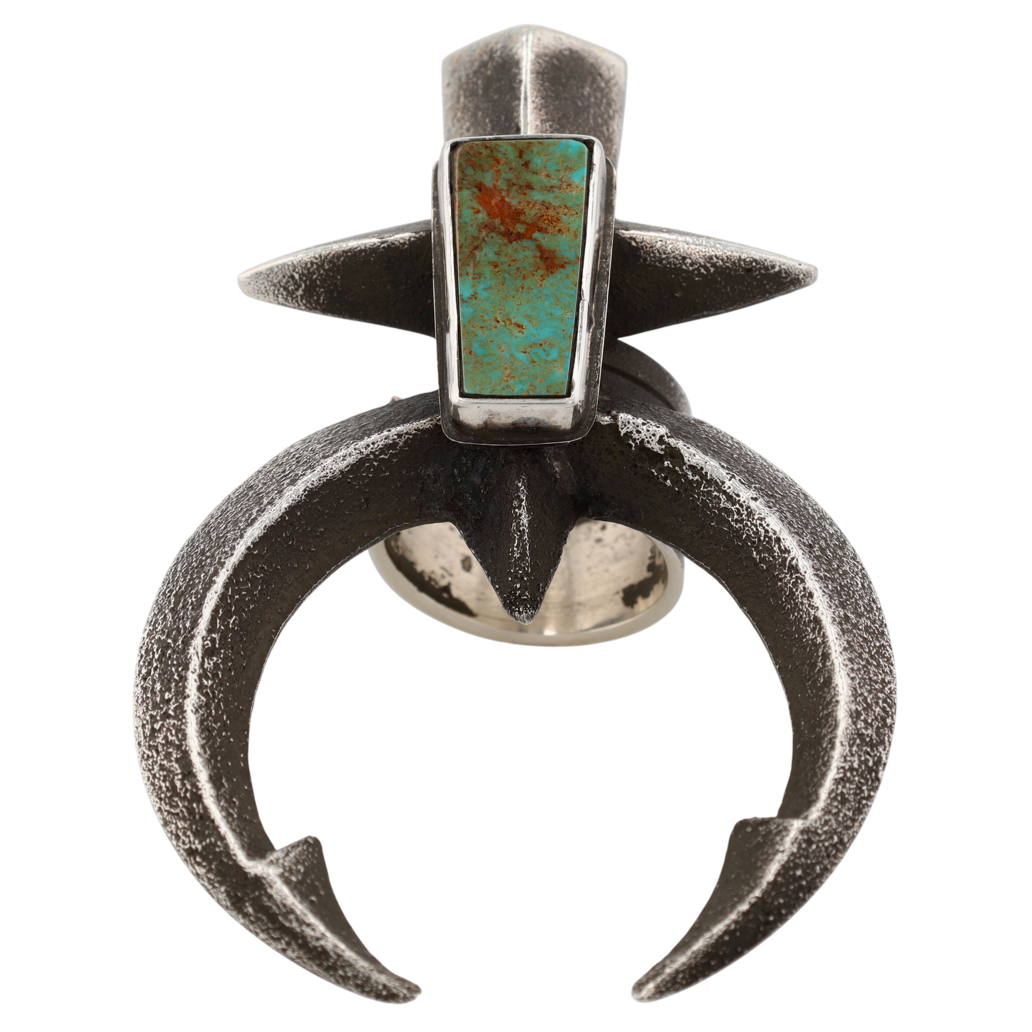 Alonzo John Navajo Tufa Cast Sterling Turquoise Naja Adjustable Ring Sz. 8, 56g