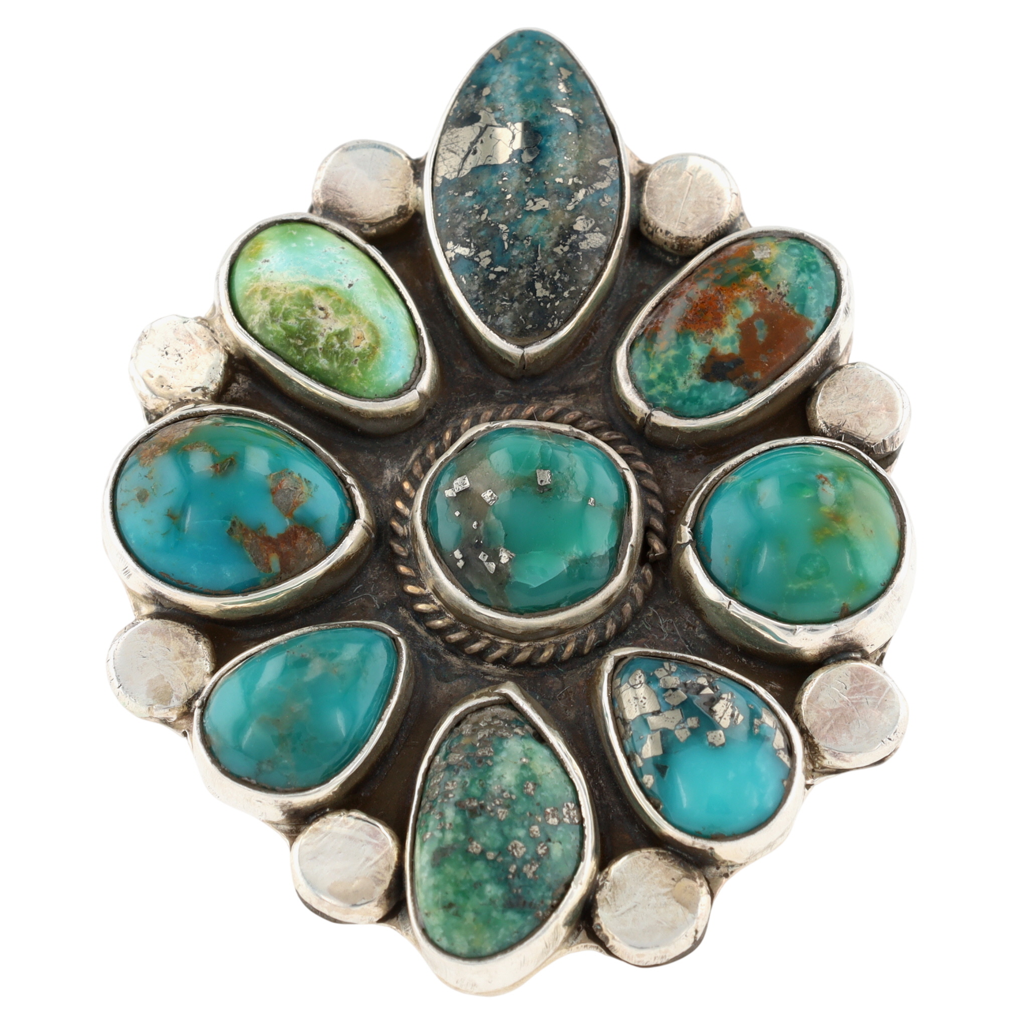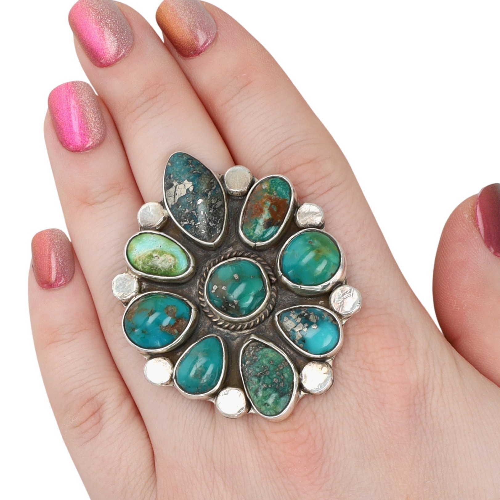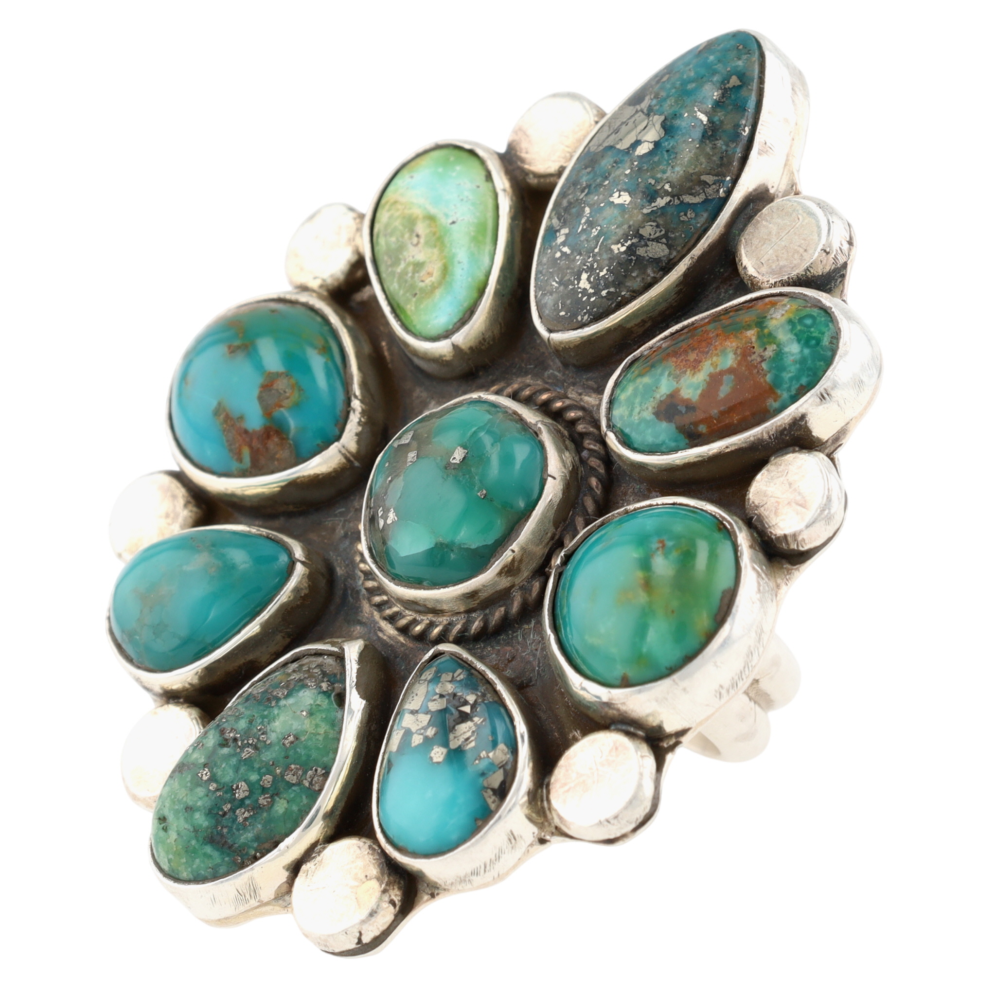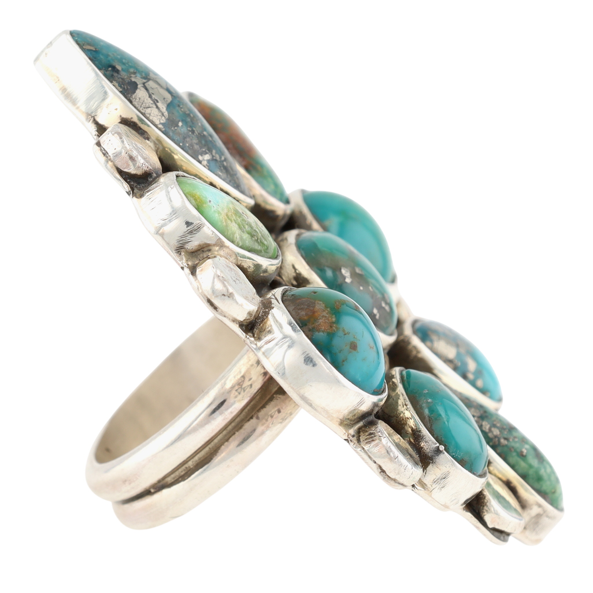 Chad Teller Navajo Sterling Turquoise Cluster Ring Sz. 9, 37.5g
