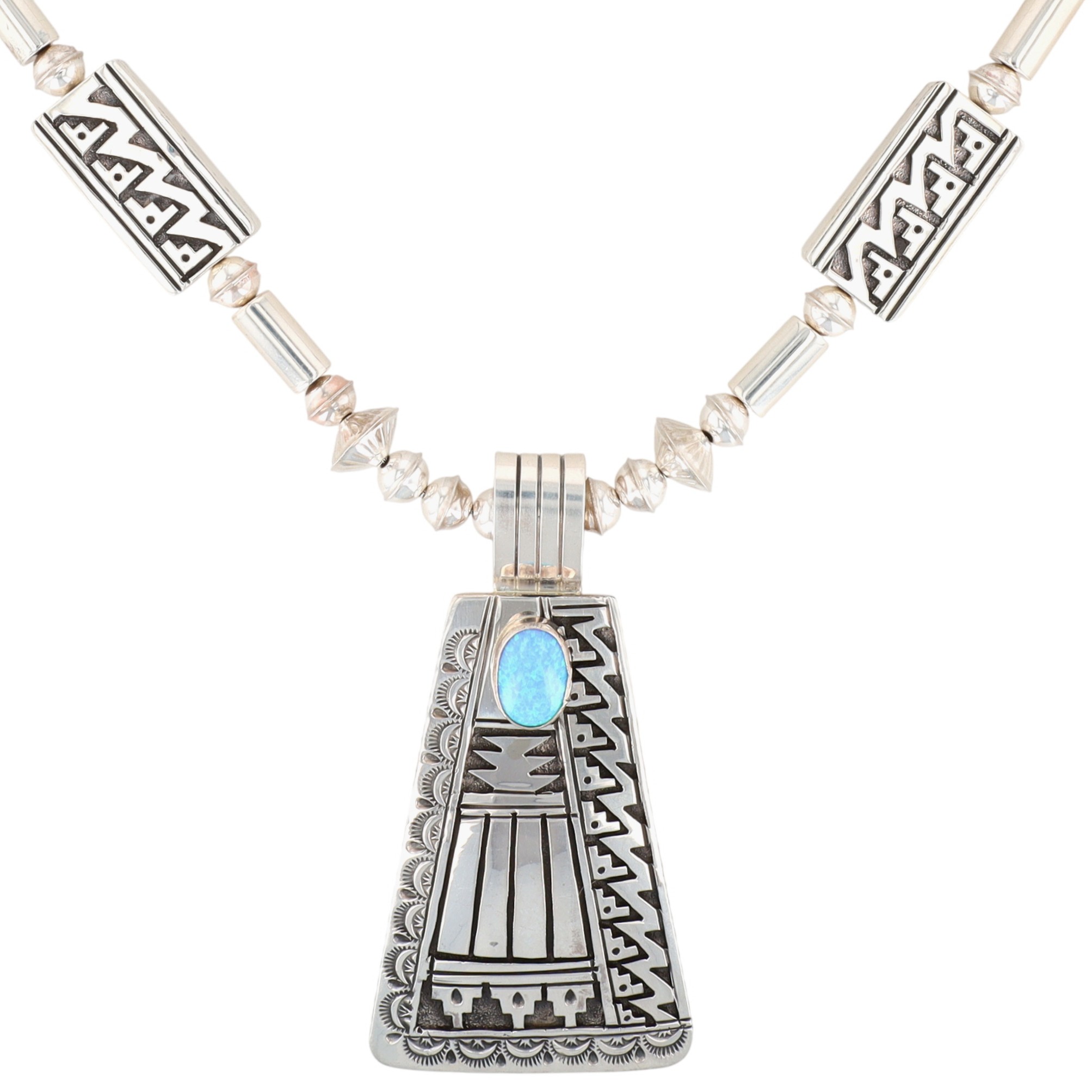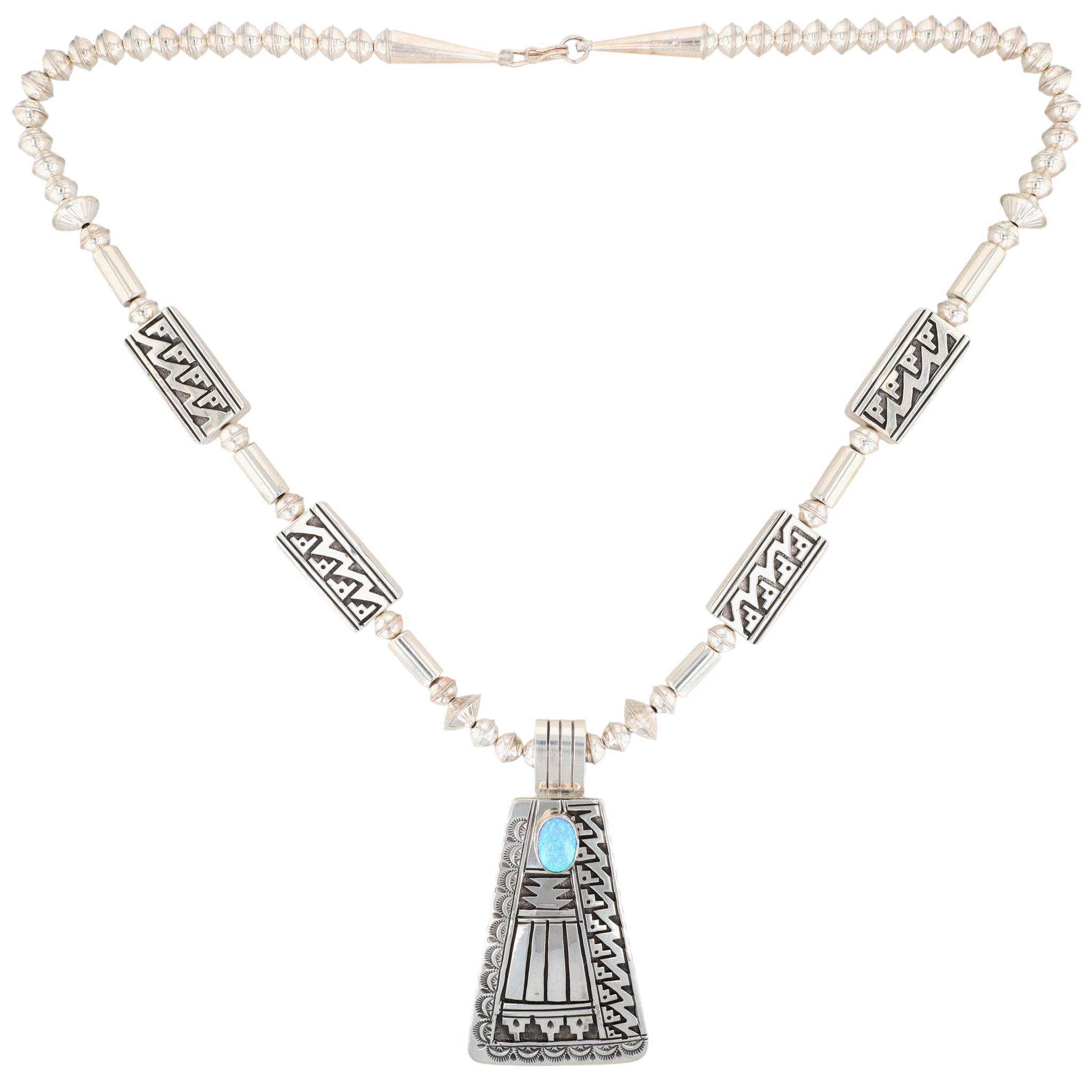 Eula Wylie Navajo Sterling Opal Necklace 93.5g