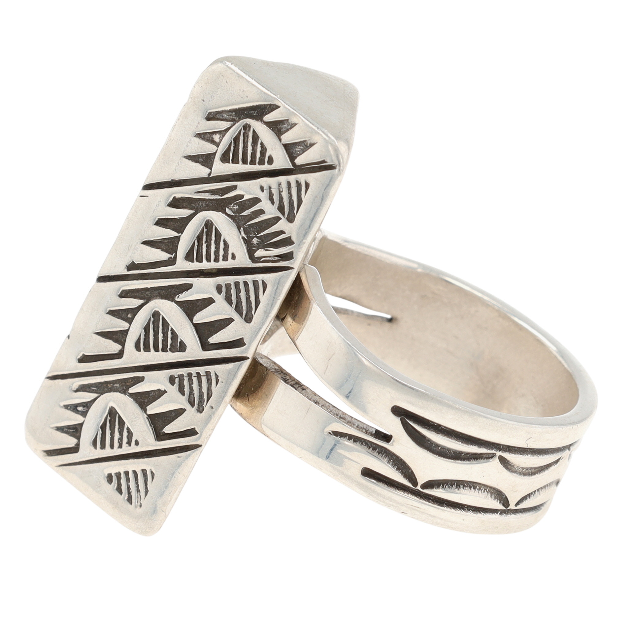 Landon Secatero Navajo Plain Sterling Silver Triangle Ring Sz. 9.5, 31g