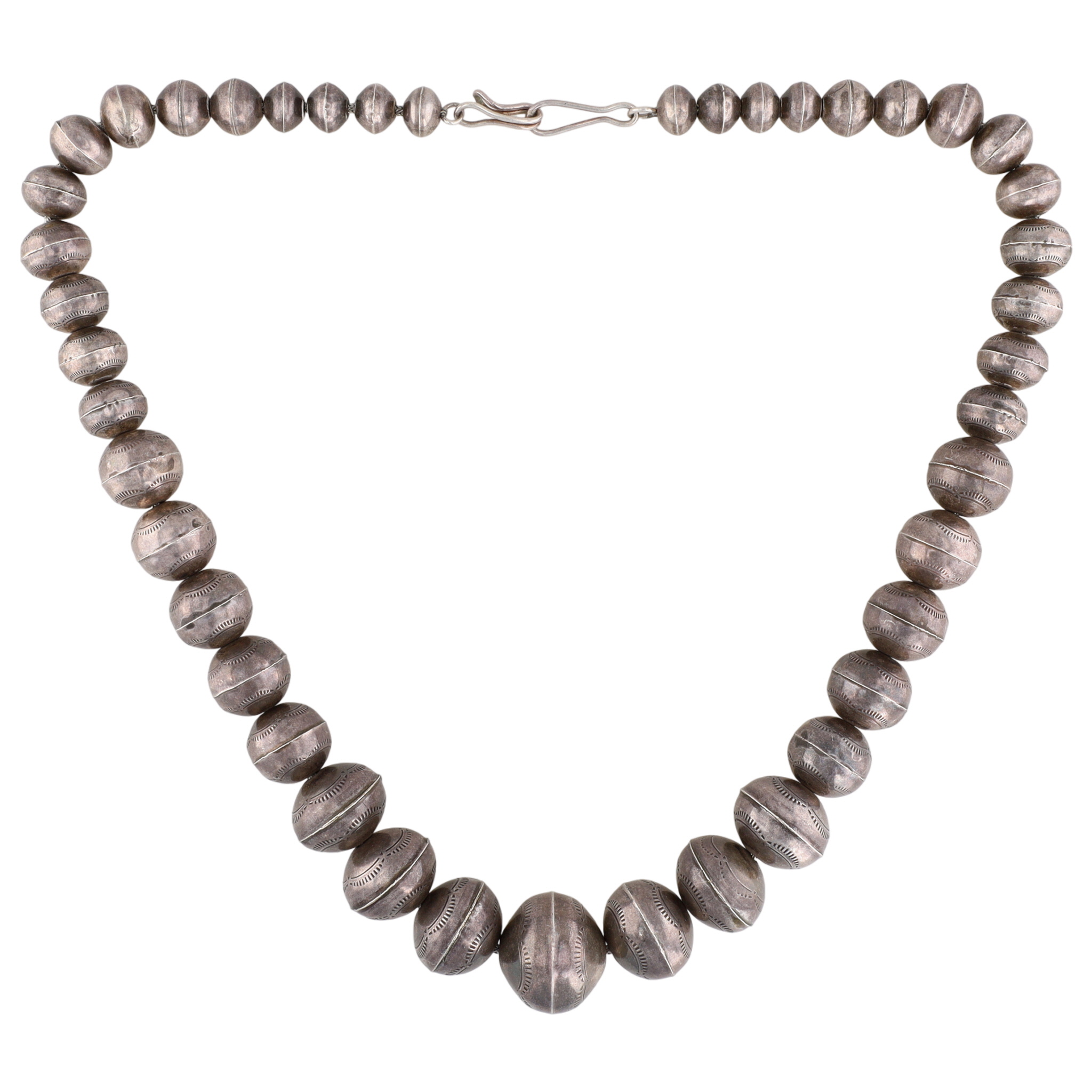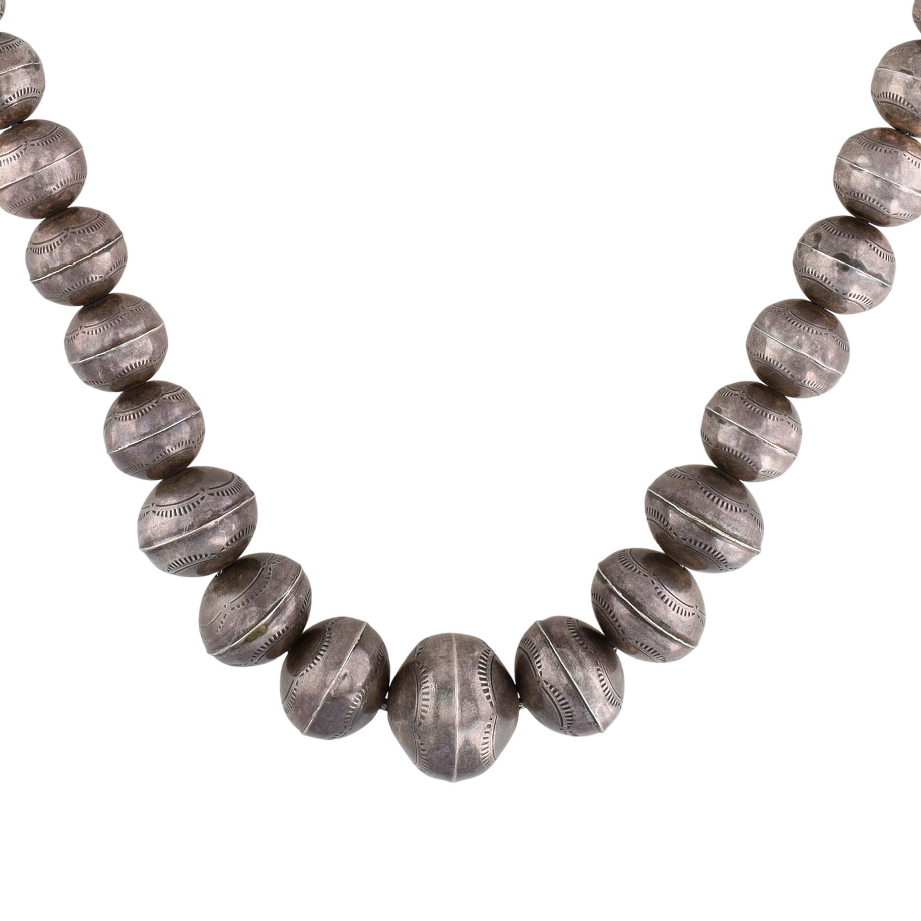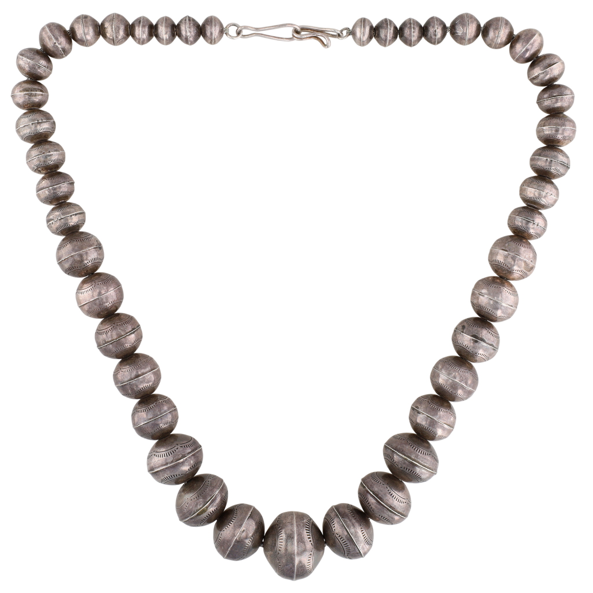 Presented in partnership with the historic Richardson’s Trading Post, a cornerstone of Native American jewelry since 1913. Selected from their archives of rare vintage and contemporary pieces. Vintage Navajo Handmade Sterling Beaded Necklace 54g