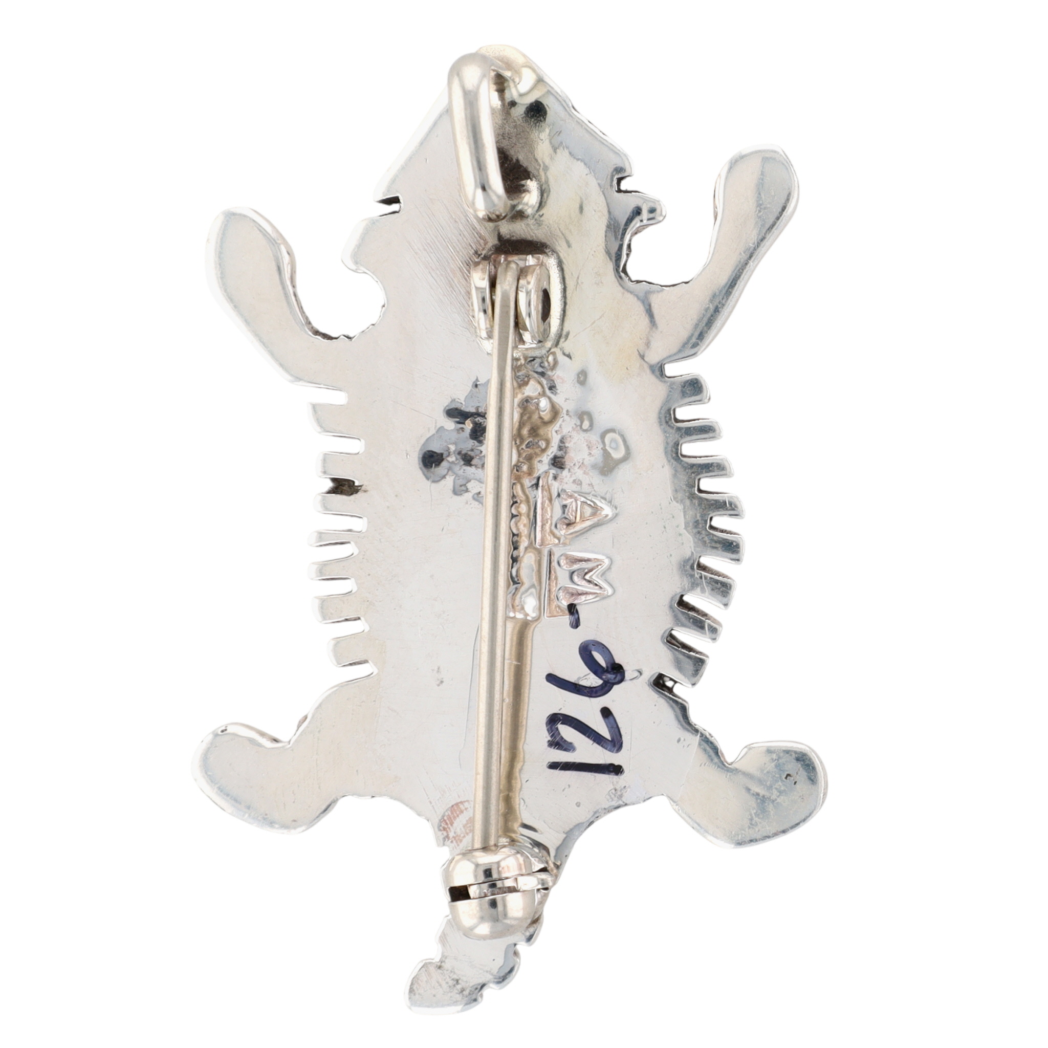 Signed ‘AM’ Navajo Plain Sterling Silver Horned Toad Brooch Pendant 13g