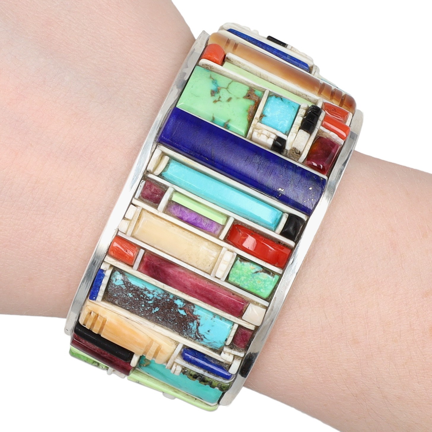 Don Staats Sterling Multi Cobblestone Inlay Cuff Bracelet 98g