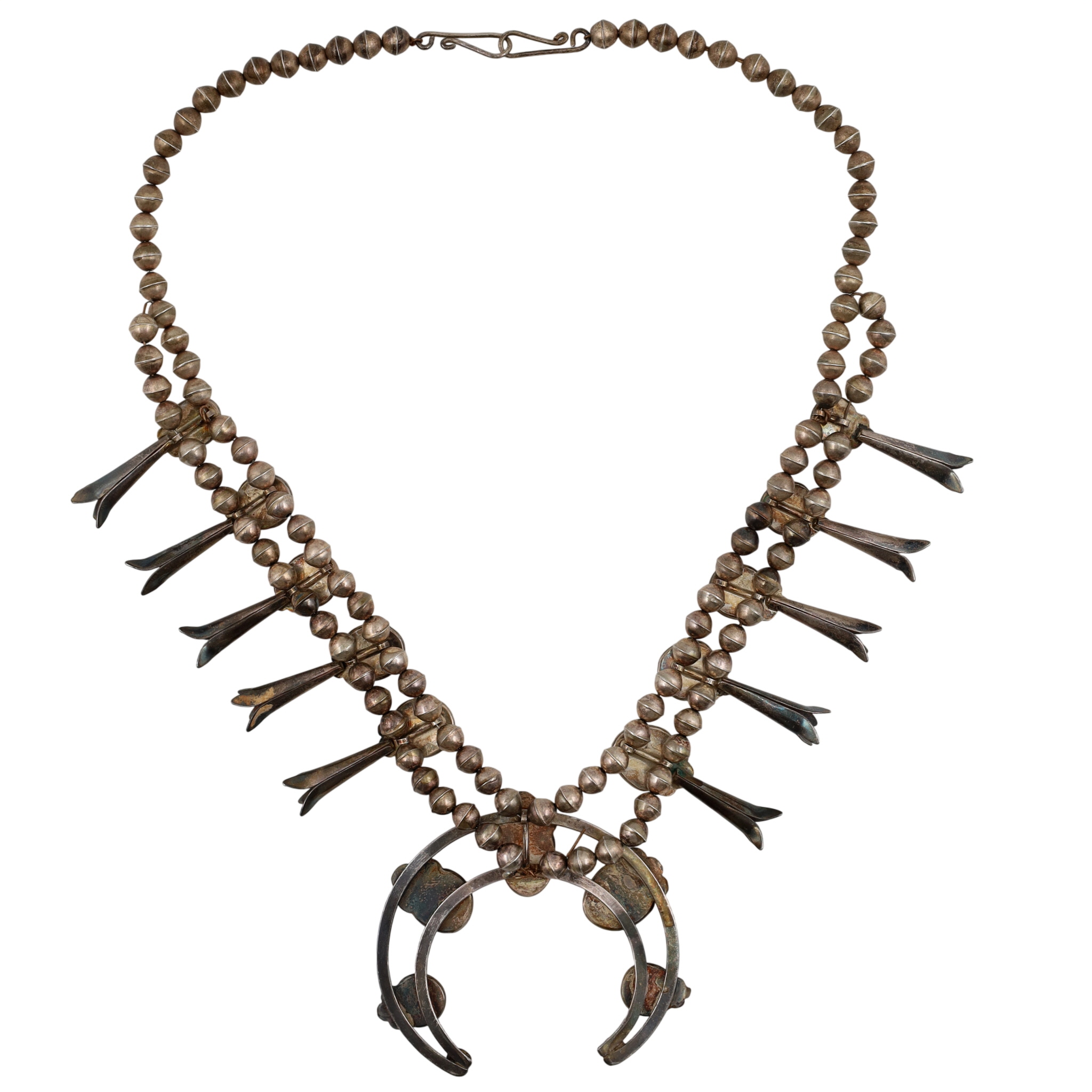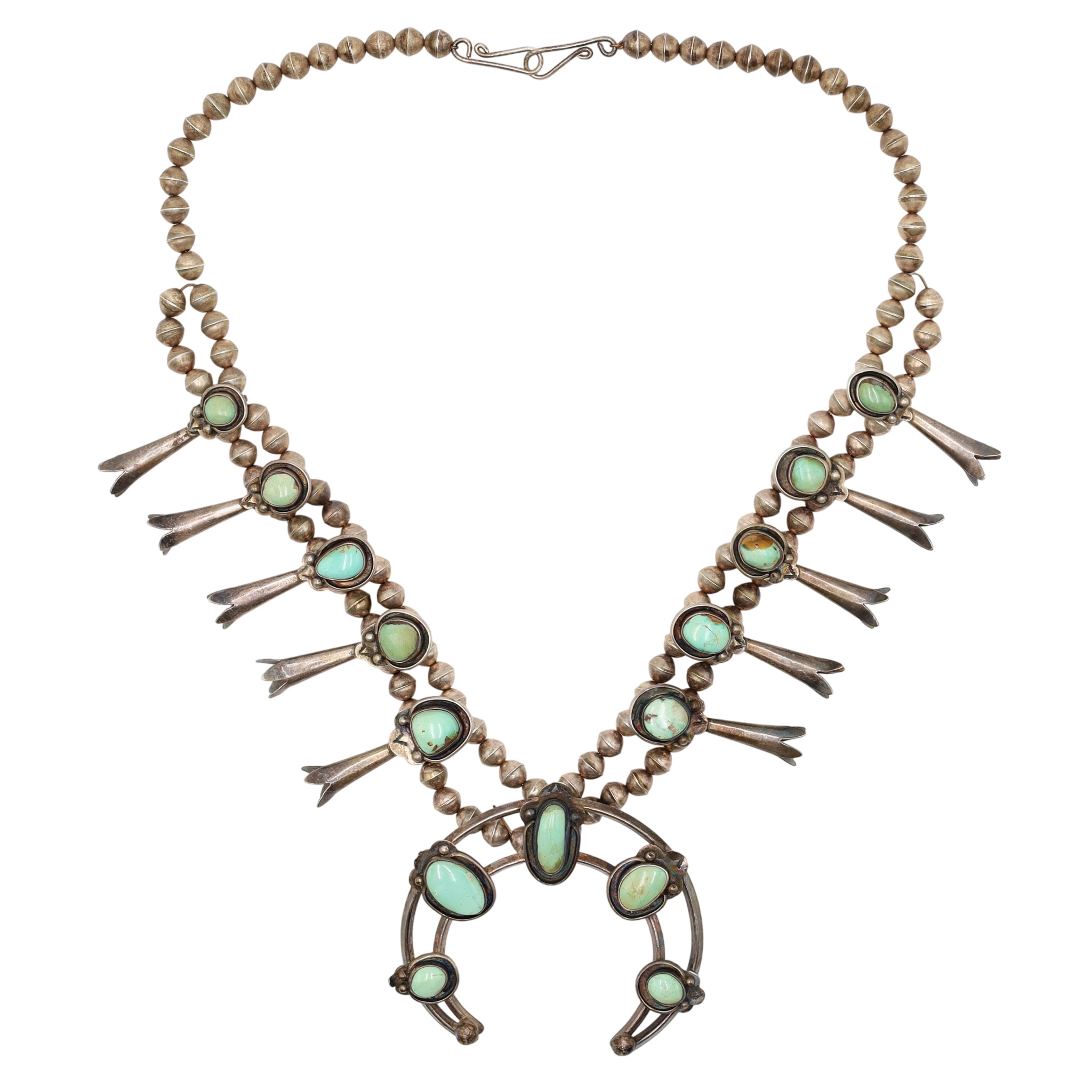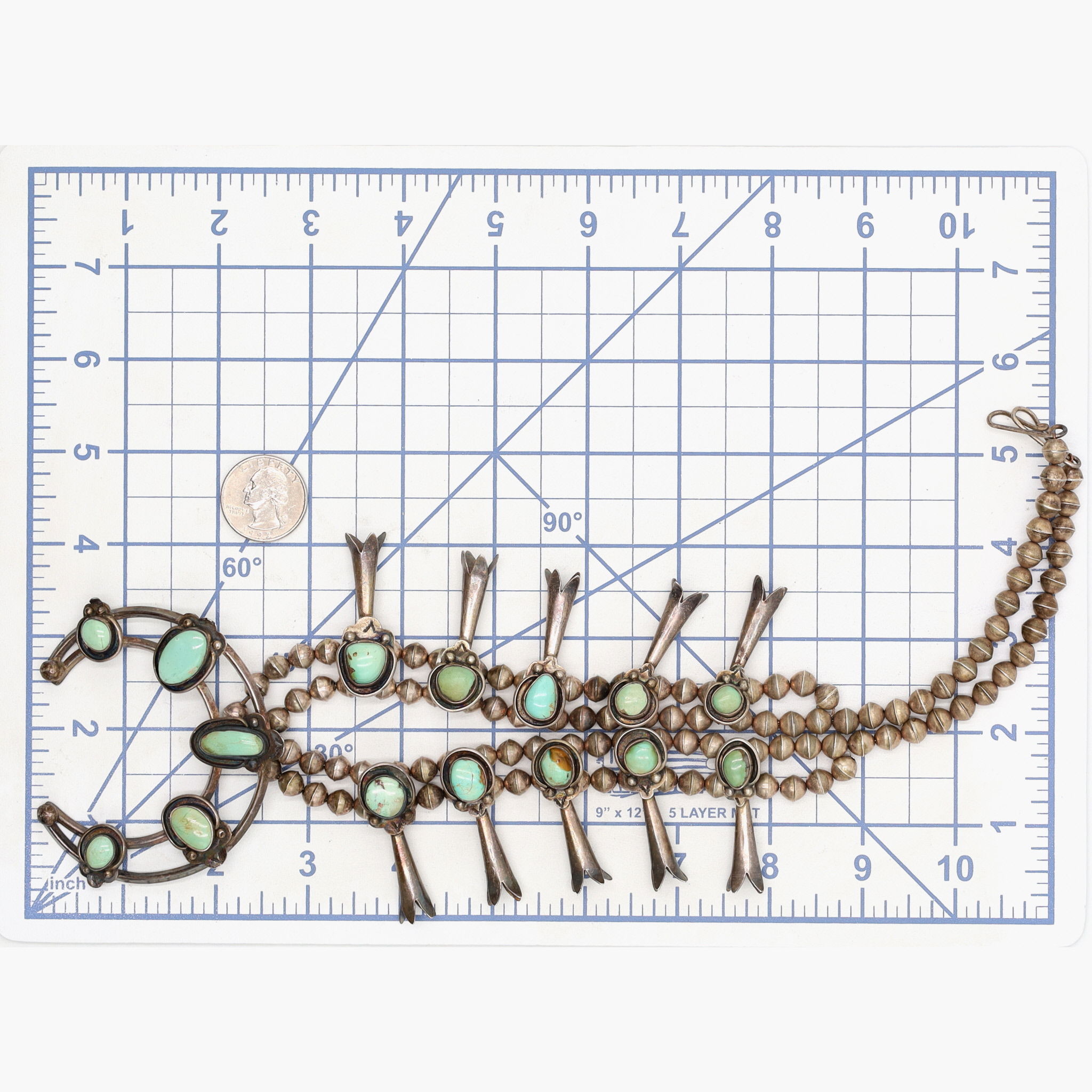 Vintage Handmade Navajo Sterling Turquoise Squash Blossom Necklace 122g