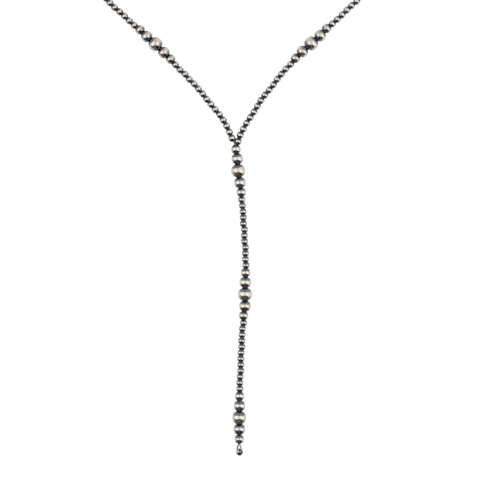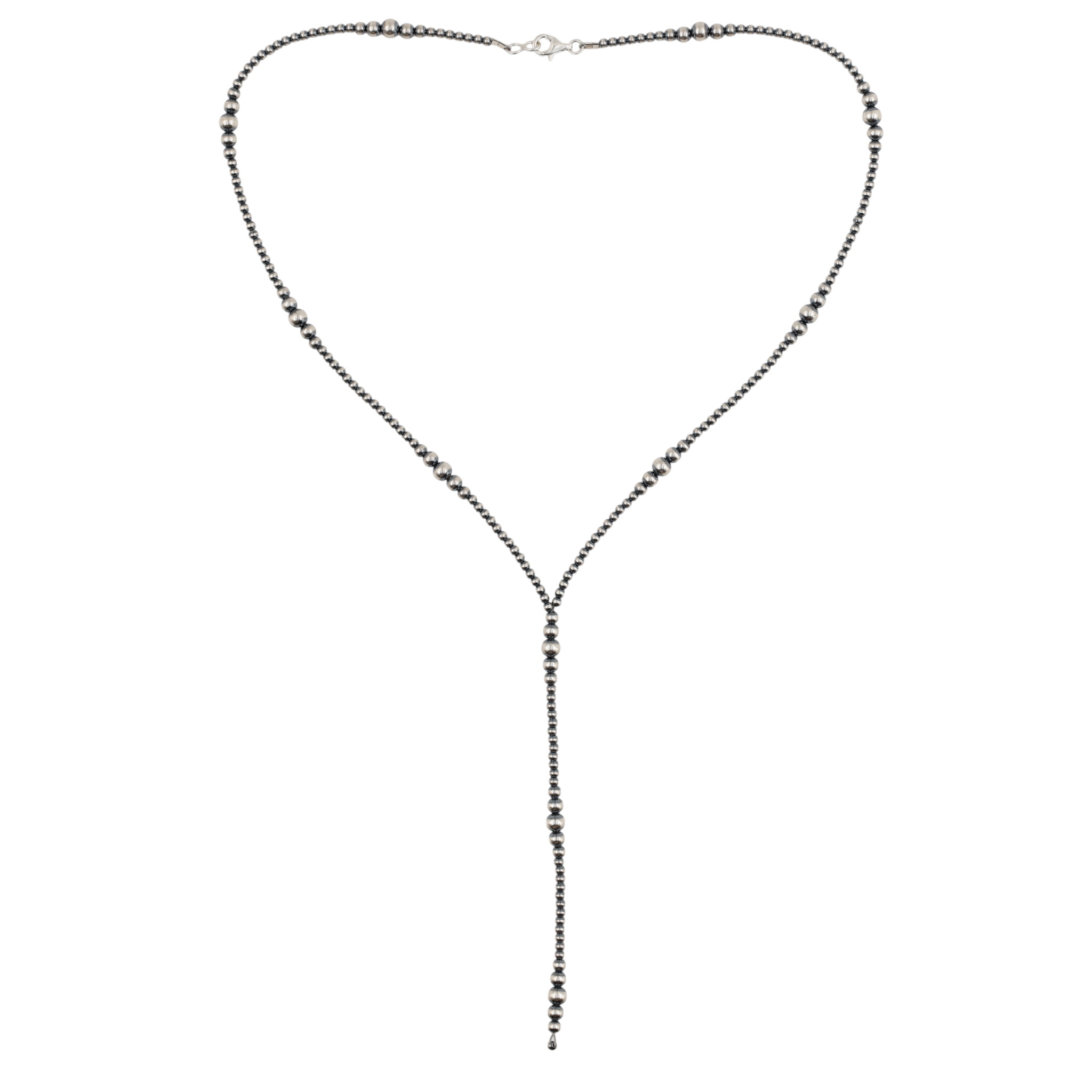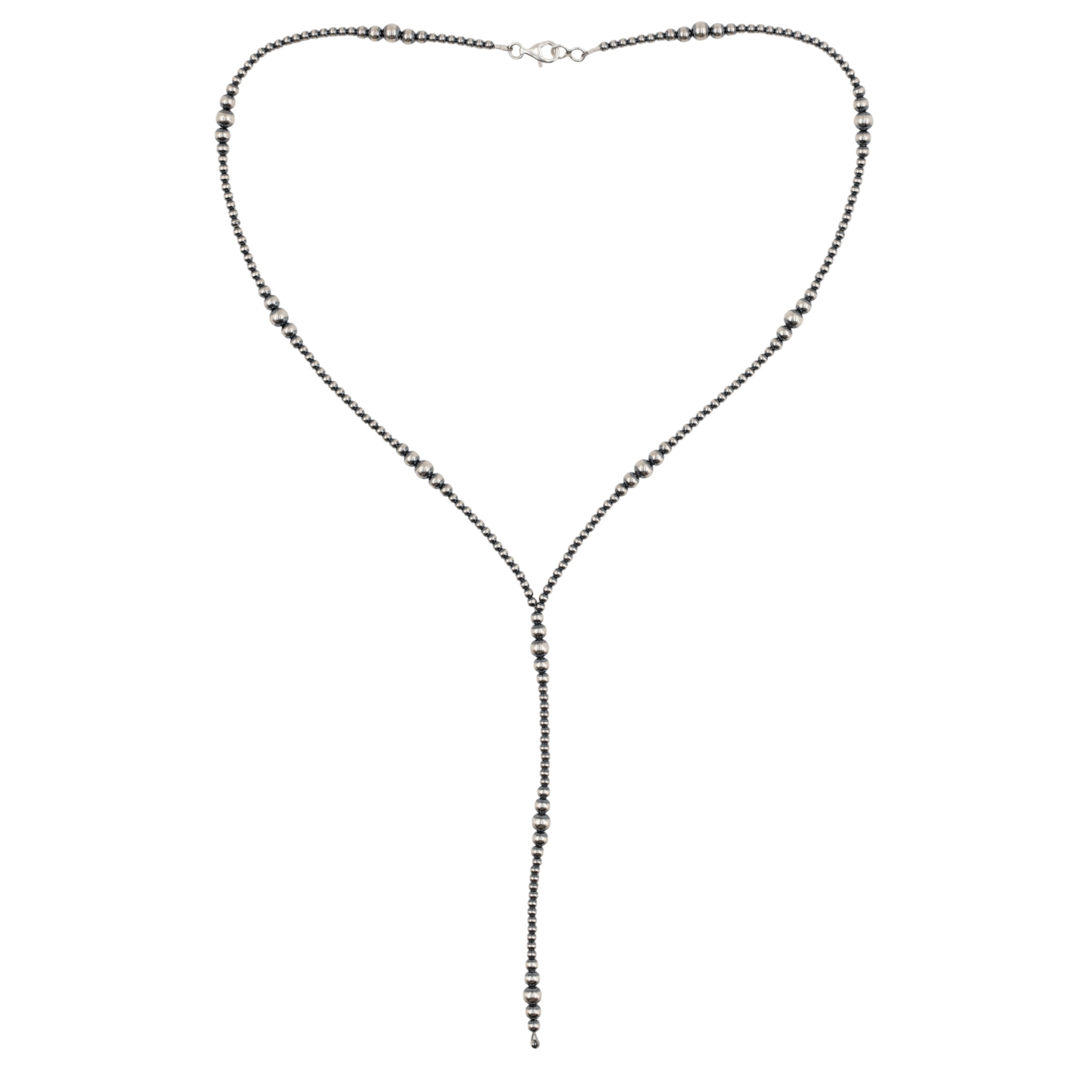 Navajo Hand Strung Sterling Beaded Lariat Necklace 18g