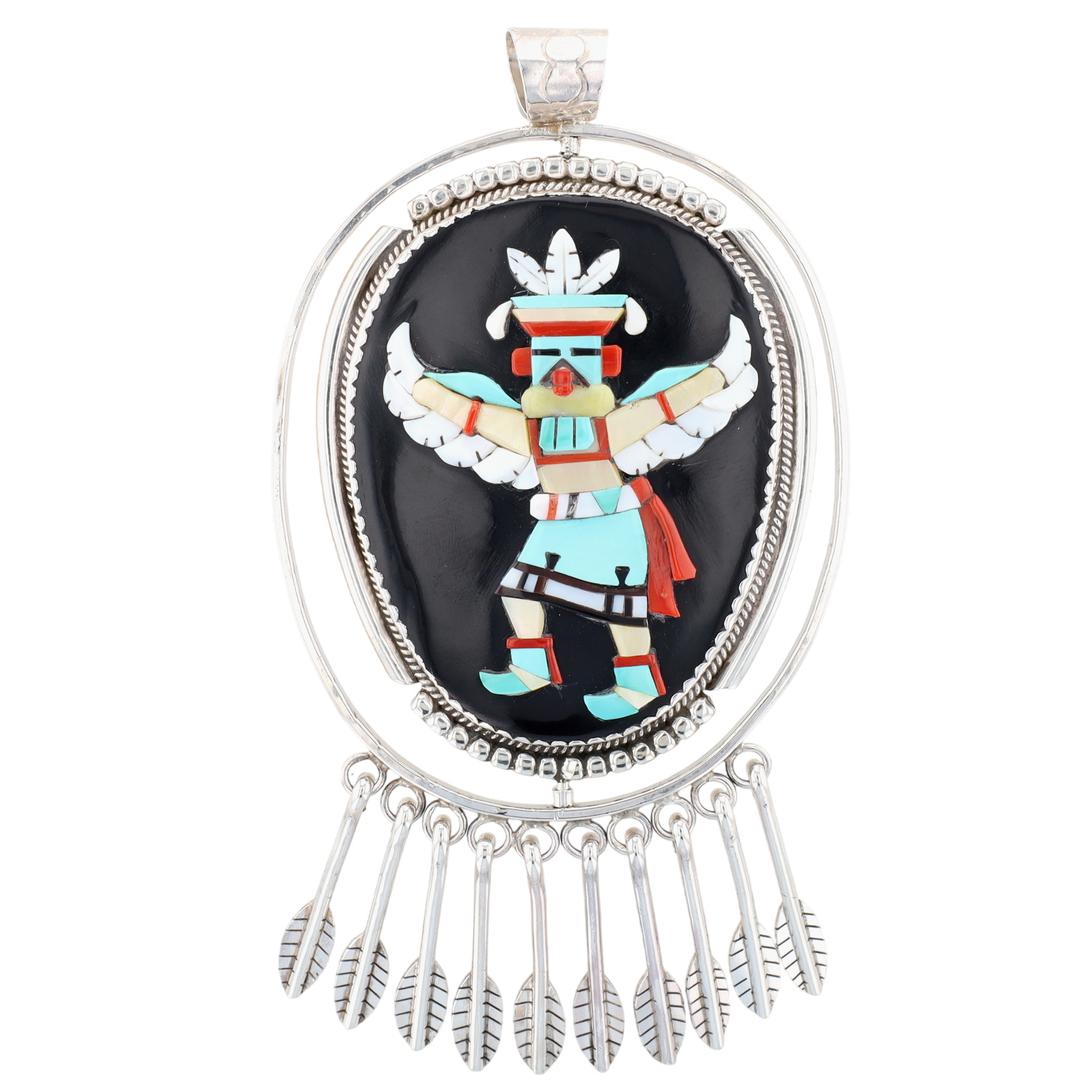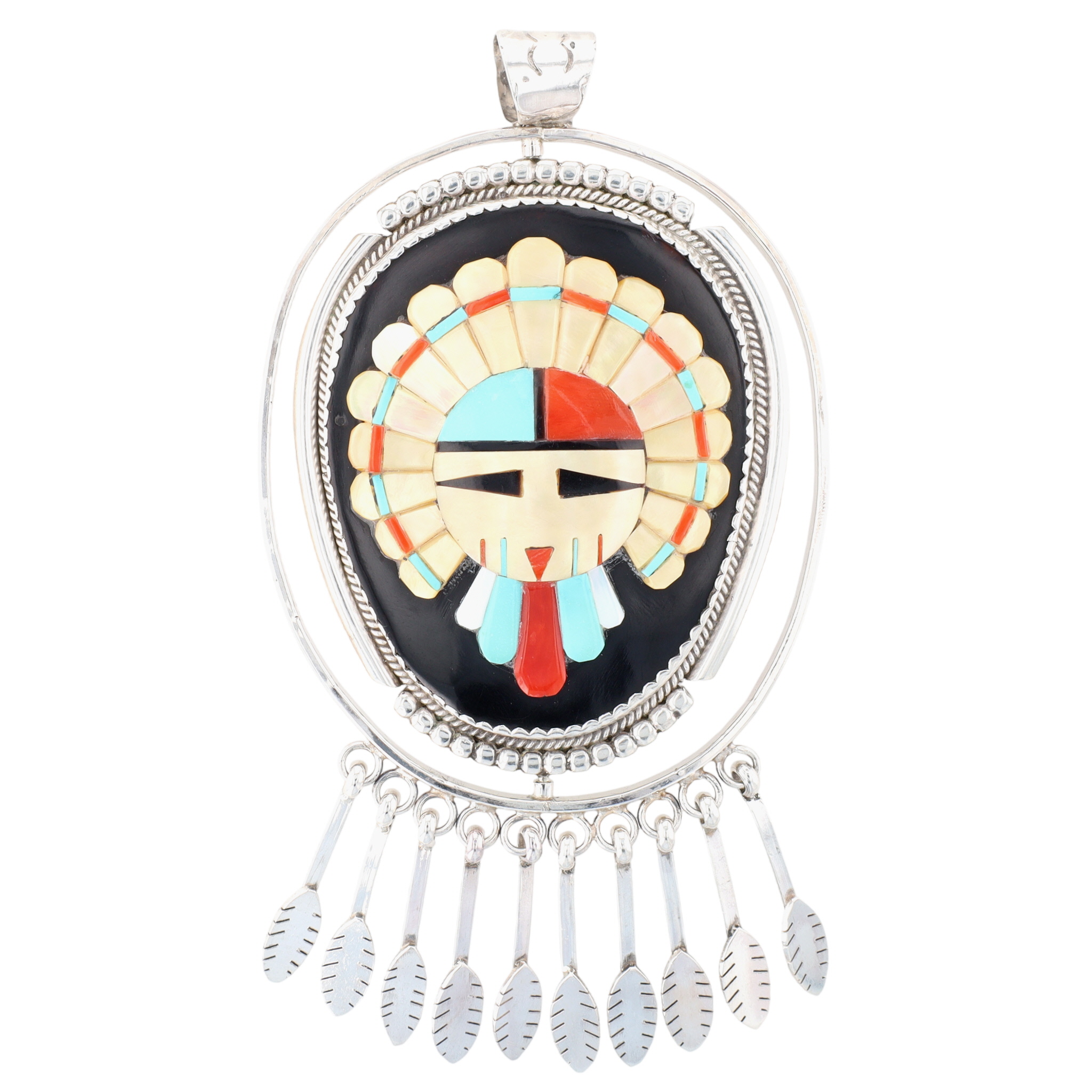 Huge Spinning Zuni Sterling Multi-Stone Knifewing Sunface Inlay Pendant 112g