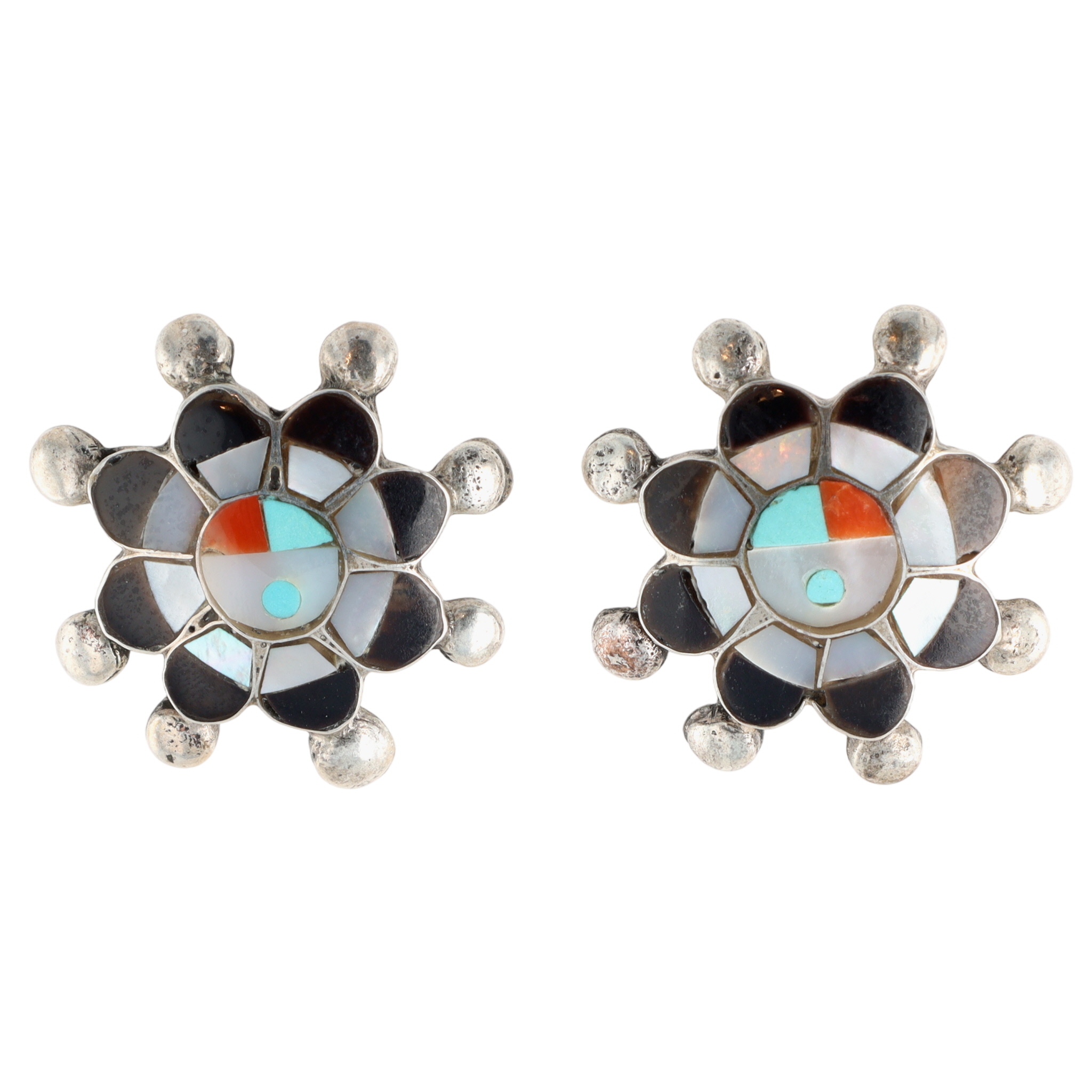 Pauline Lonjose Zuni Sterling Multi-Stone Sunface Stud Earrings 5g
