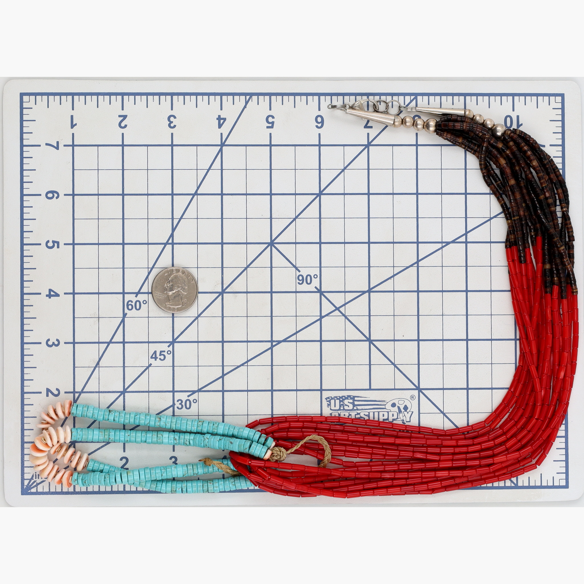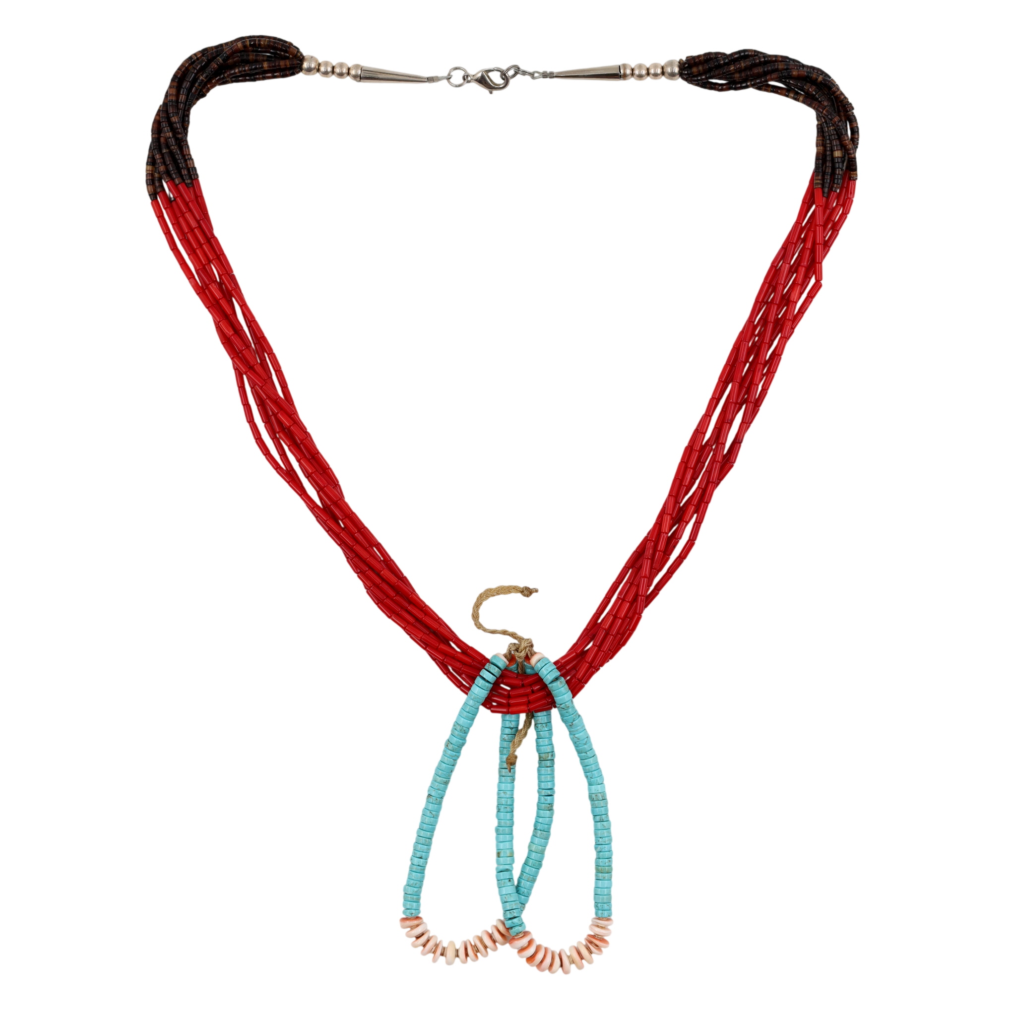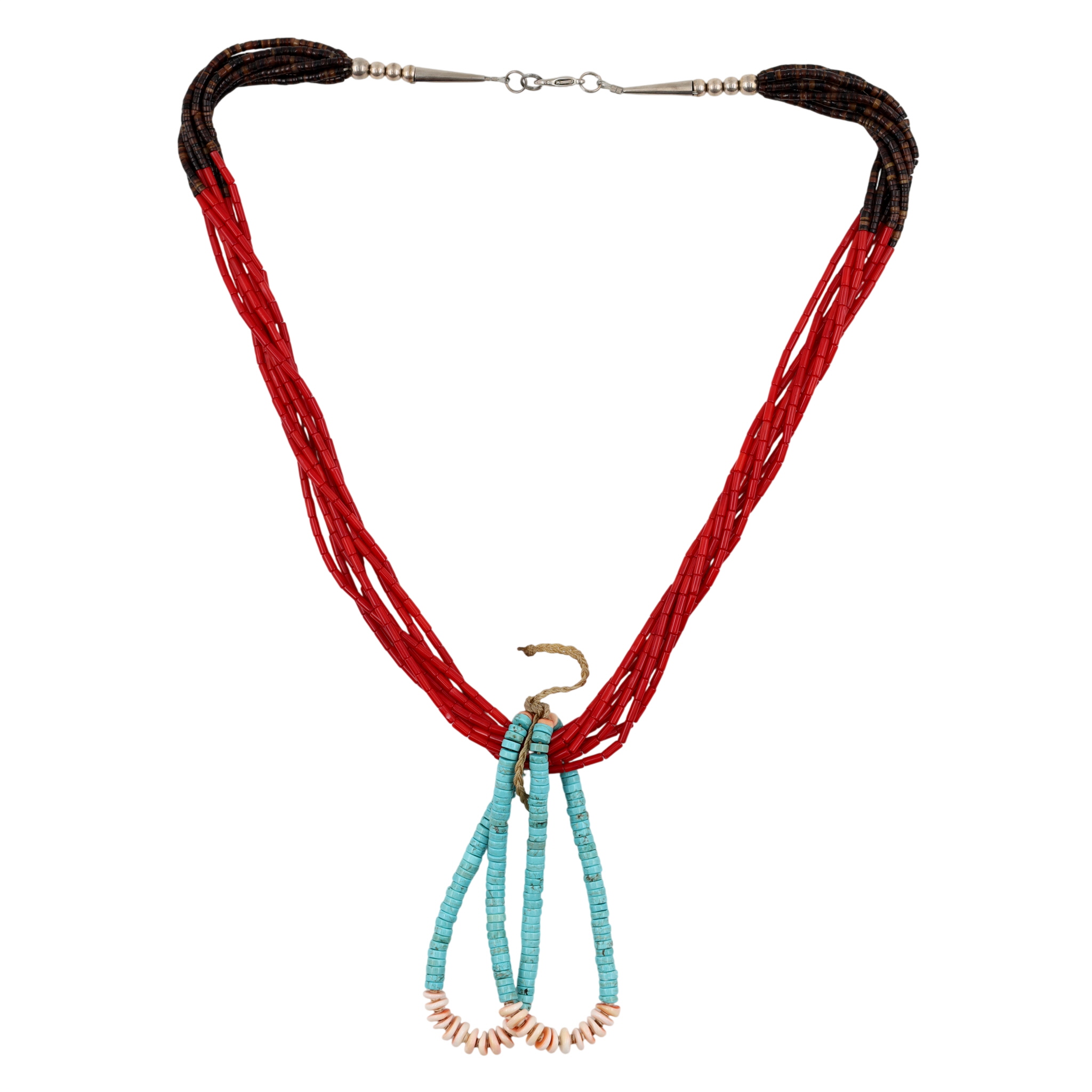 Presented in partnership with the historic Richardson’s Trading Post, a cornerstone of Native American jewelry since 1913. Selected from their archives of rare vintage and contemporary pieces. Santo Domingo Sterling Multi-Stone Heishi Jacla Necklace 154g