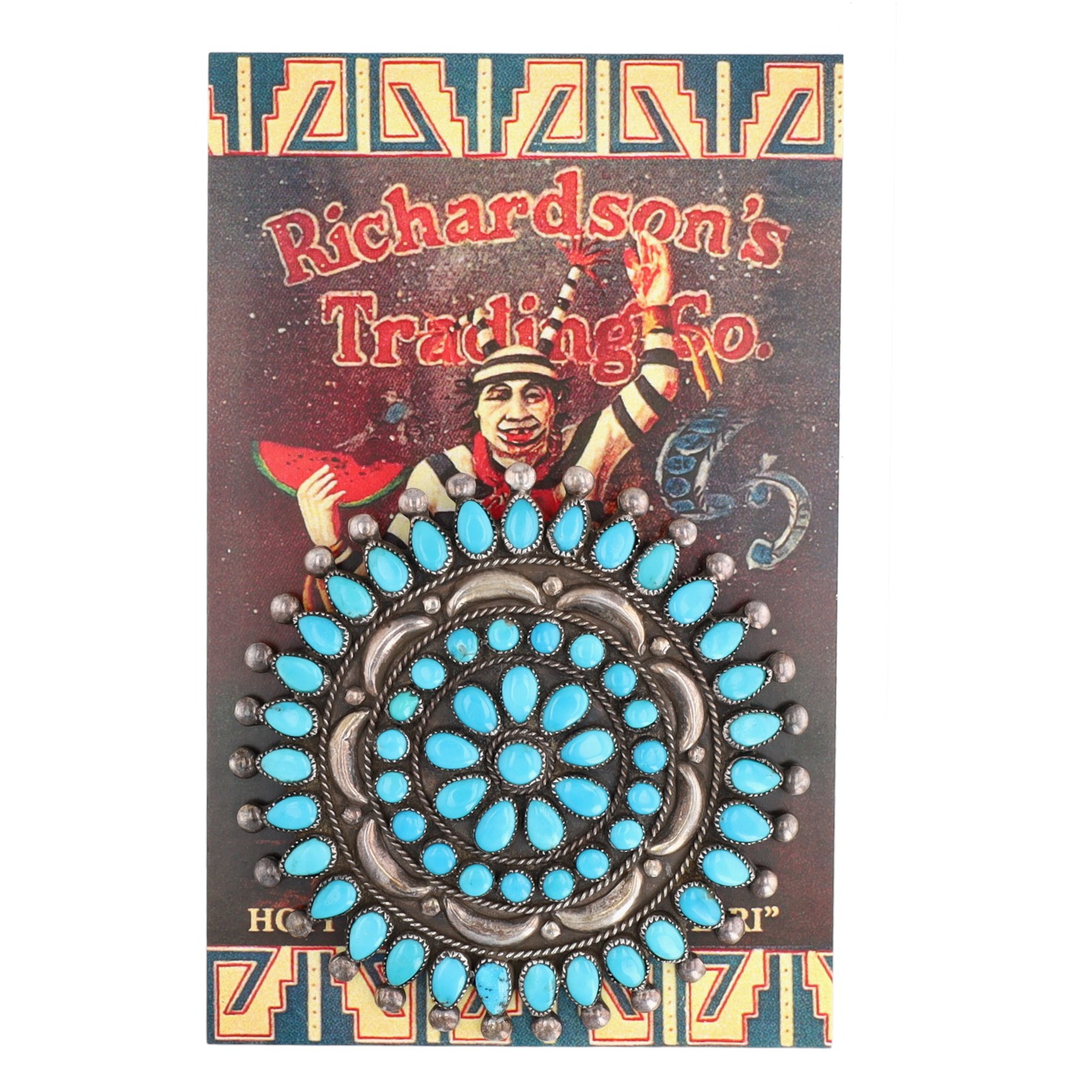 Presented in partnership with the historic Richardson’s Trading Post, a cornerstone of Native American jewelry since 1913. Selected from their archives of rare vintage and contemporary pieces. Victor Moses Begay Navajo Sterling Turquoise Brooch 40g