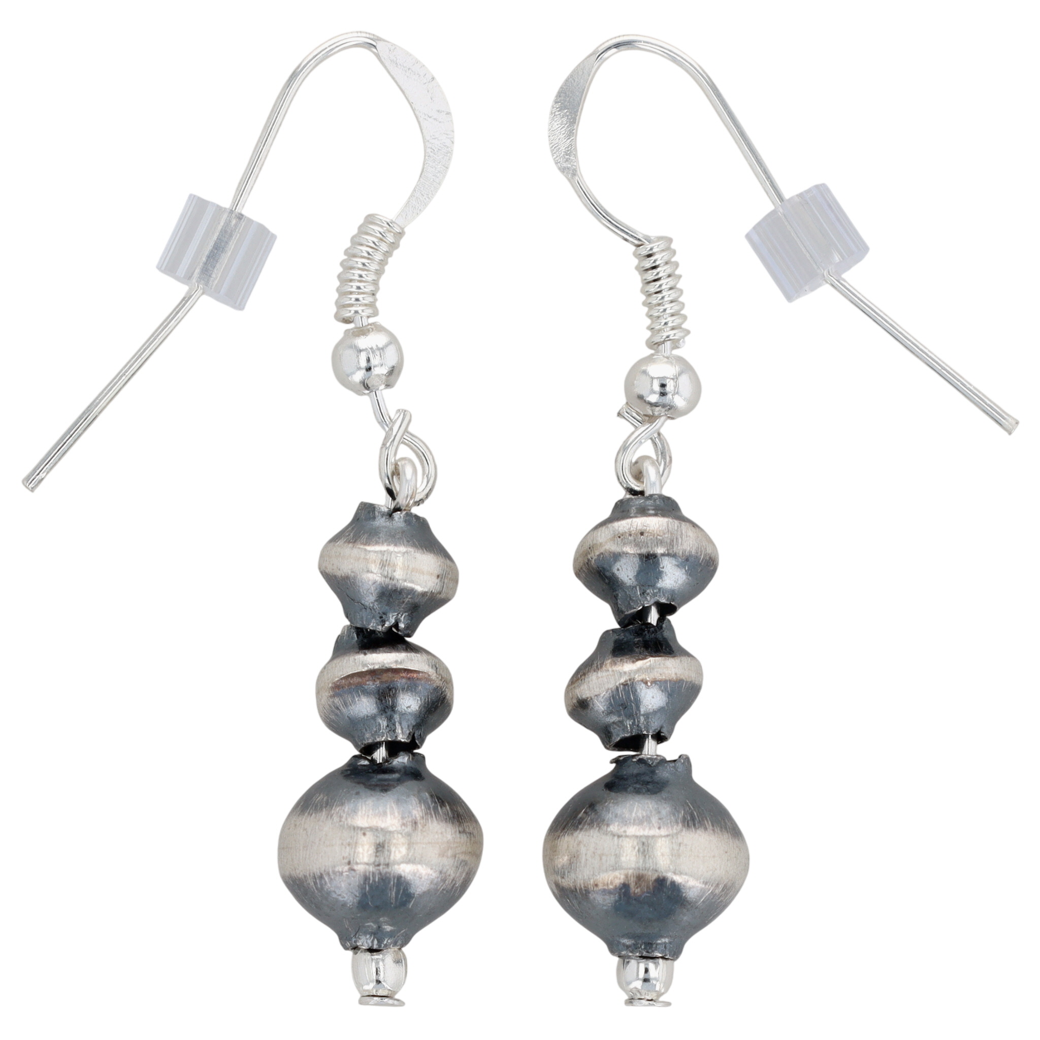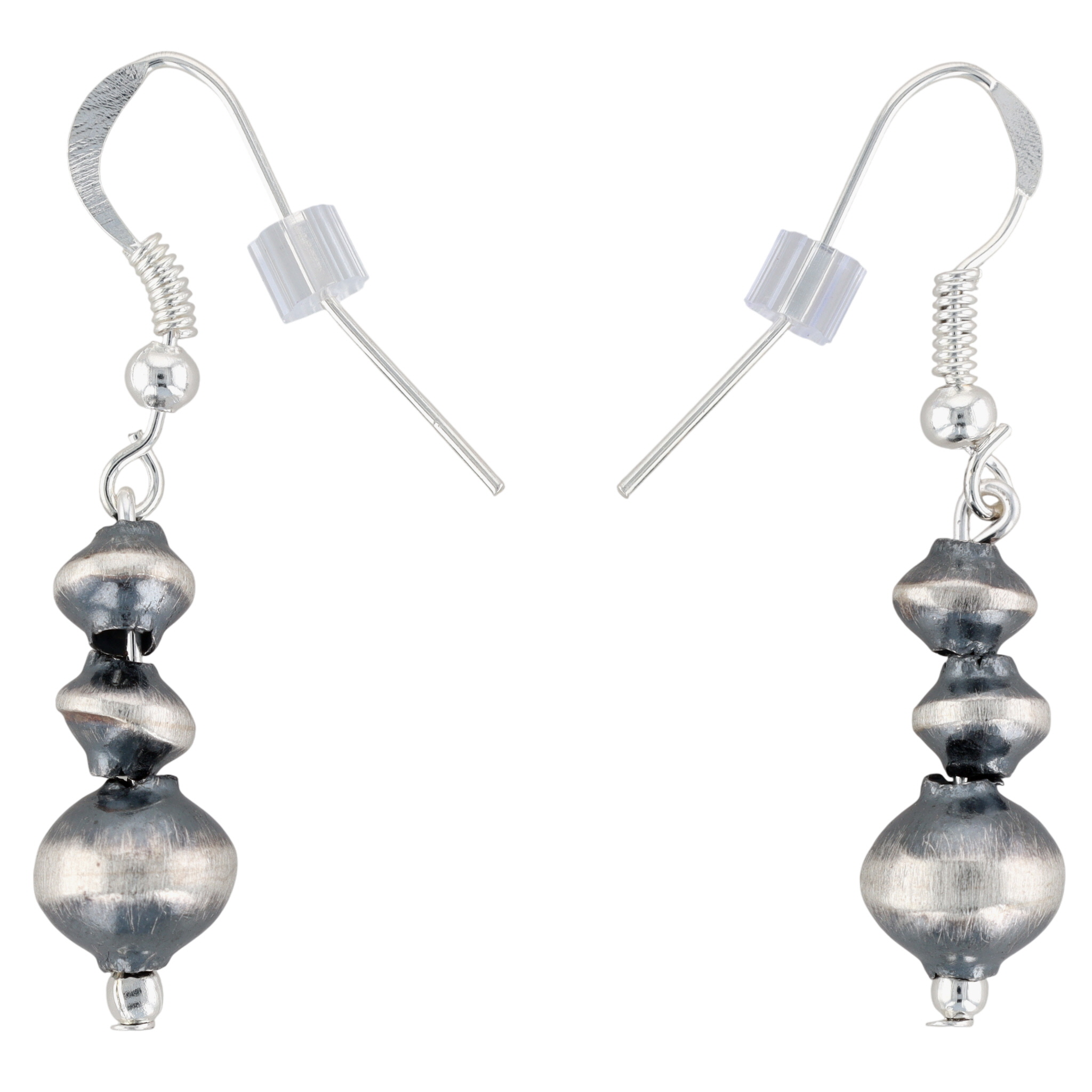 Treva Jim Navajo Plain Sterling Silver Bead Hook Earrings 3g
