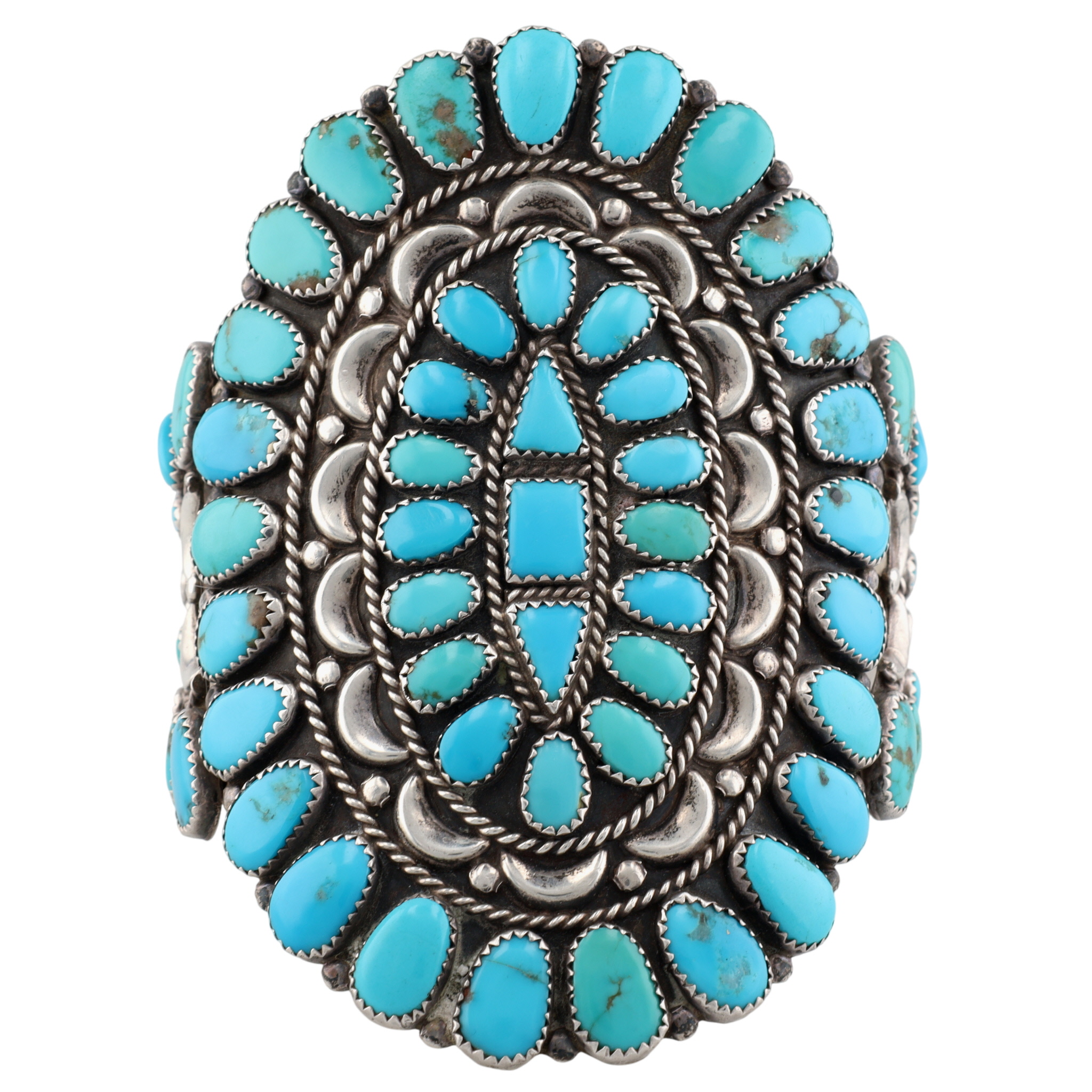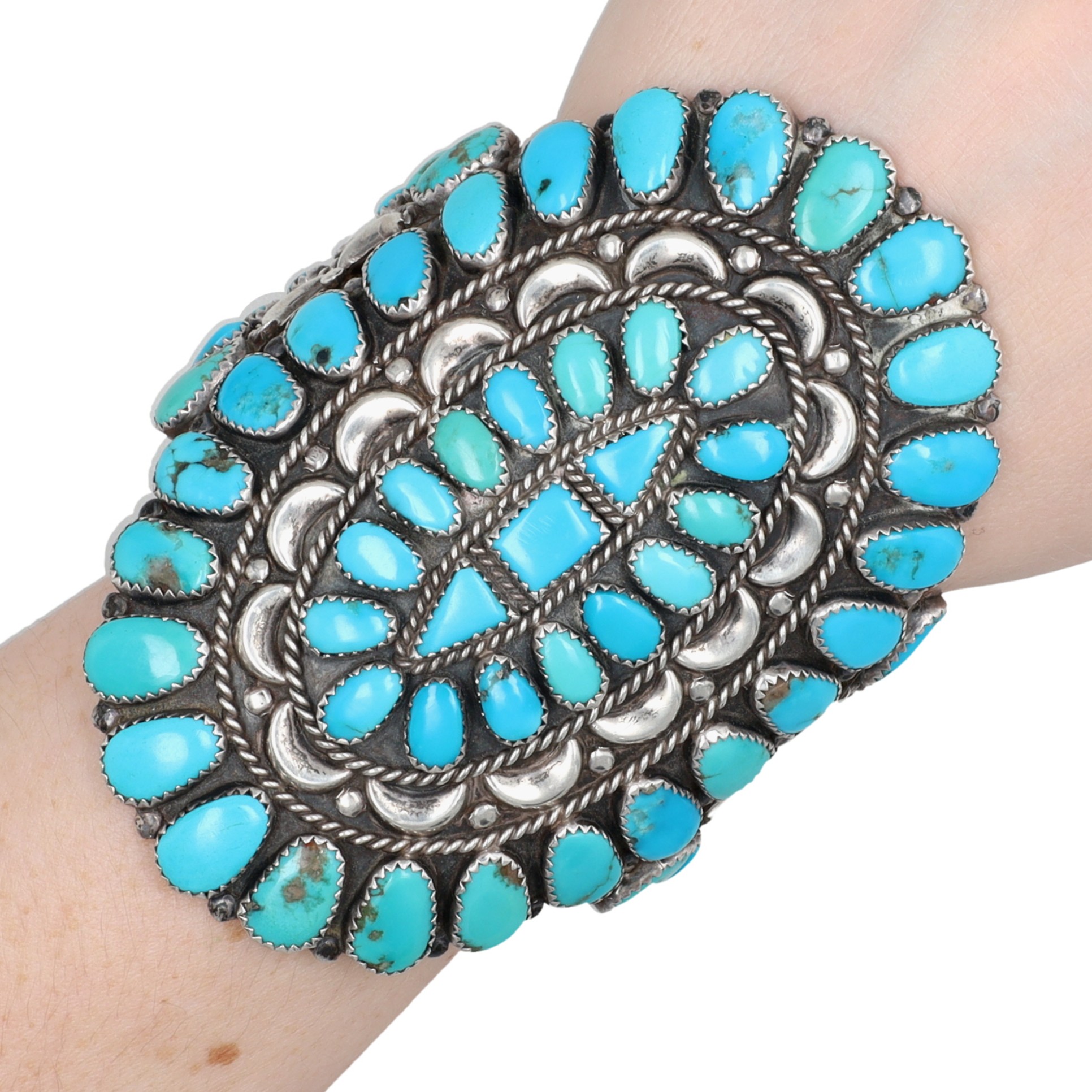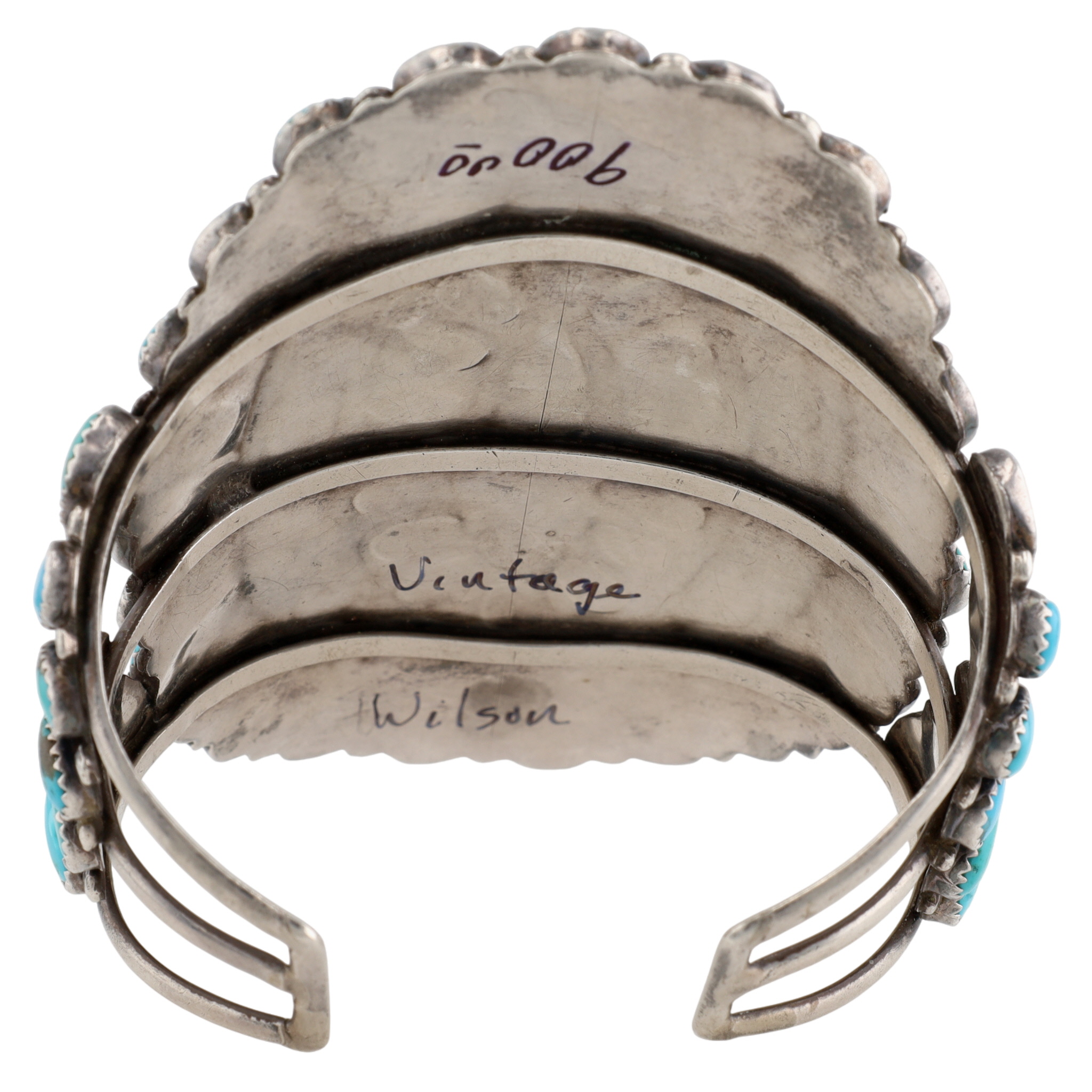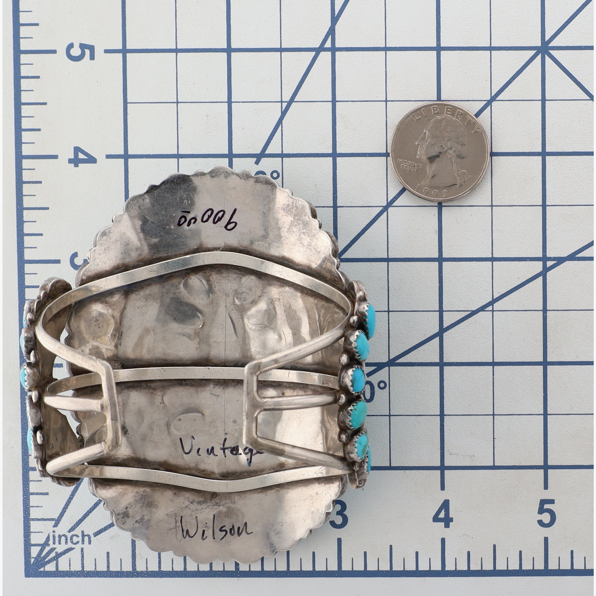 Vintage Wilson Navajo Sterling Turquoise Cluster Cuff Bracelet 78g