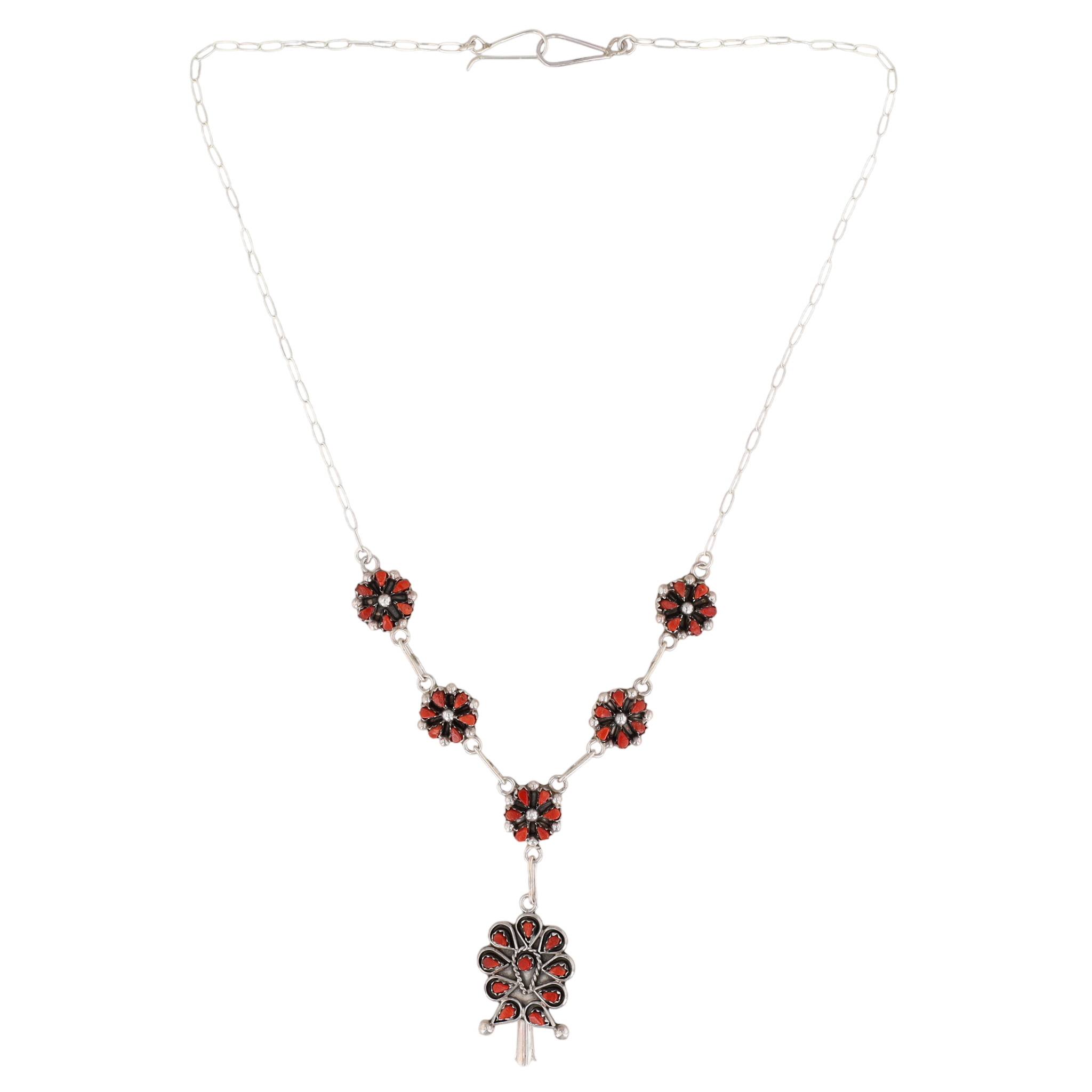 Tricia Leekity Zuni Sterling Red Coral Petit Point Squash Necklace 13g