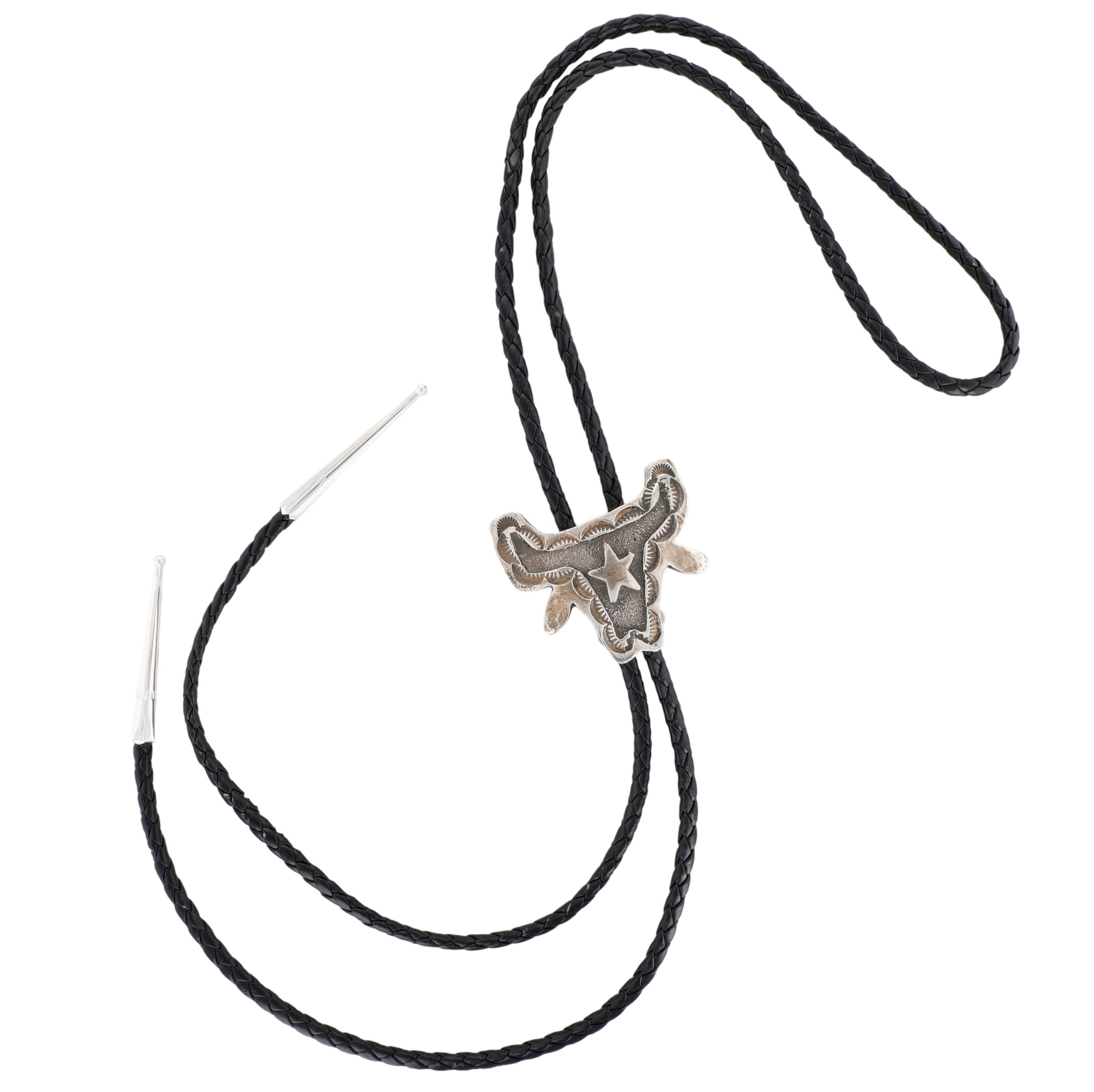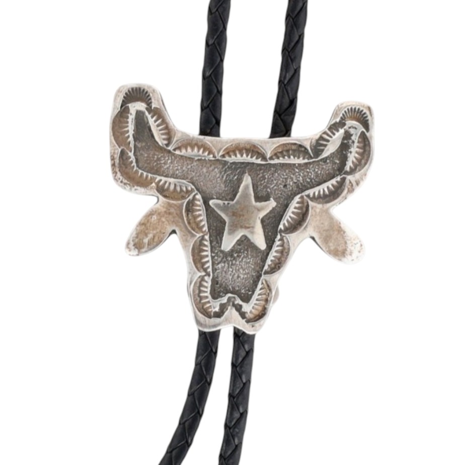 Emerson Kinsel Navajo Plain Sterling Silver Bull Star Bolo Tie 34g