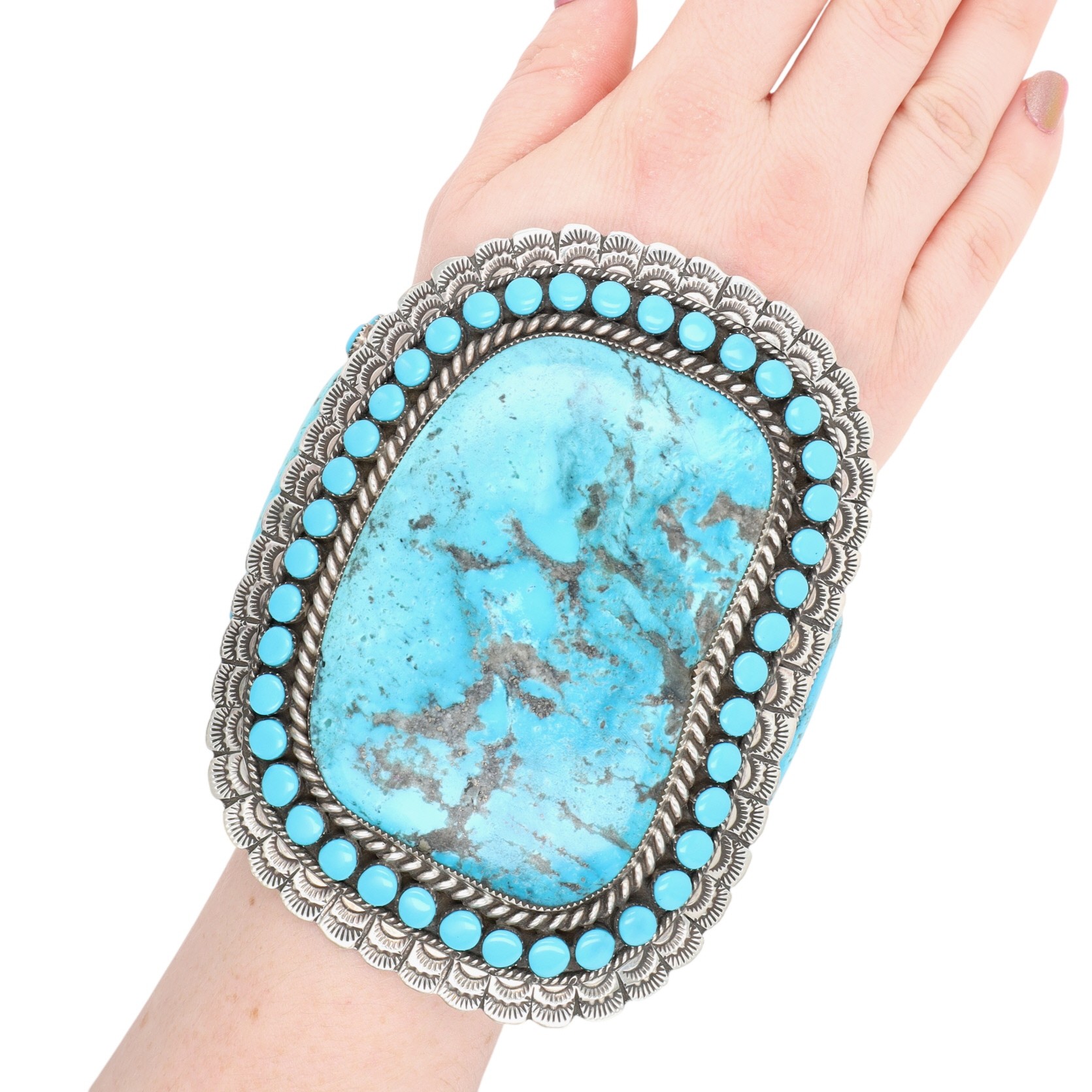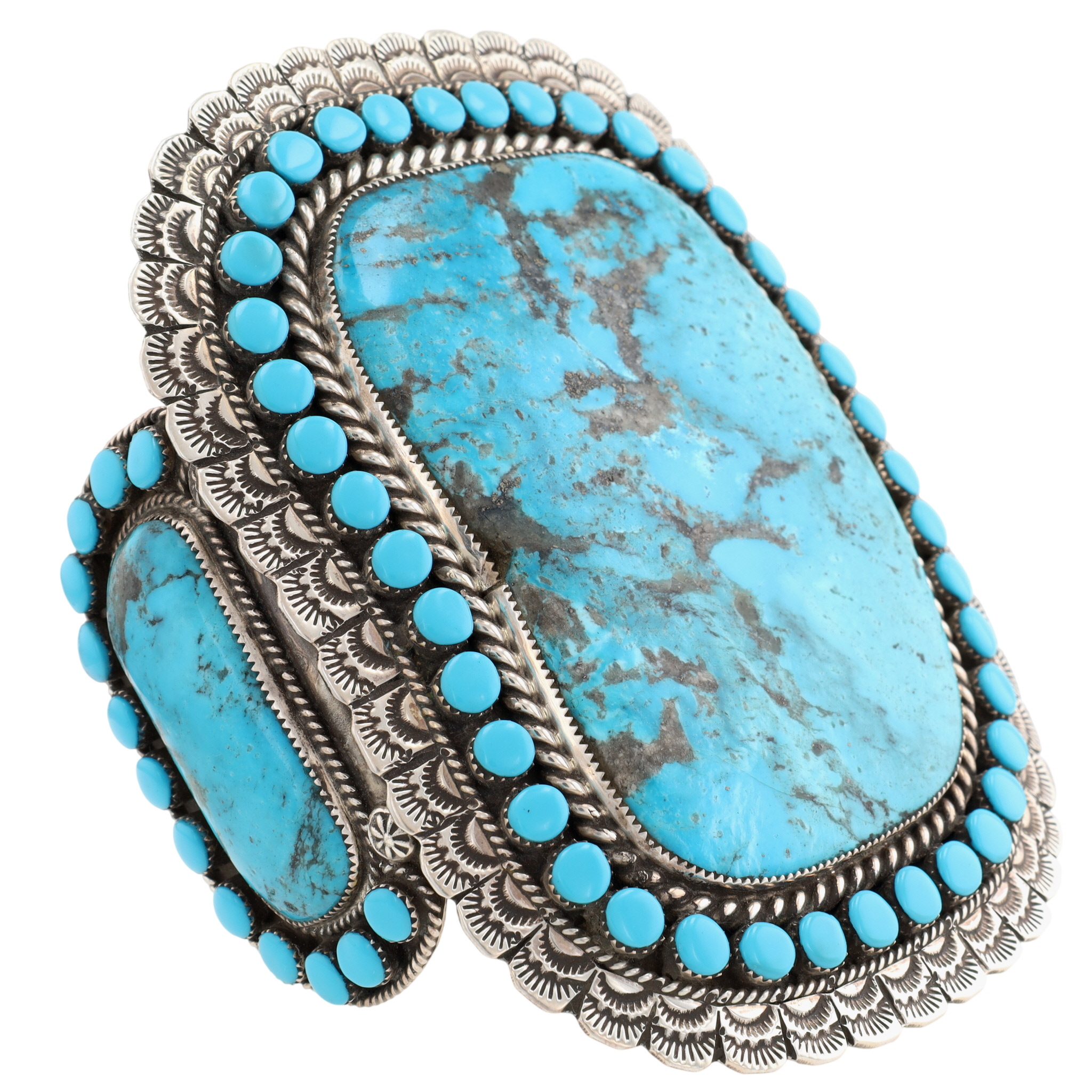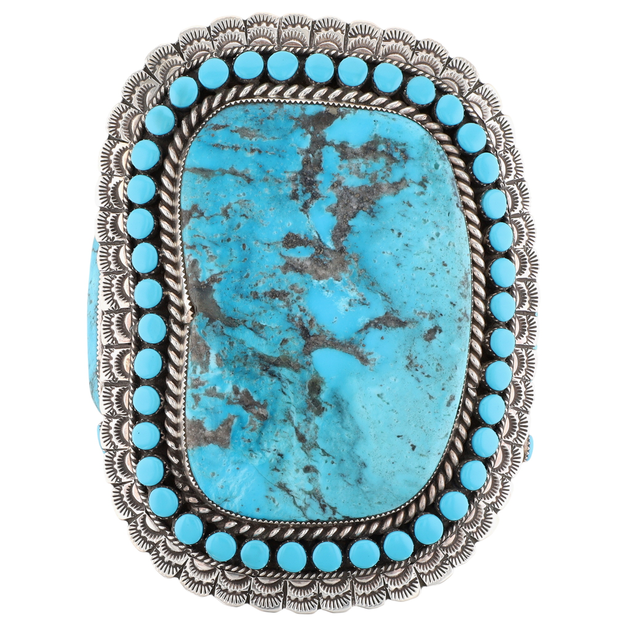 HUGE Larry Etcitty Navajo Sterling Kingman Turquoise Cuff Bracelet
