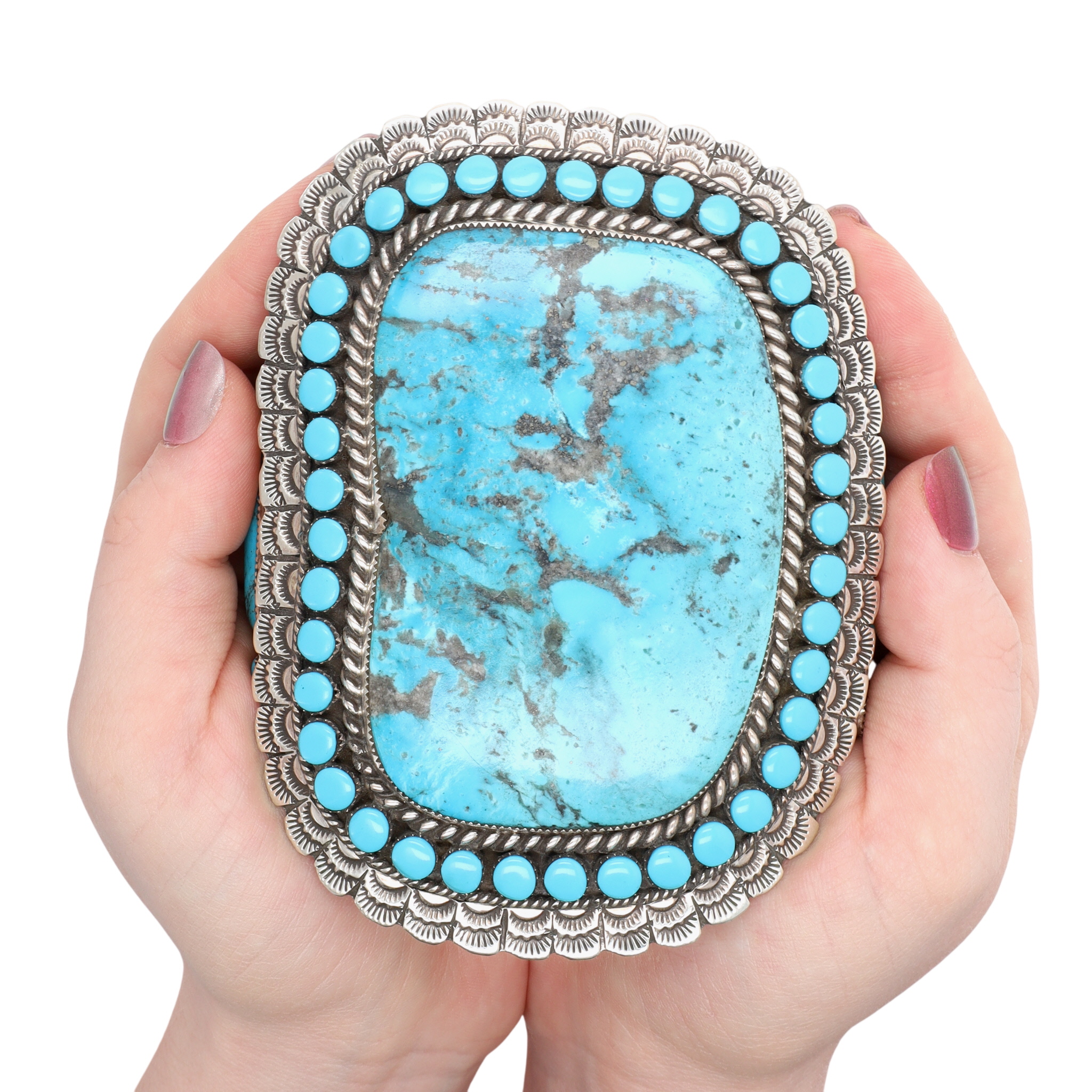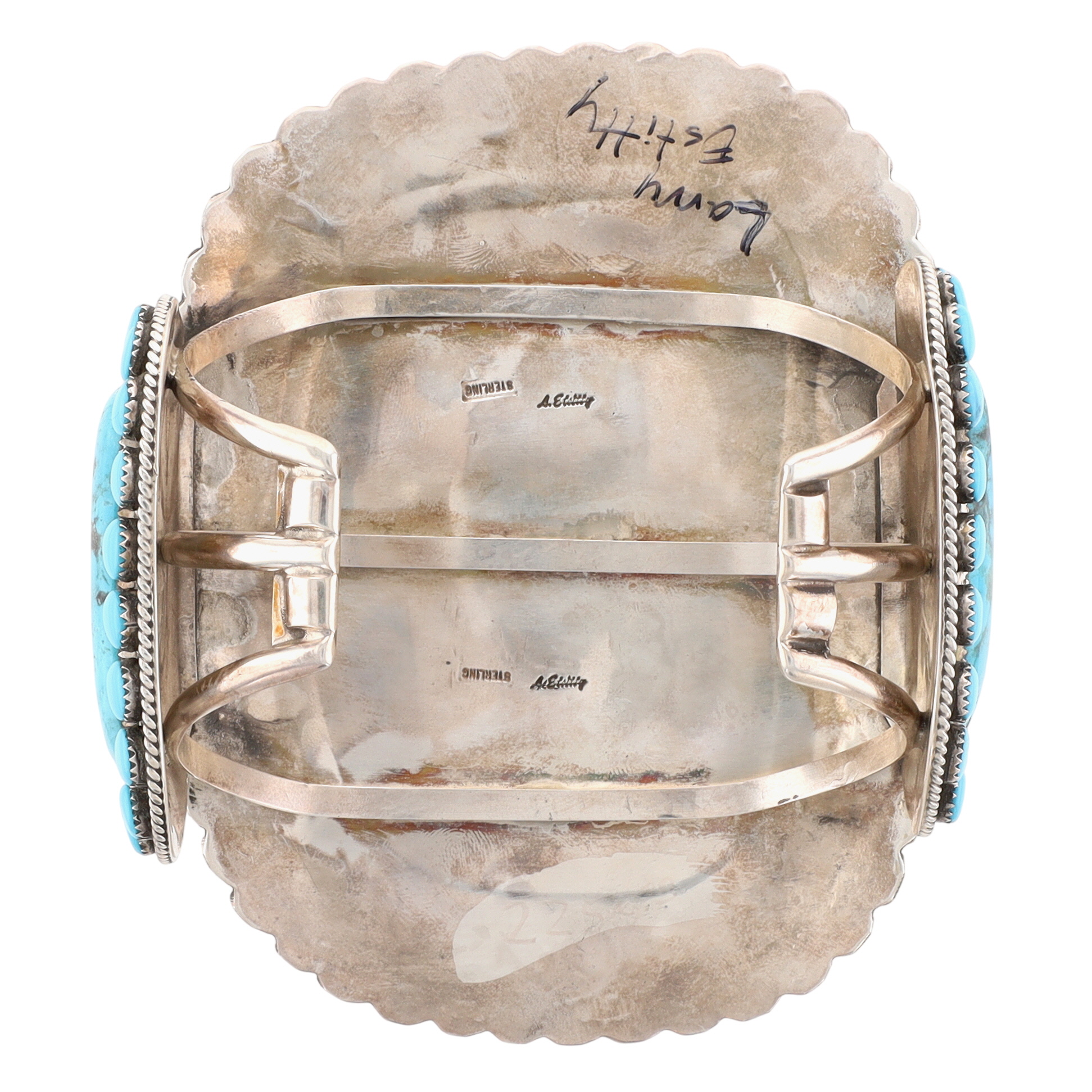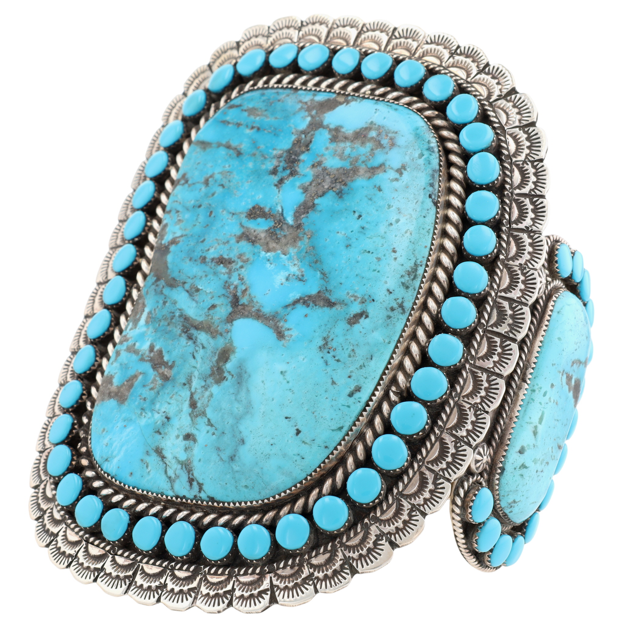 HUGE Larry Etcitty Navajo Sterling Kingman Turquoise Cuff Bracelet