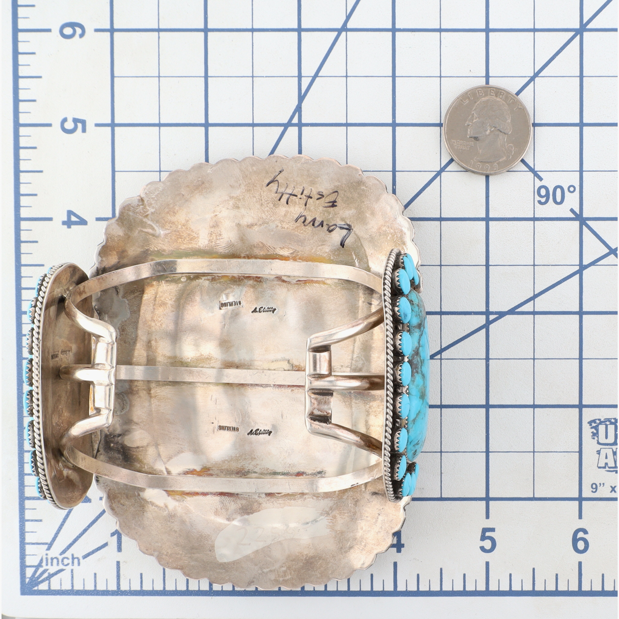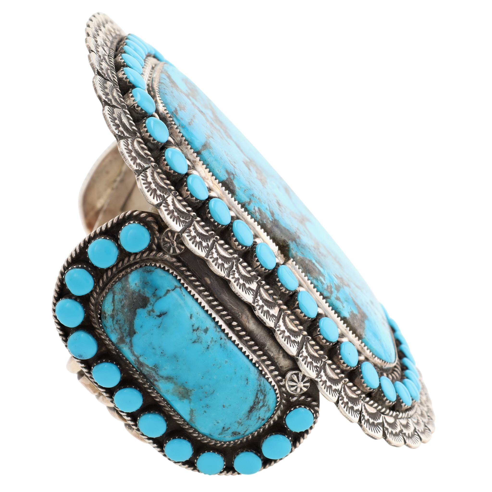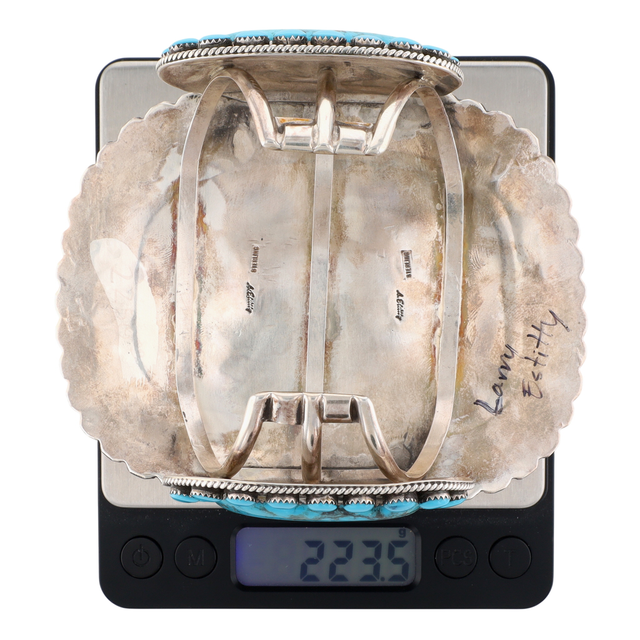 HUGE Larry Etcitty Navajo Sterling Kingman Turquoise Cuff Bracelet 223.5g