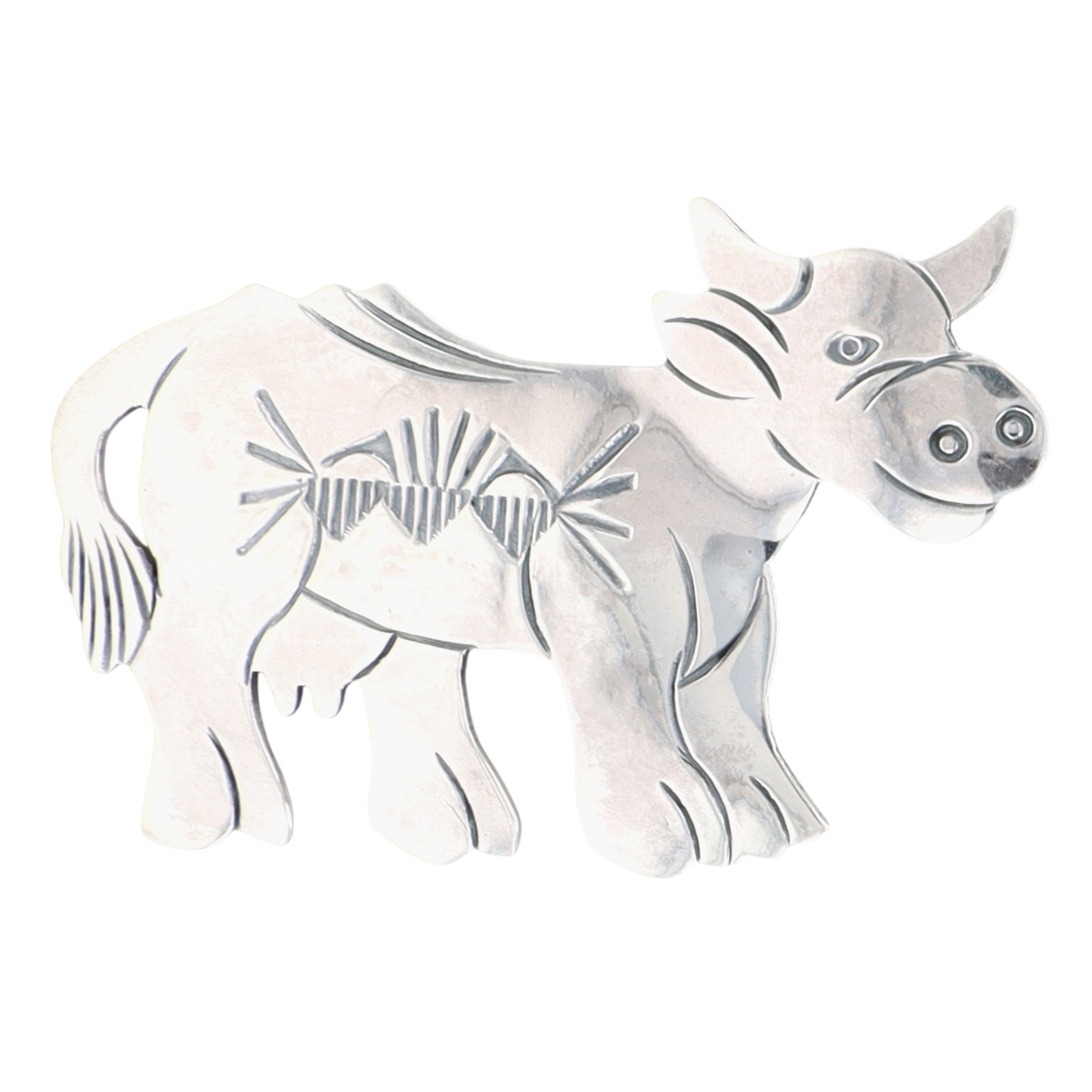Lambert Perry Navajo Plain Sterling Silver Bull Brooch 8g