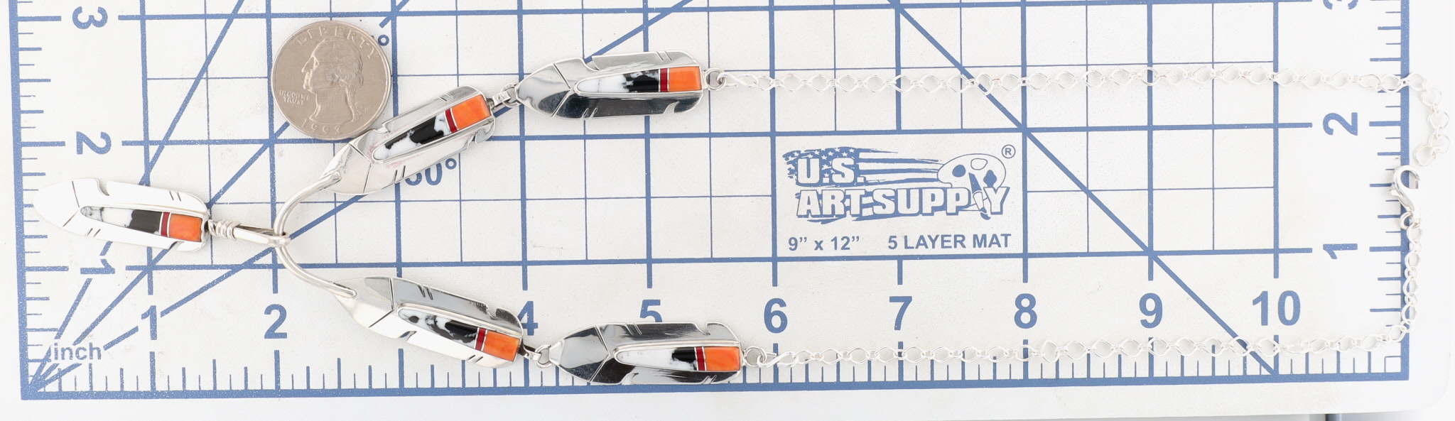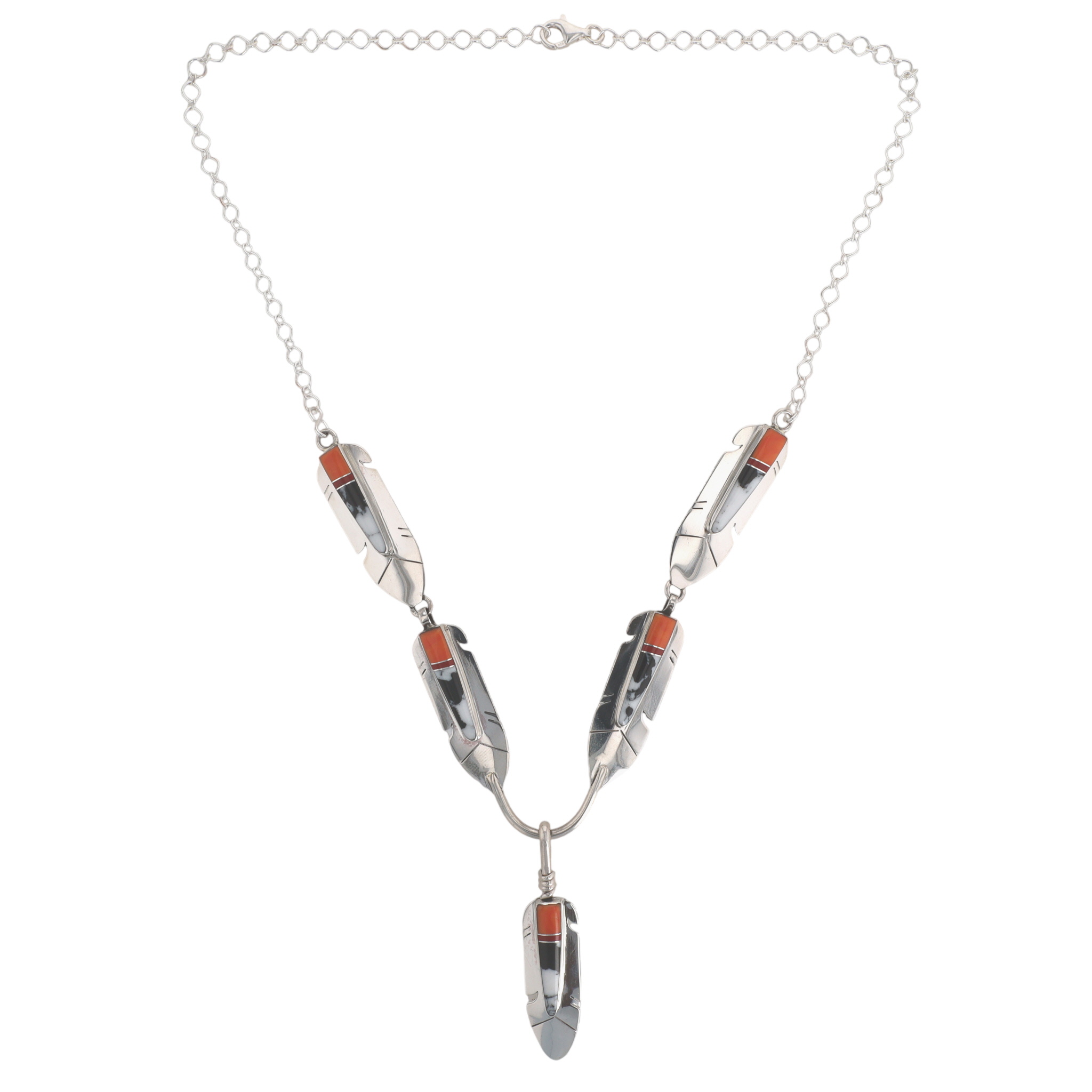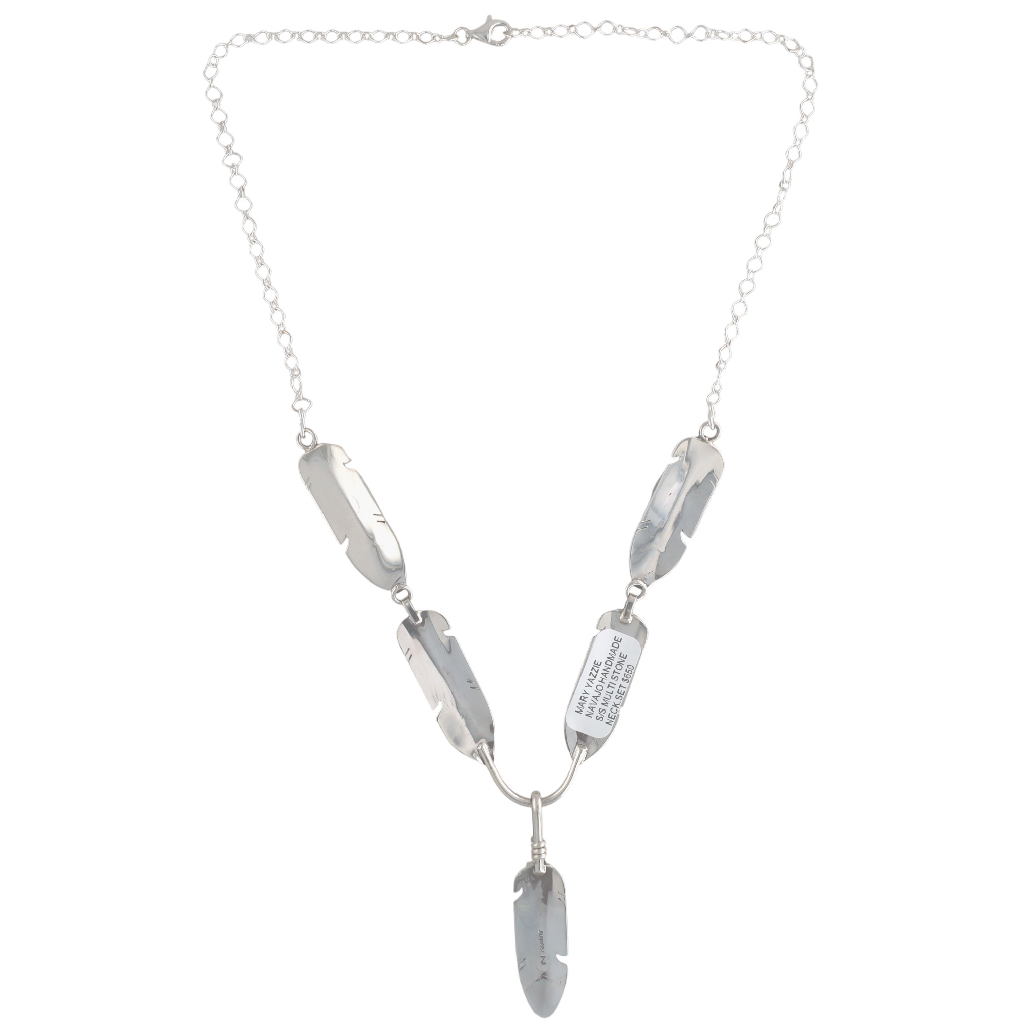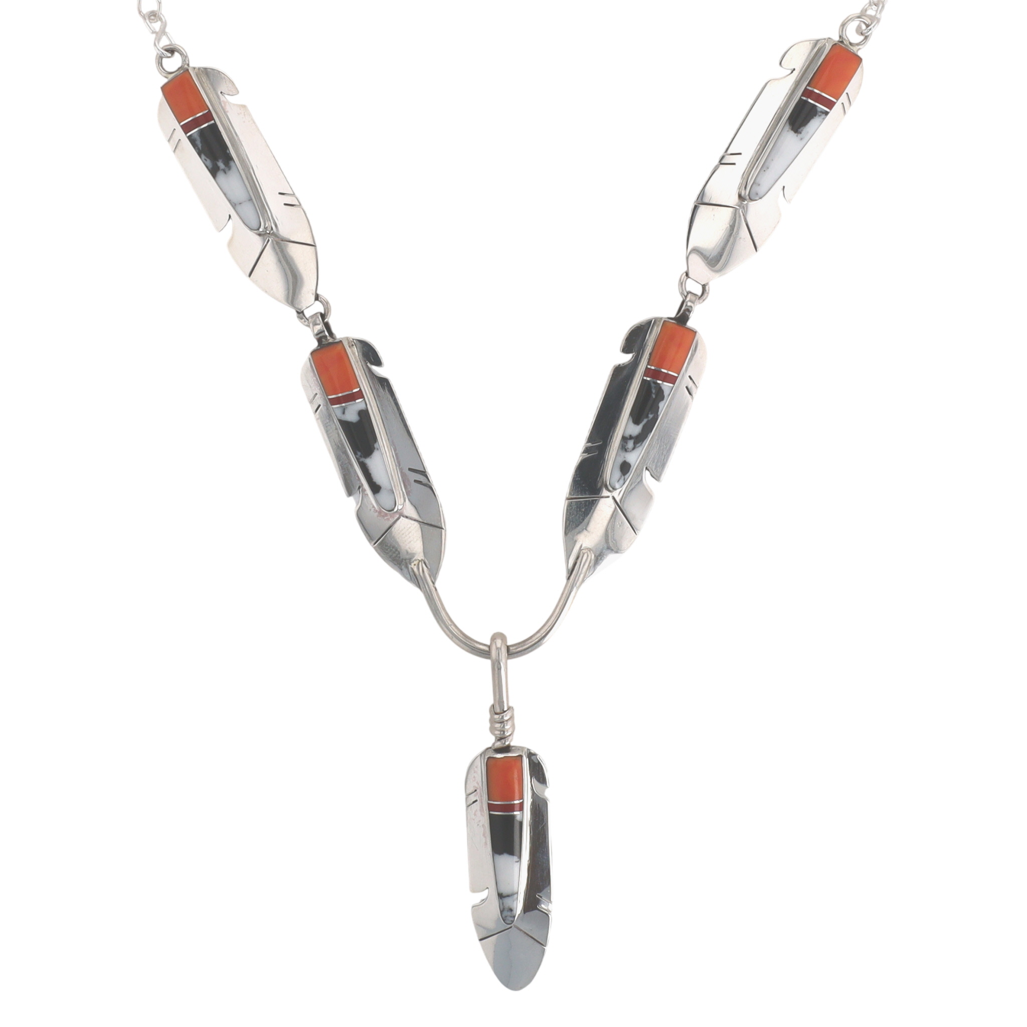 Mary Yazzie Navajo Sterling Multi-Stone Inlay Feather Necklace 19g