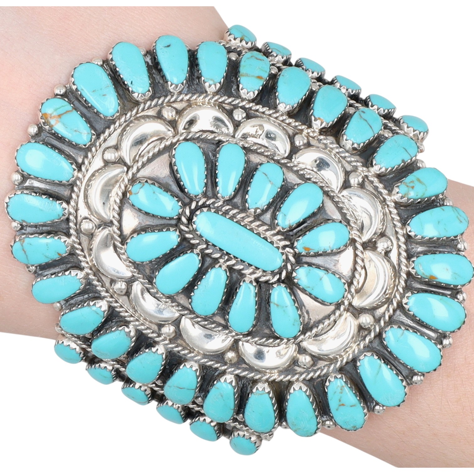 Tamara Benally Navajo Sterling Kingman Turquoise Cluster Cuff Bracelet 45g