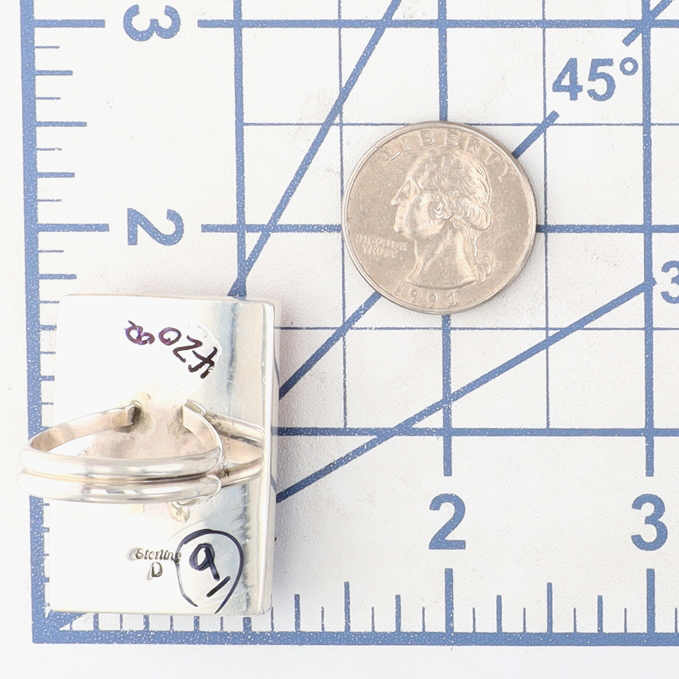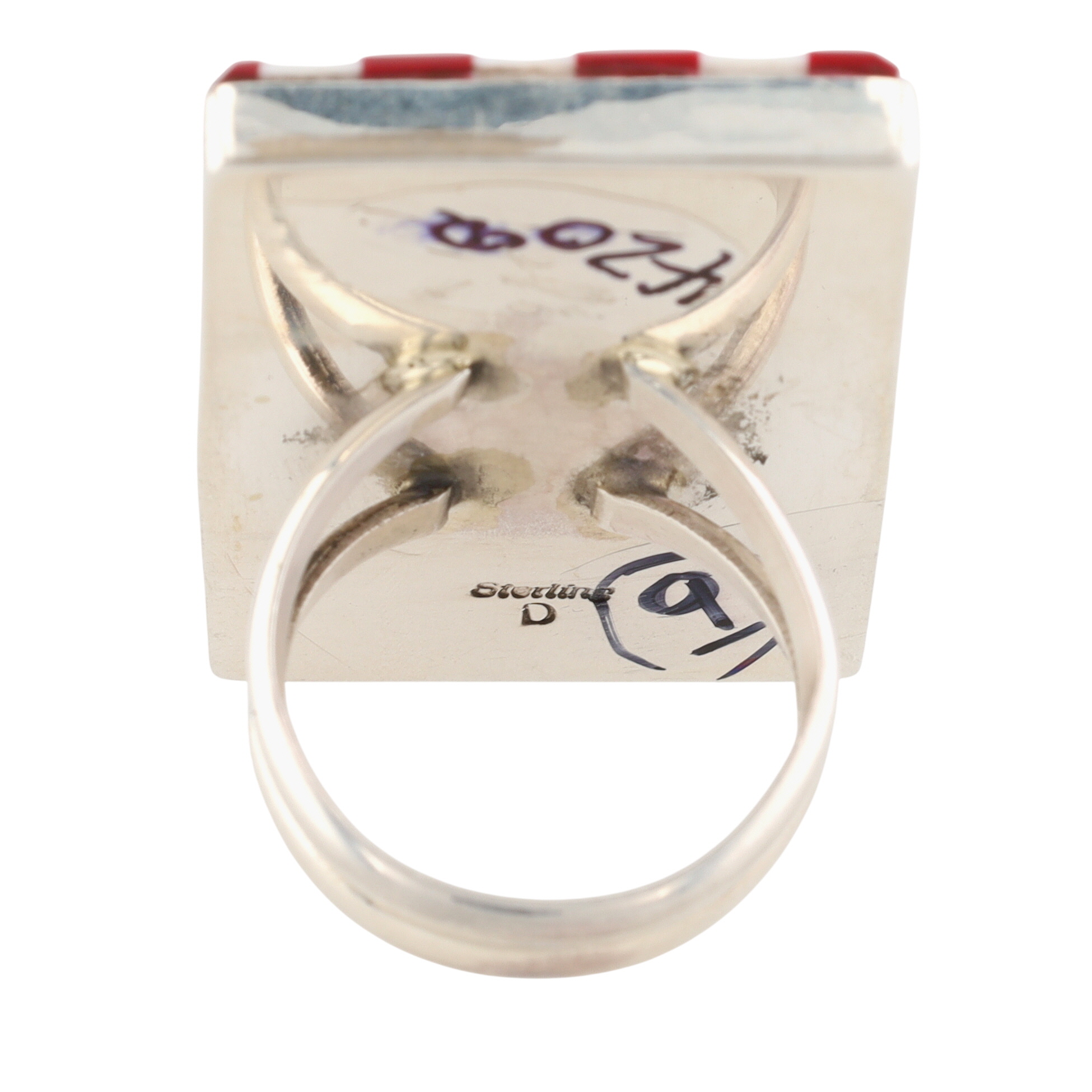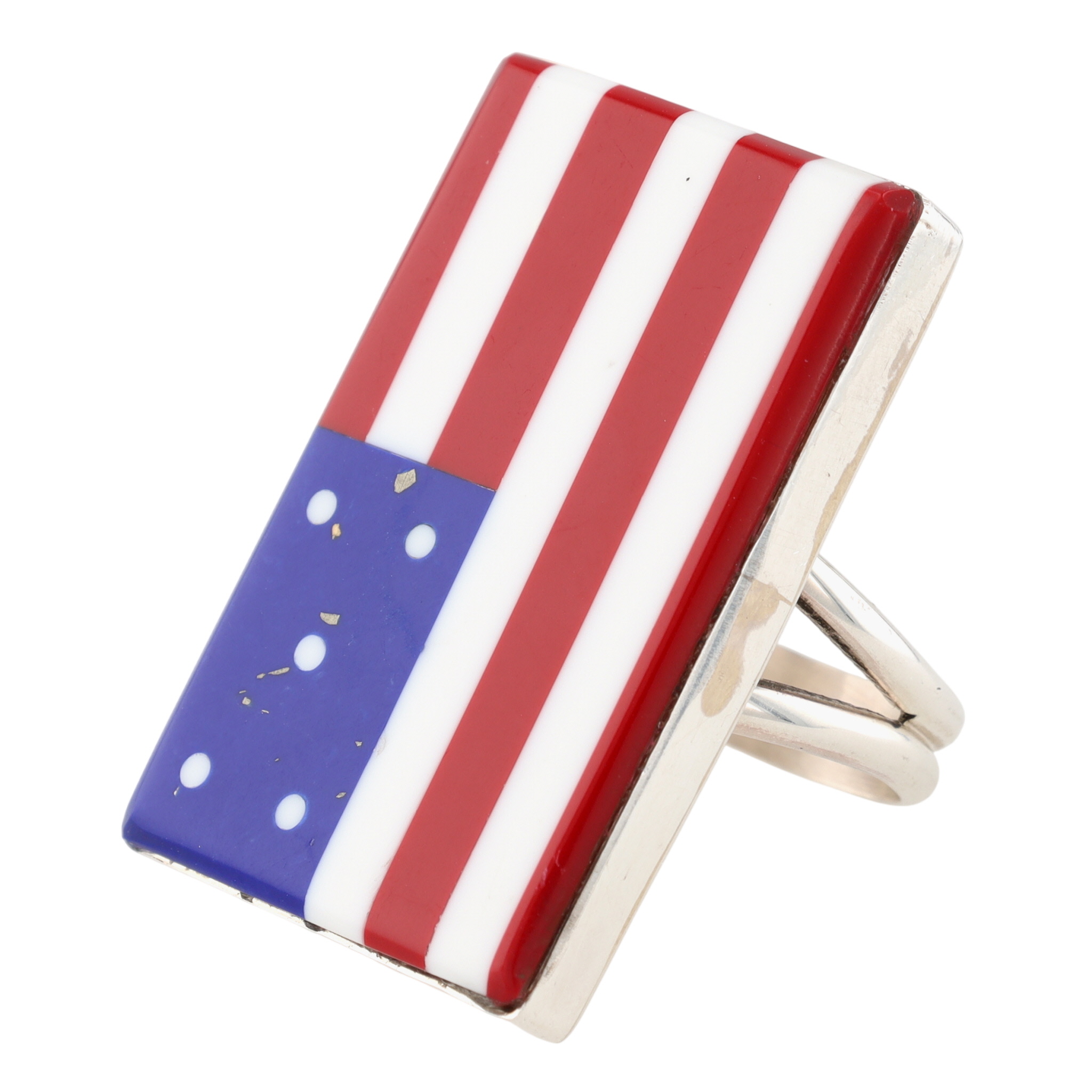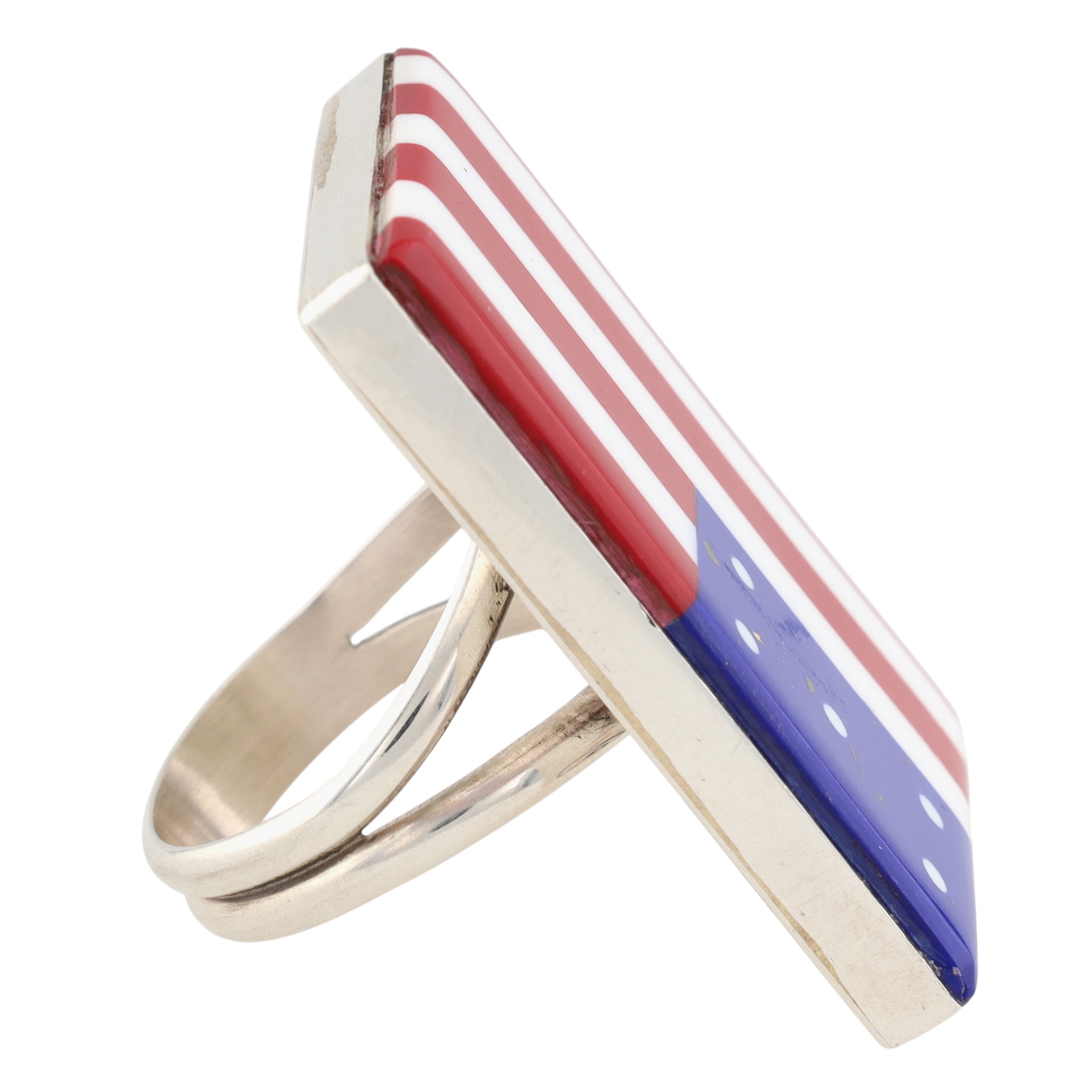 Calvin Desson Navajo Sterling Multi-Stone USA Flag Ring Sz. 9, 16.5g