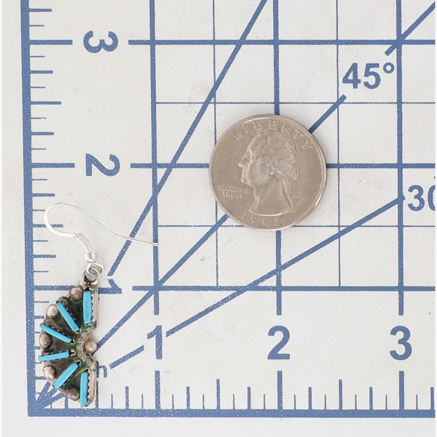 Presented in partnership with the historic Richardson’s Trading Post, a cornerstone of Native American jewelry since 1913. Selected from their archives of rare vintage and contemporary pieces. Helen Harrison Zuni Sterling Needlepoint Turquoise Earrings 4.5g