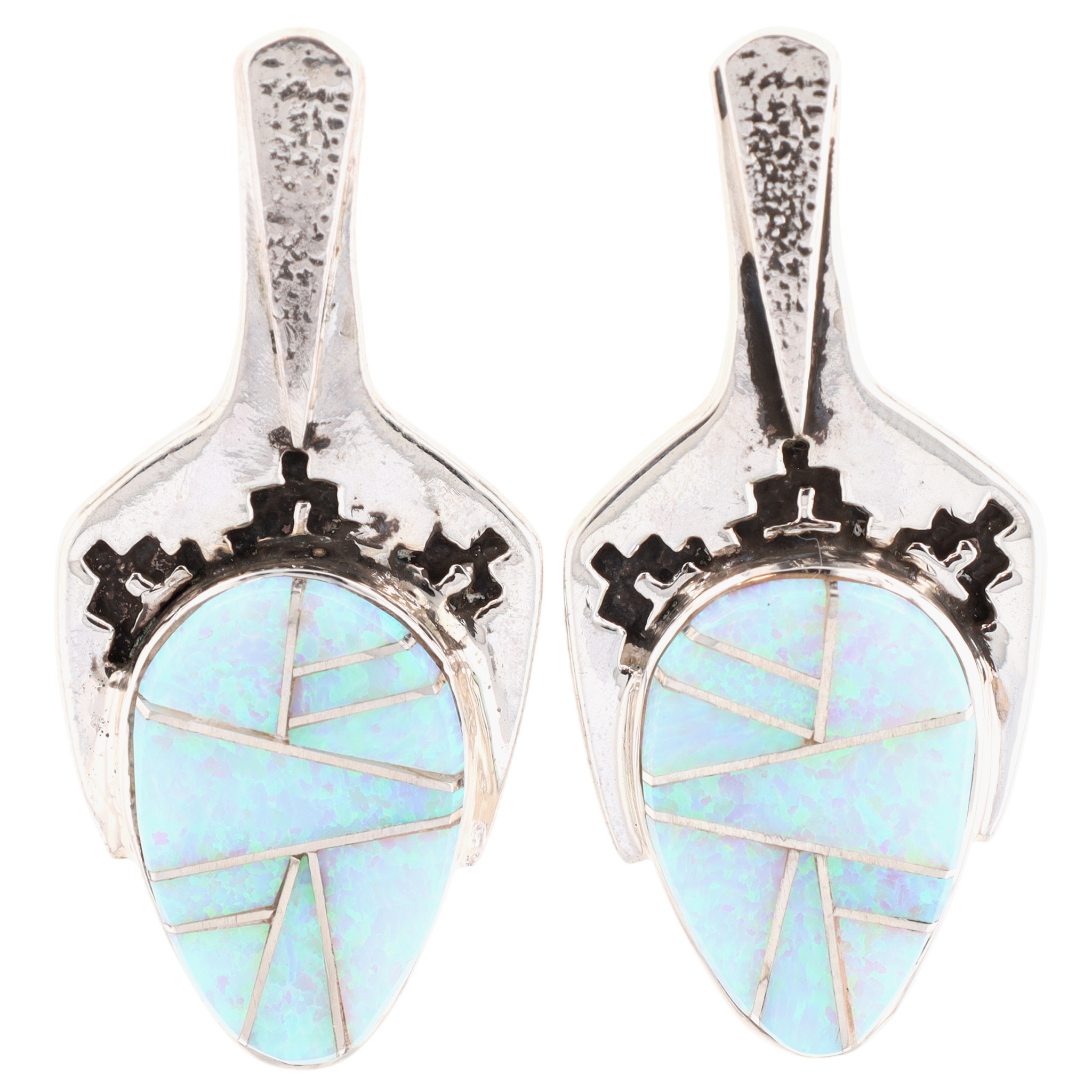 Calvin Begay Navajo Sterling Opal Inlay Stud Earrings