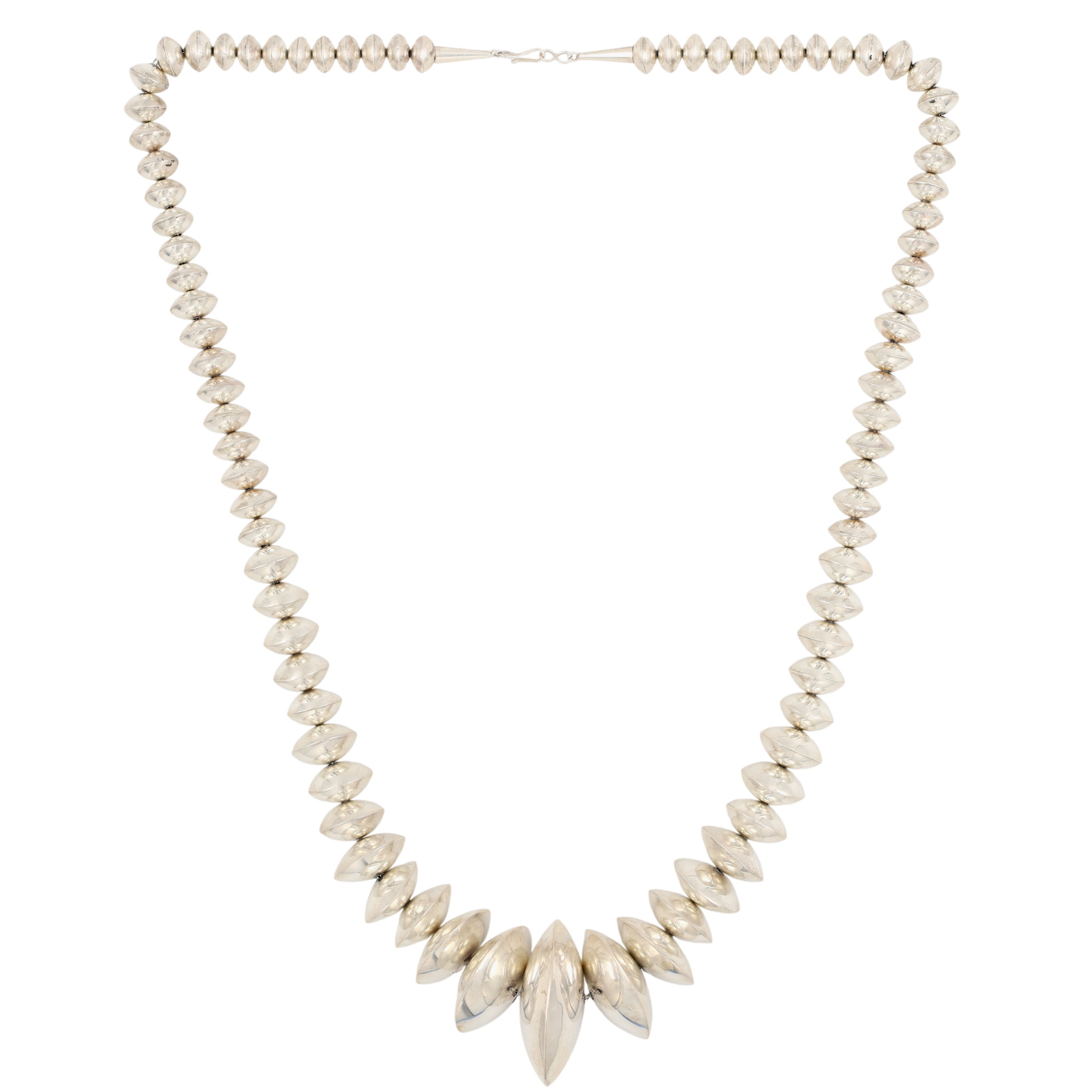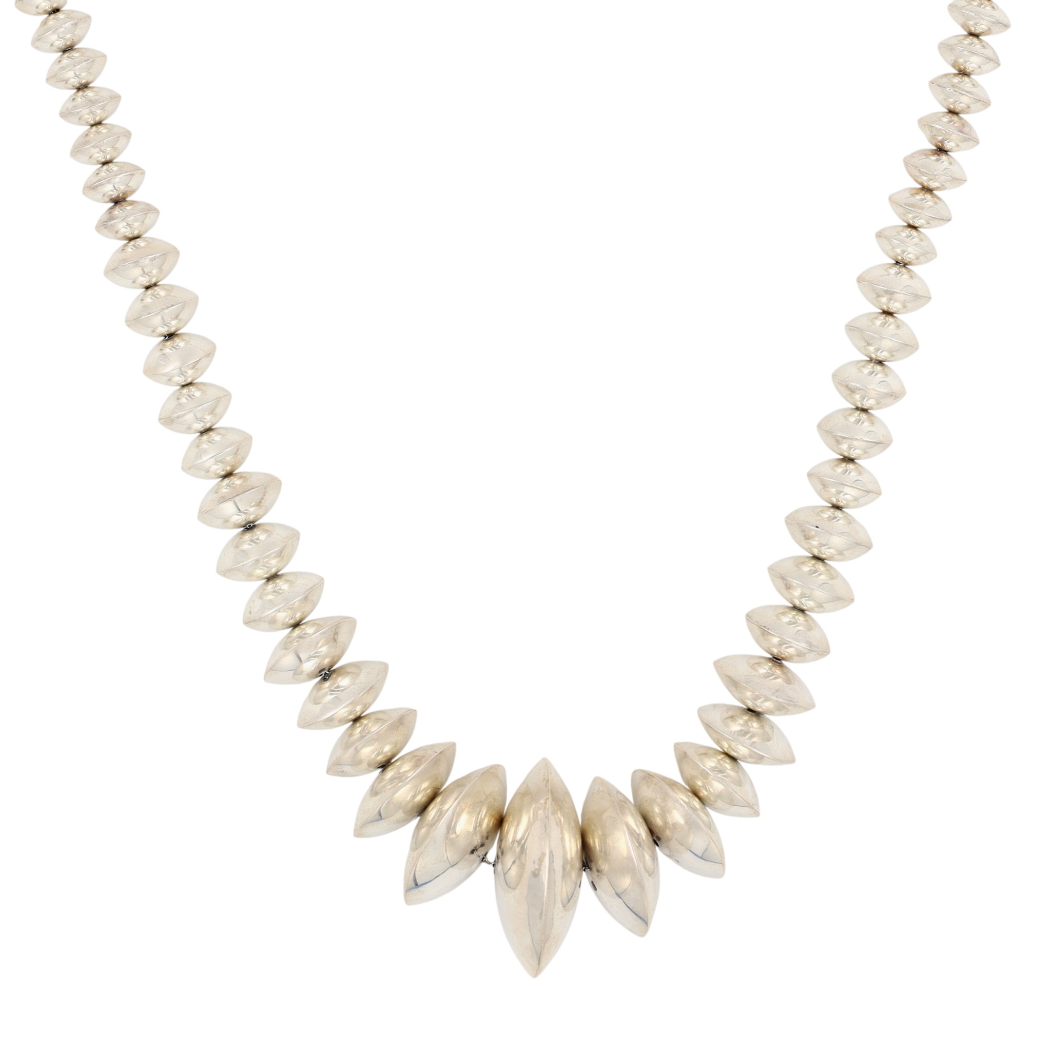 Fred Maloney Navajo Graduated Plain Sterling Silver Necklace 118g