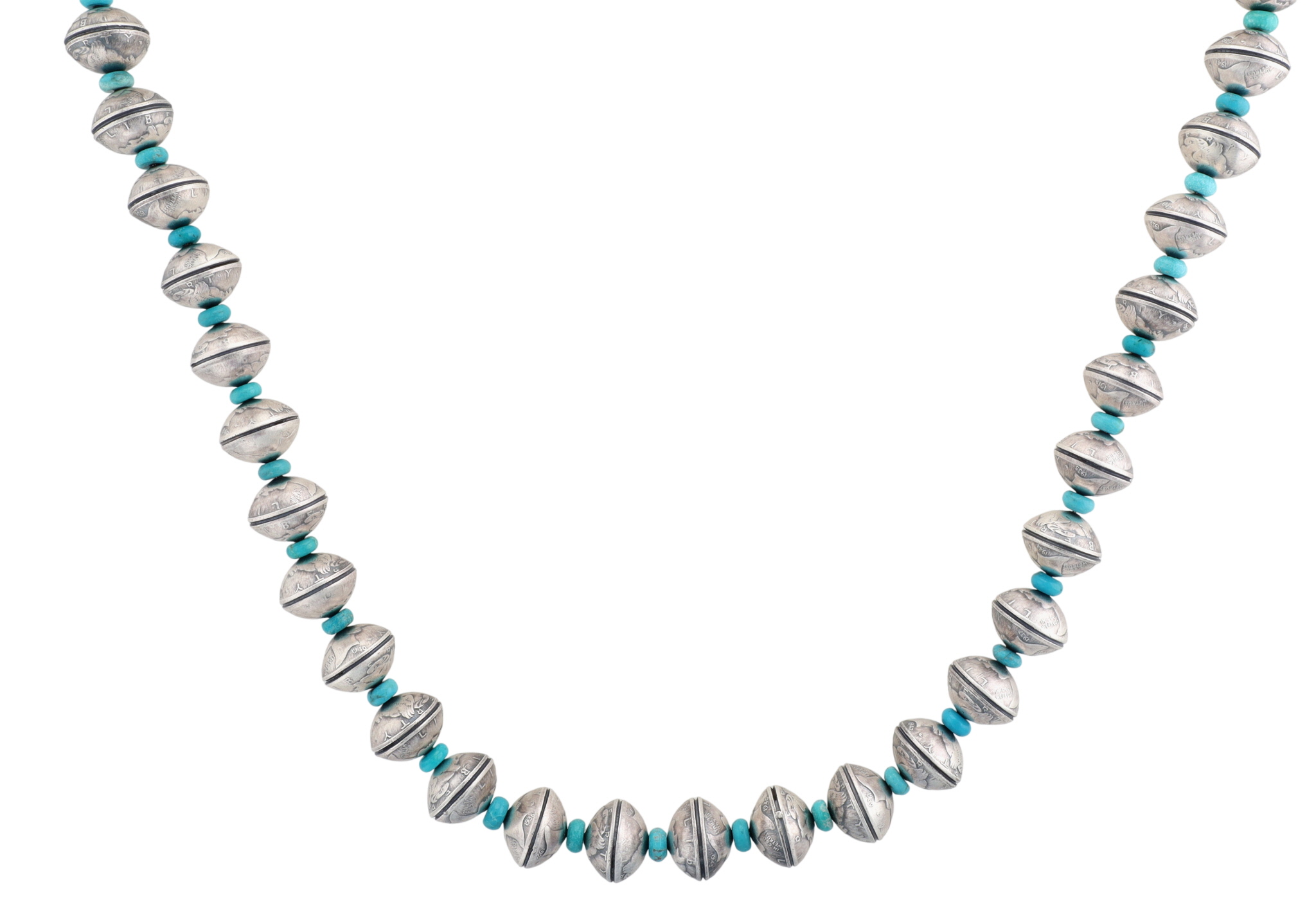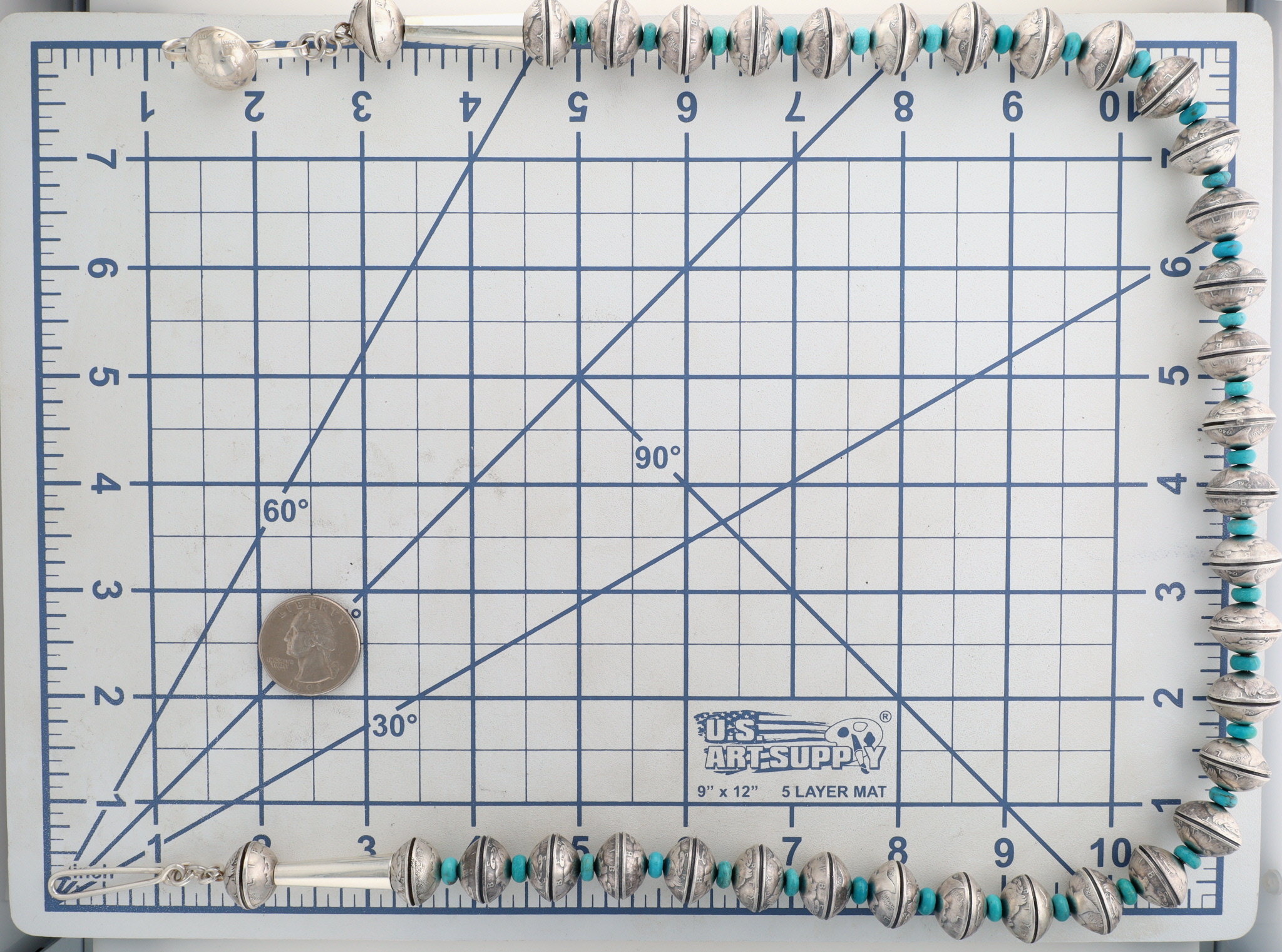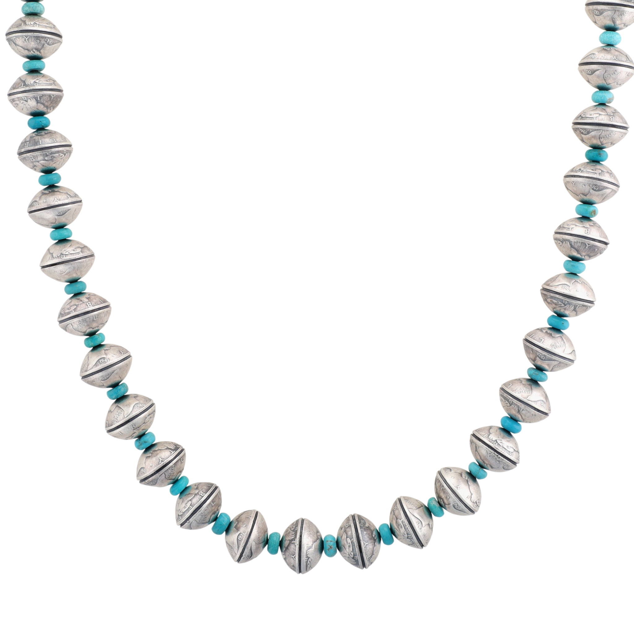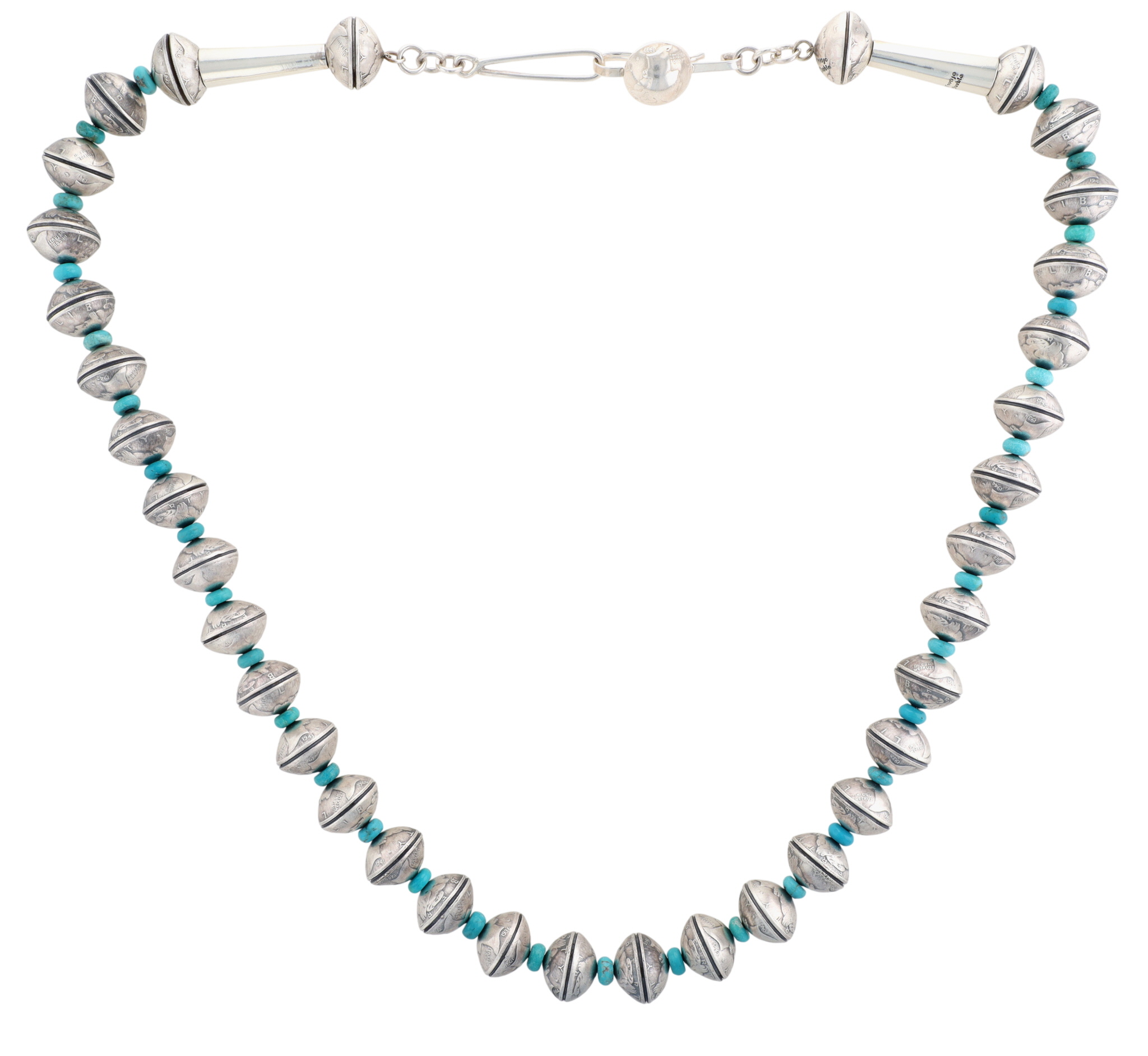 James McCabe Navajo Sterling LIBERTY Dime Turquoise Necklace 188.5g