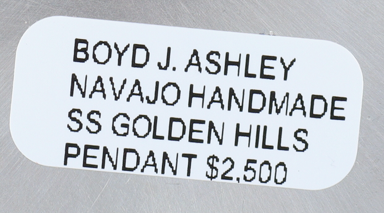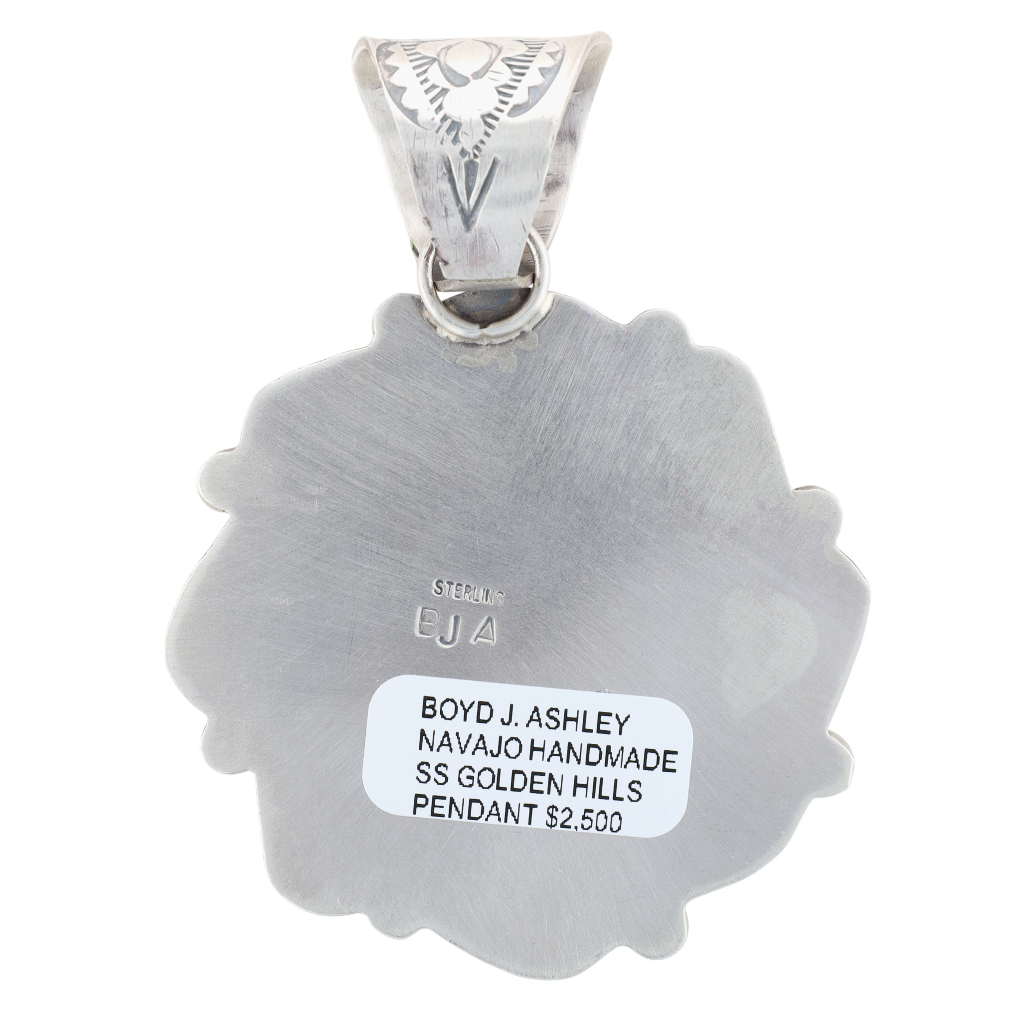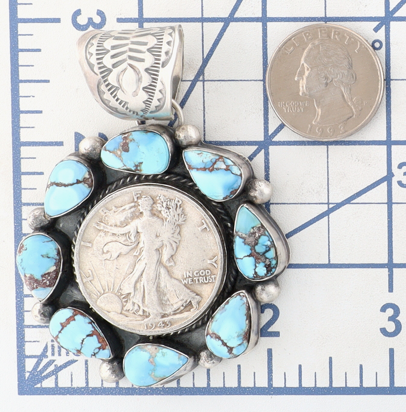 Boyd J. Ashley Navajo Sterling Golden Hills Turquoise Walking Liberty Half Dollar Pendant