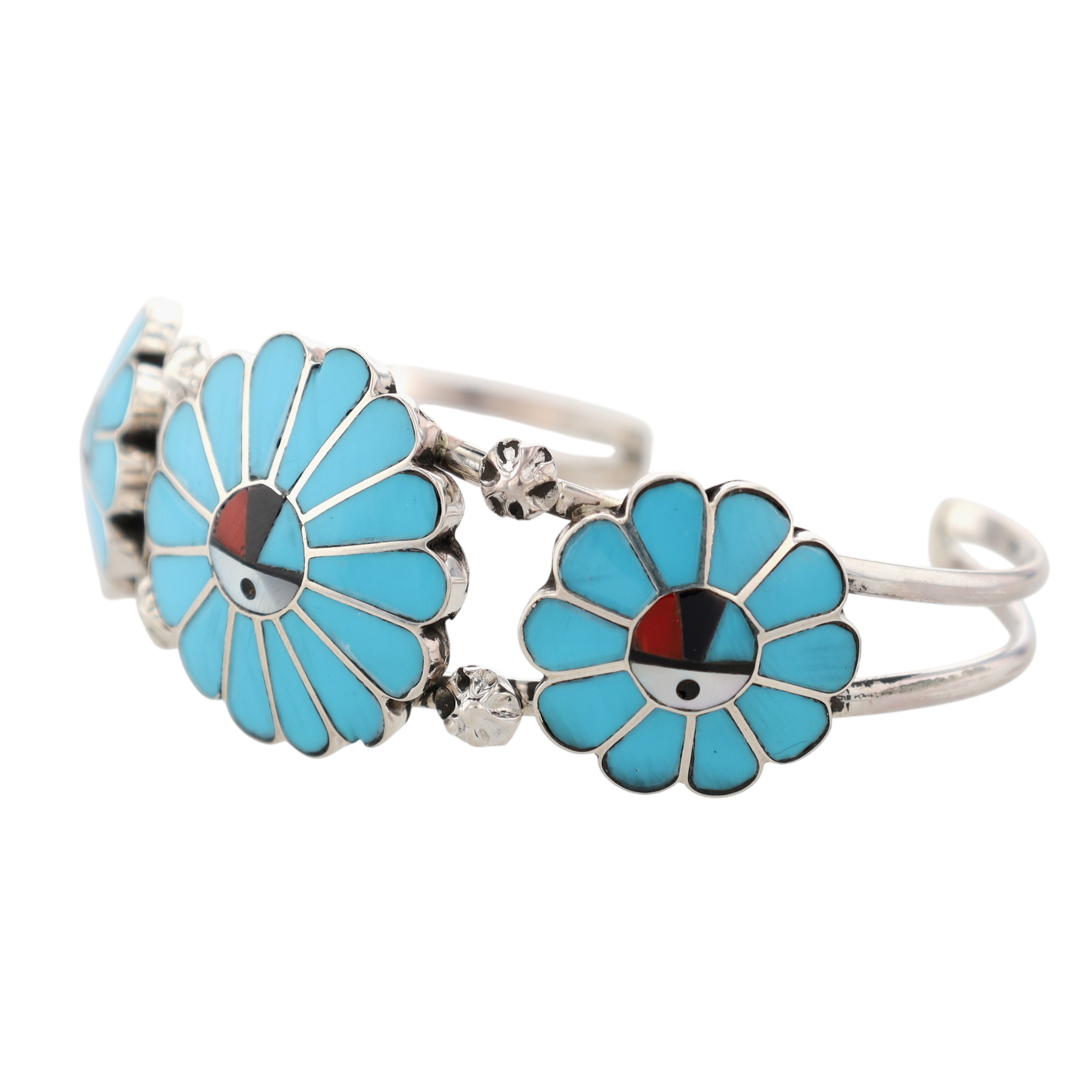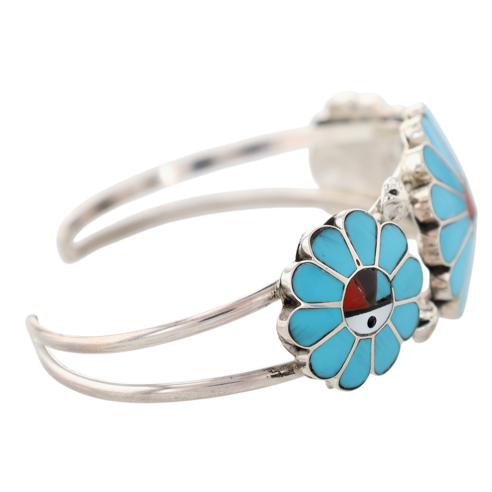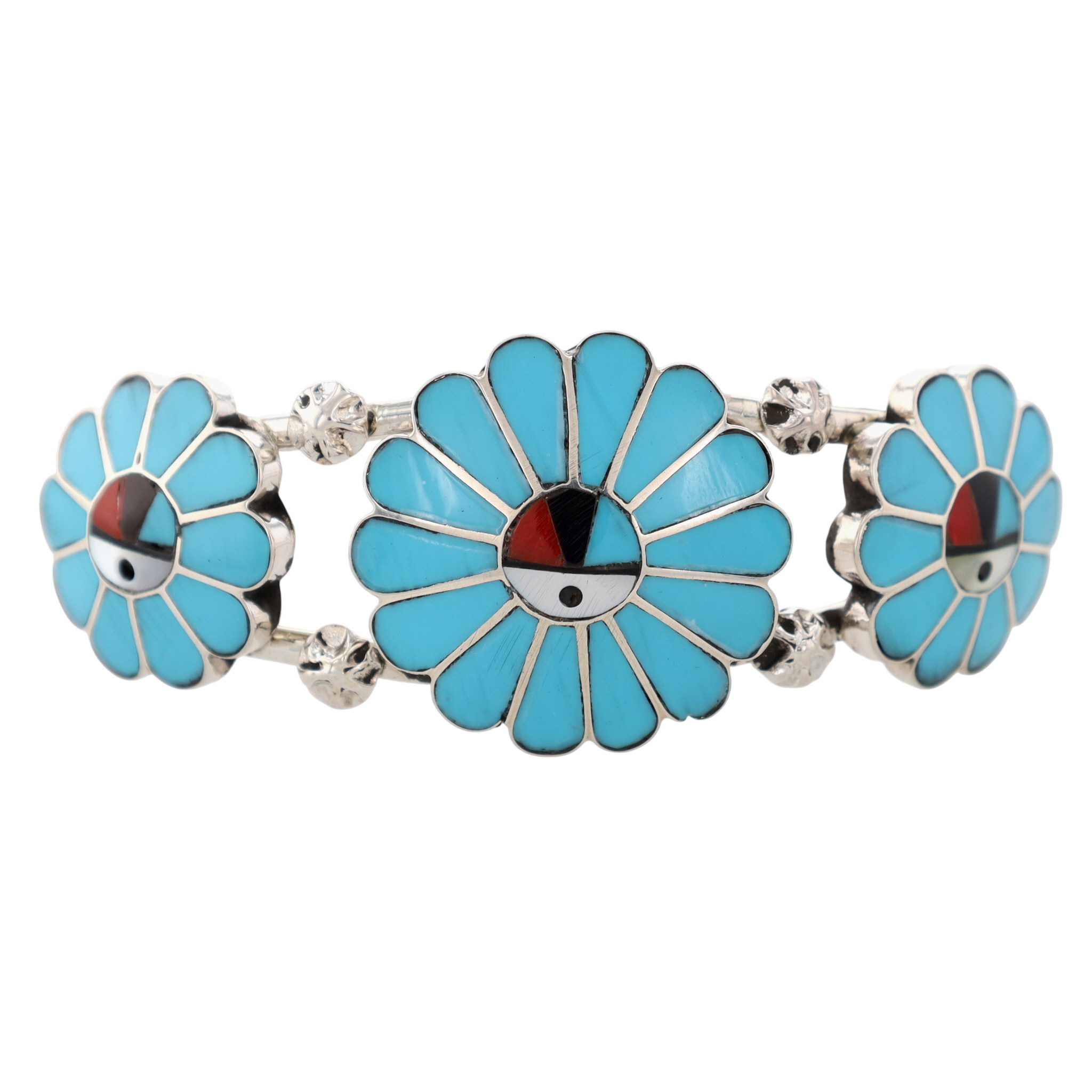 Burdian Soseeah Zuni Sterling Multi-Stone Sunface Inlay Cuff Bracelet 17g