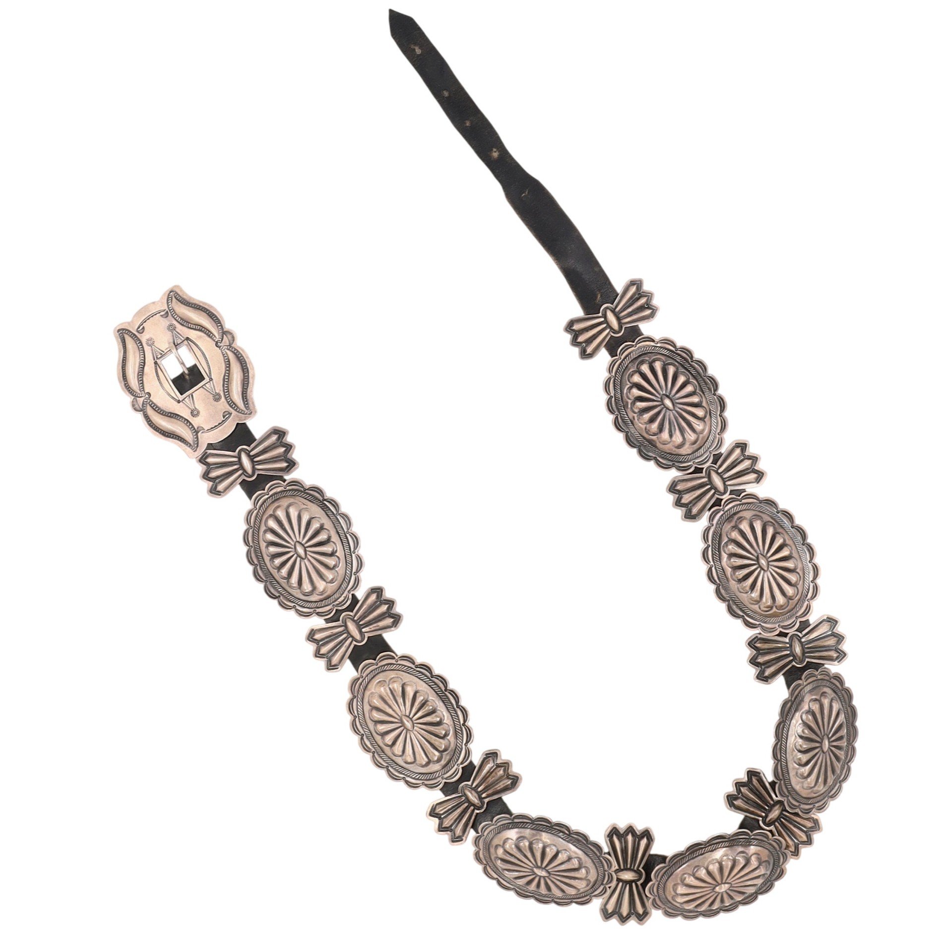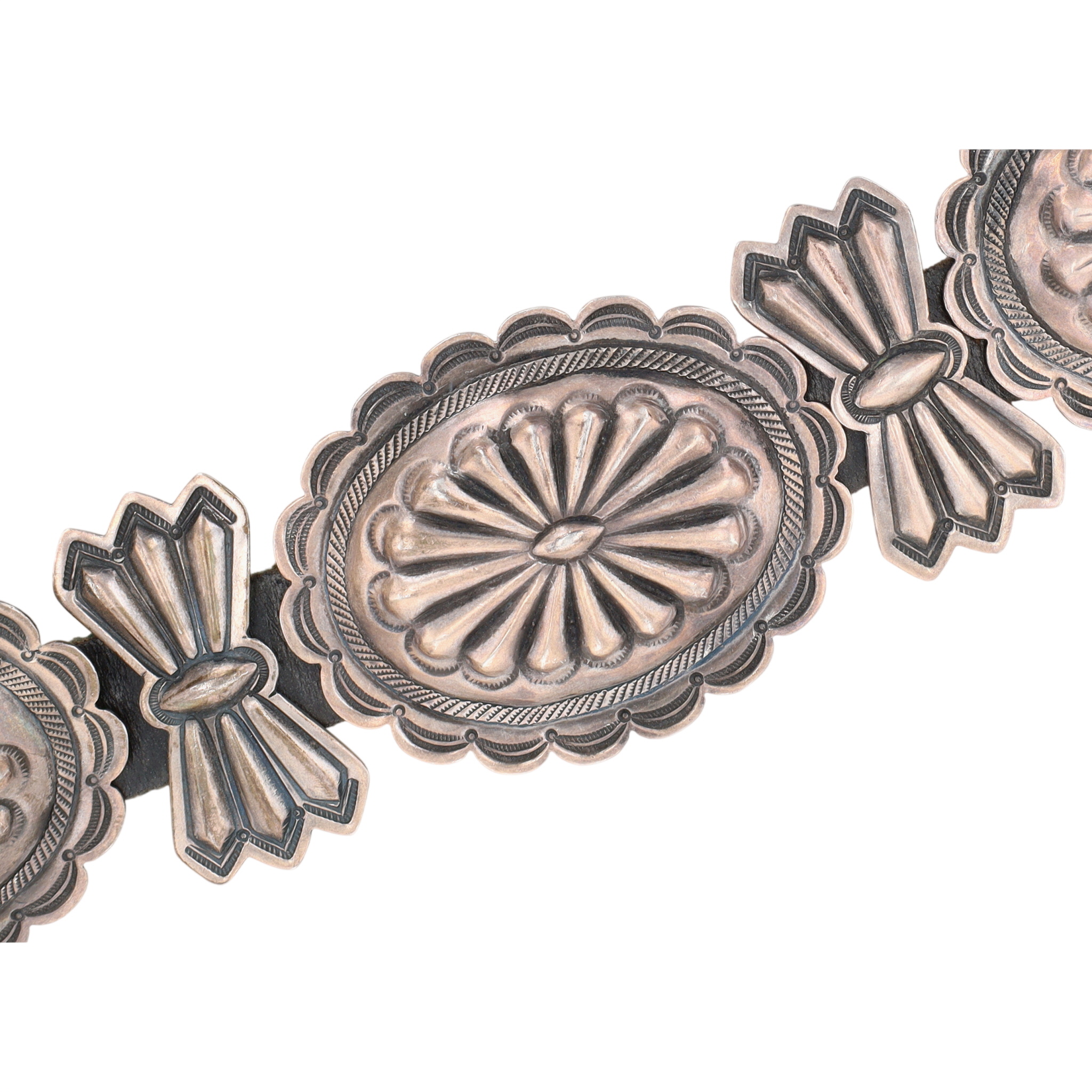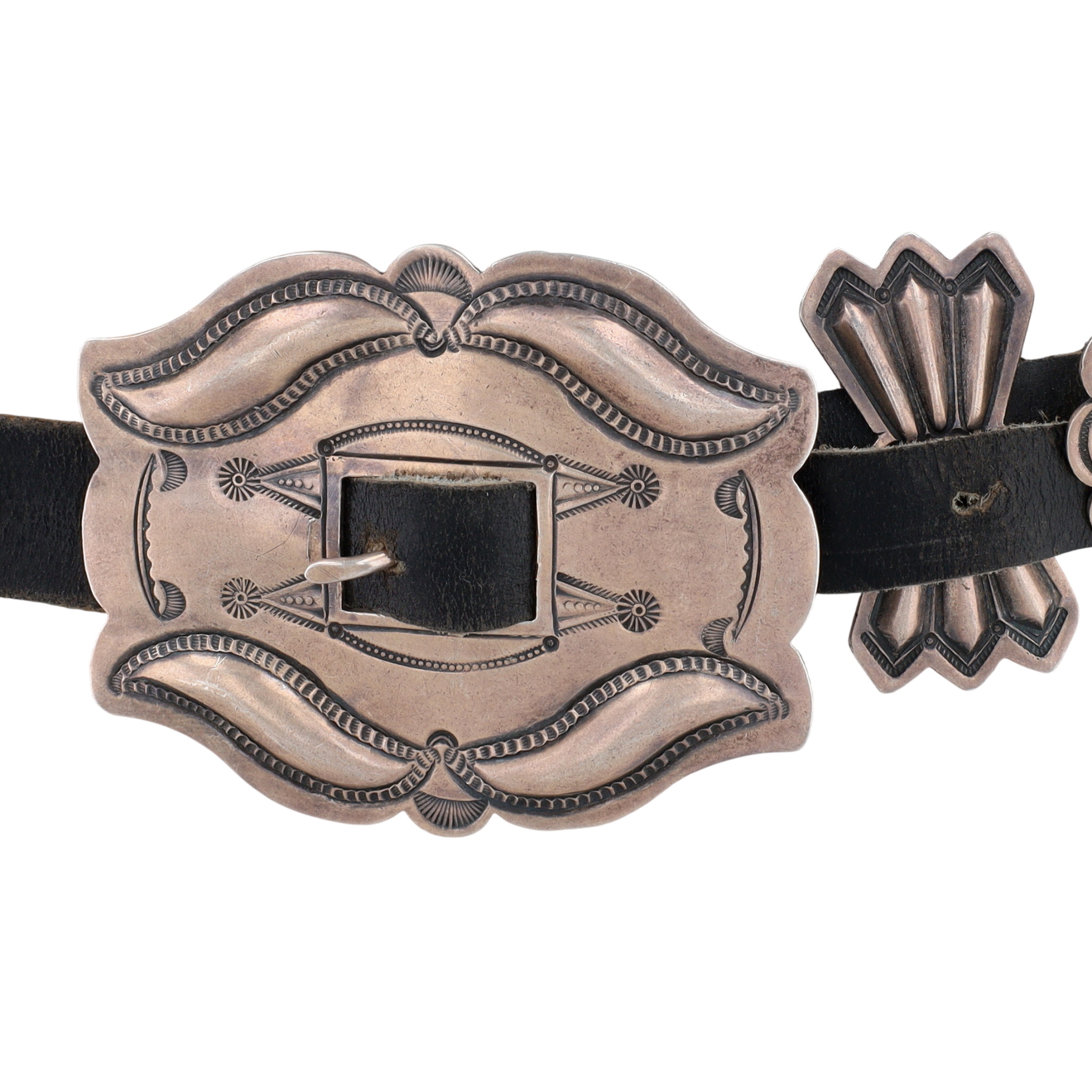 Presented in partnership with the historic Richardson’s Trading Post, a cornerstone of Native American jewelry since 1913. Selected from their archives of rare vintage and contemporary pieces. Vintage Navajo Sterling Concho Belt 337g