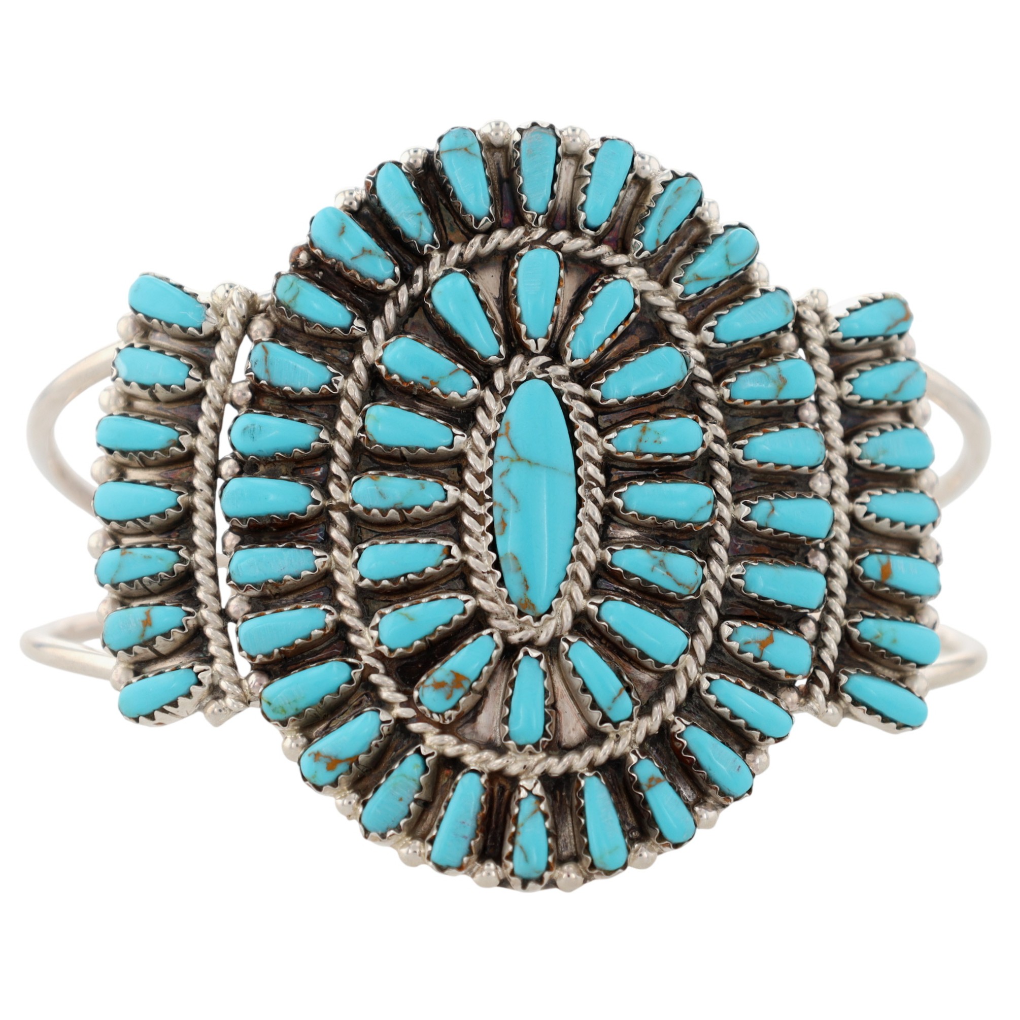 Myra Benally Navajo Sterling Turquoise Cluster Cuff Bracelet 29.5g