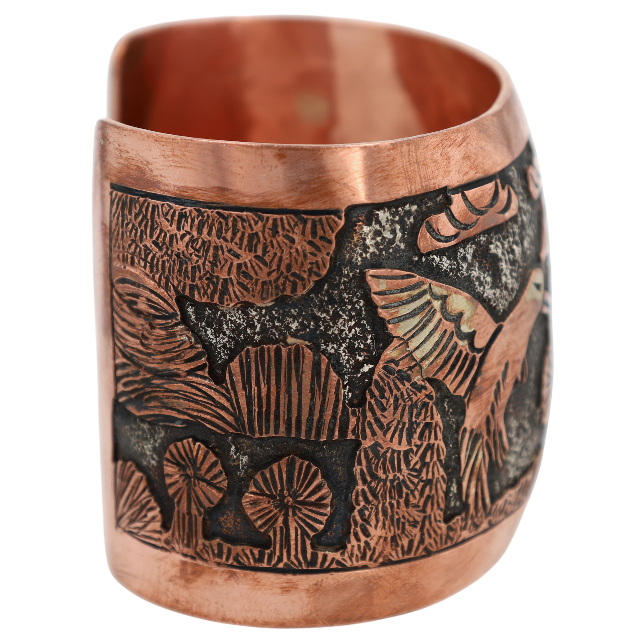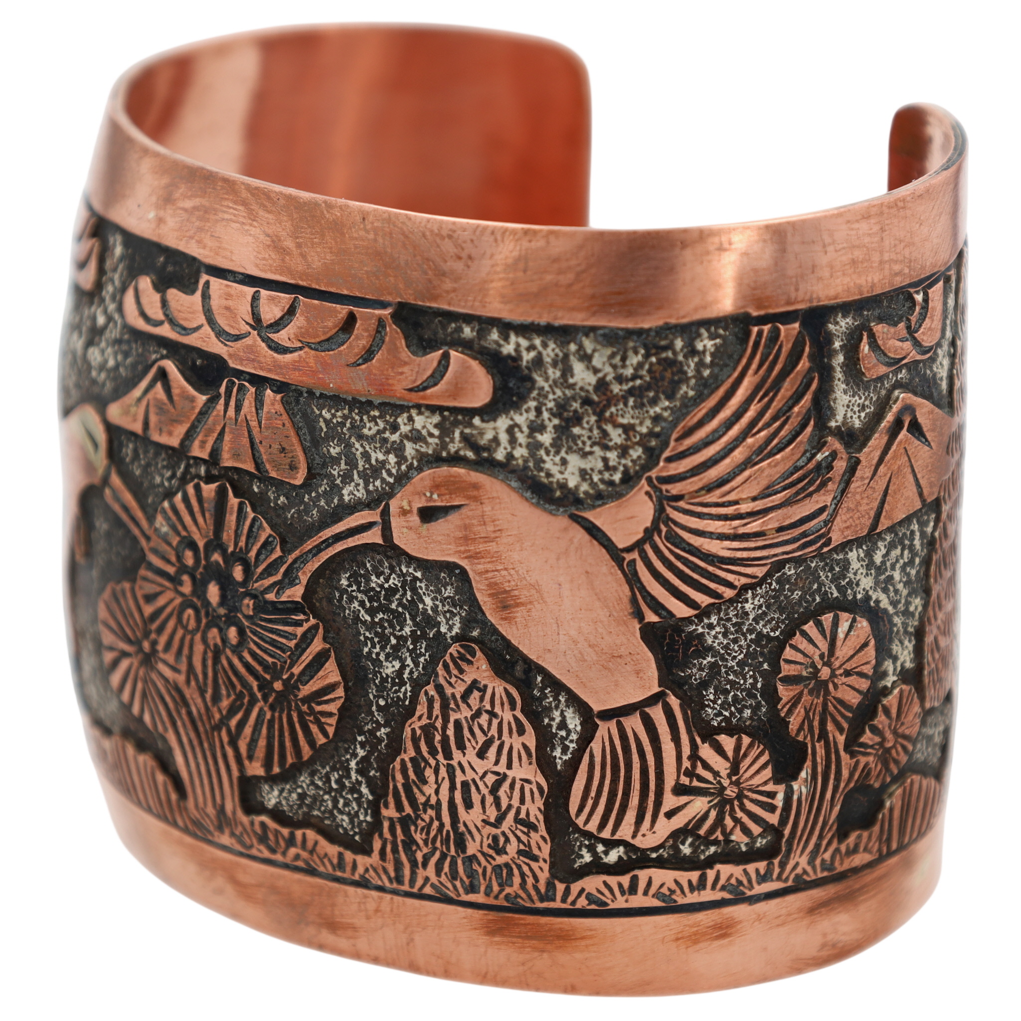 Elaine Becenti Navajo Plain Copper Hummingbird Storyteller Cuff Bracelet 78g
