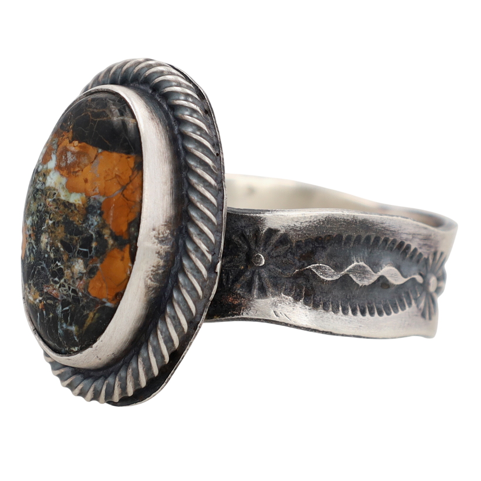 Bennie Ramone Navajo Sterling Bumblebee Jasper Adjustable Ring Sz. 9.5, 10g