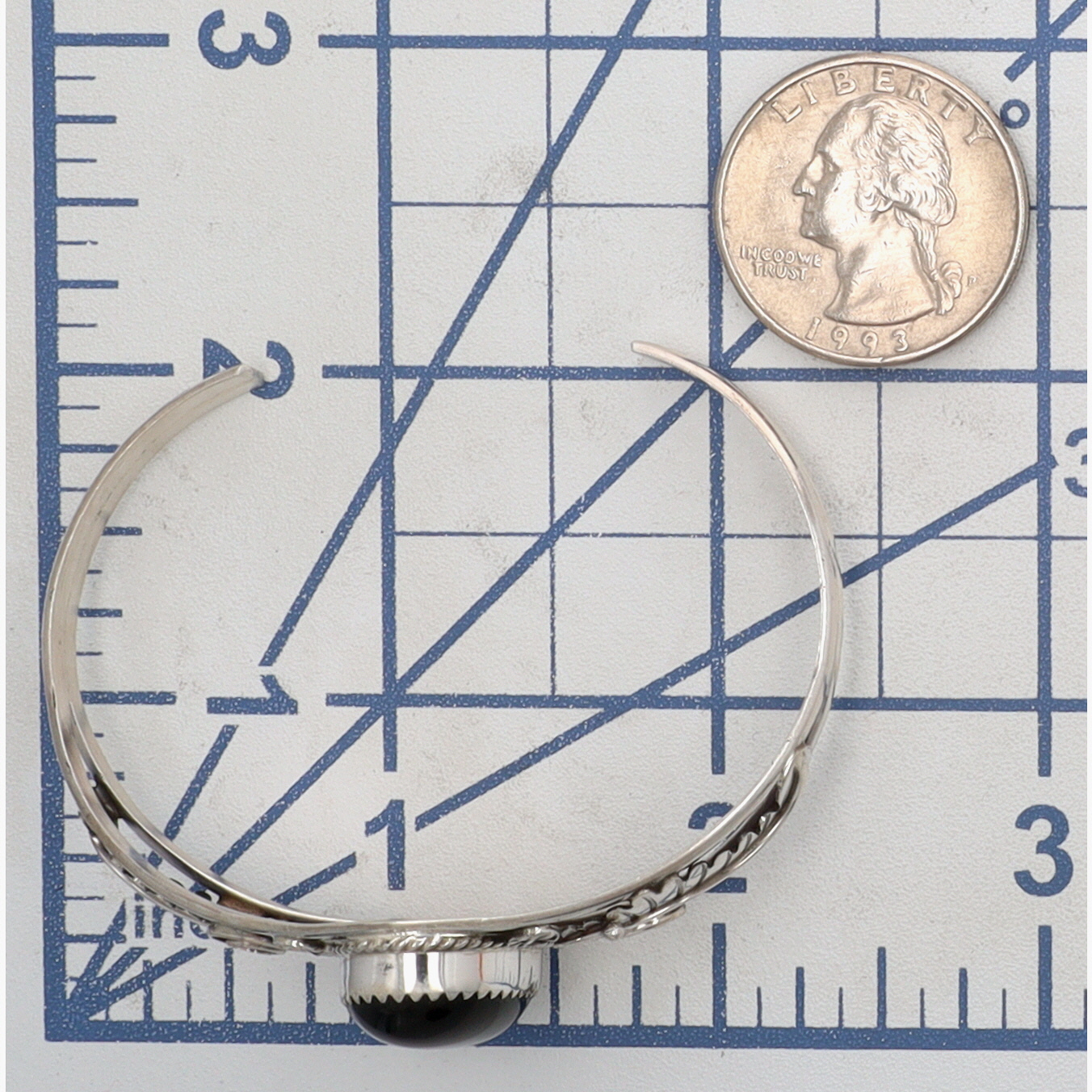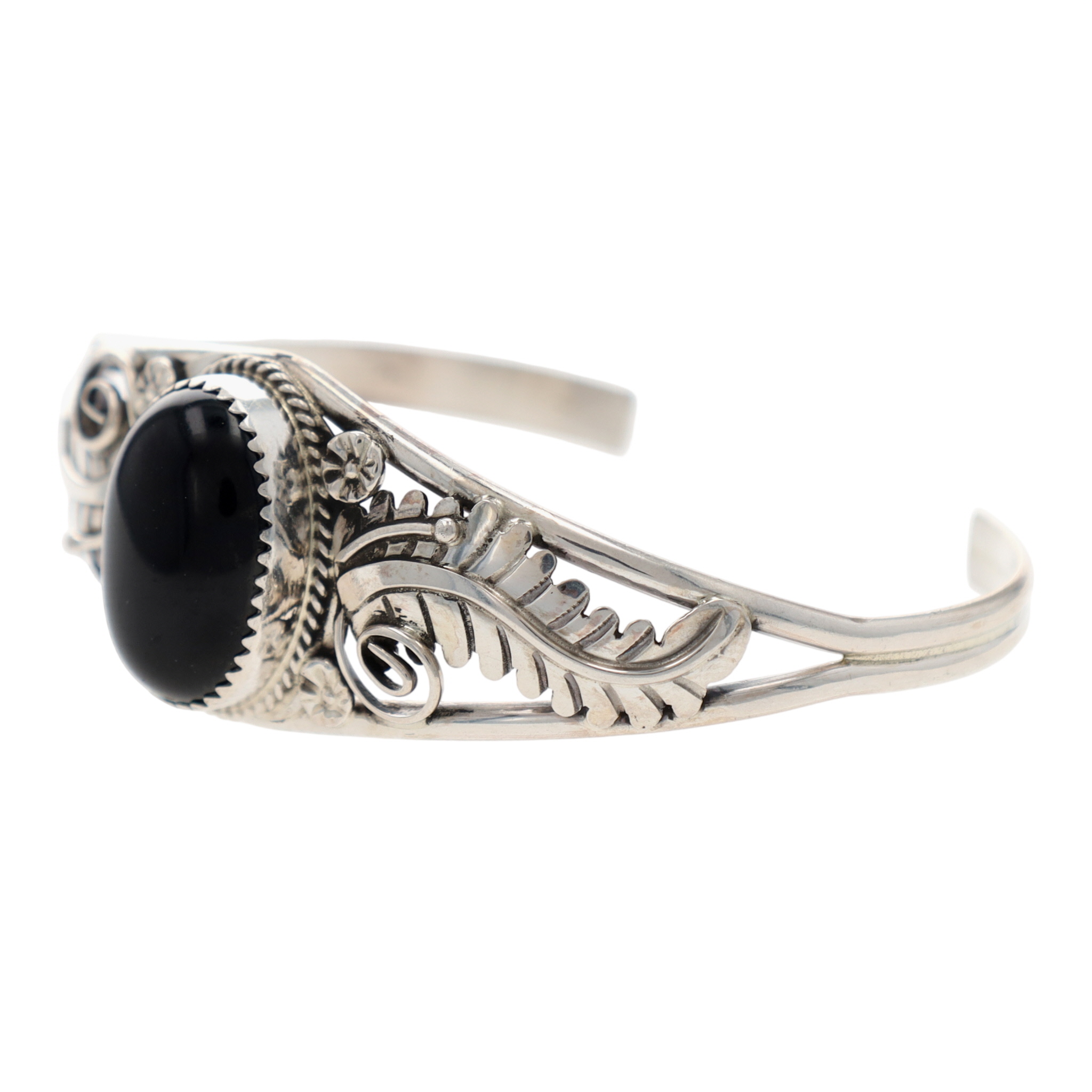 Phillip Yazzie Navajo Sterling Onyx Cuff Bracelet 11.5g