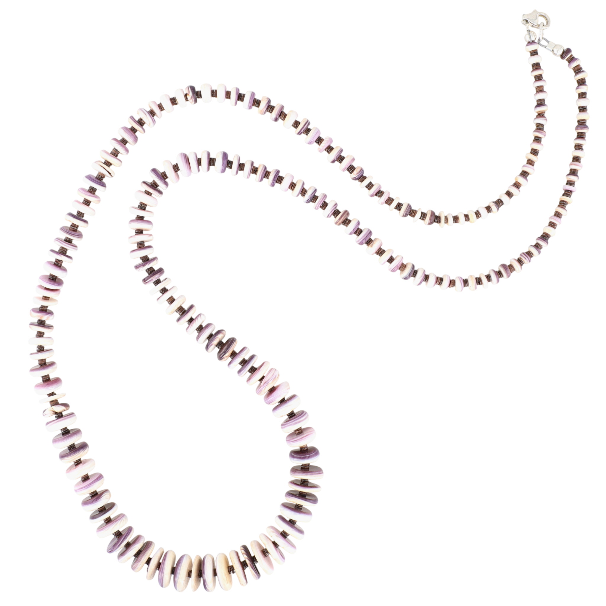 Native American Sterling Wampum Shell Graduated Necklace