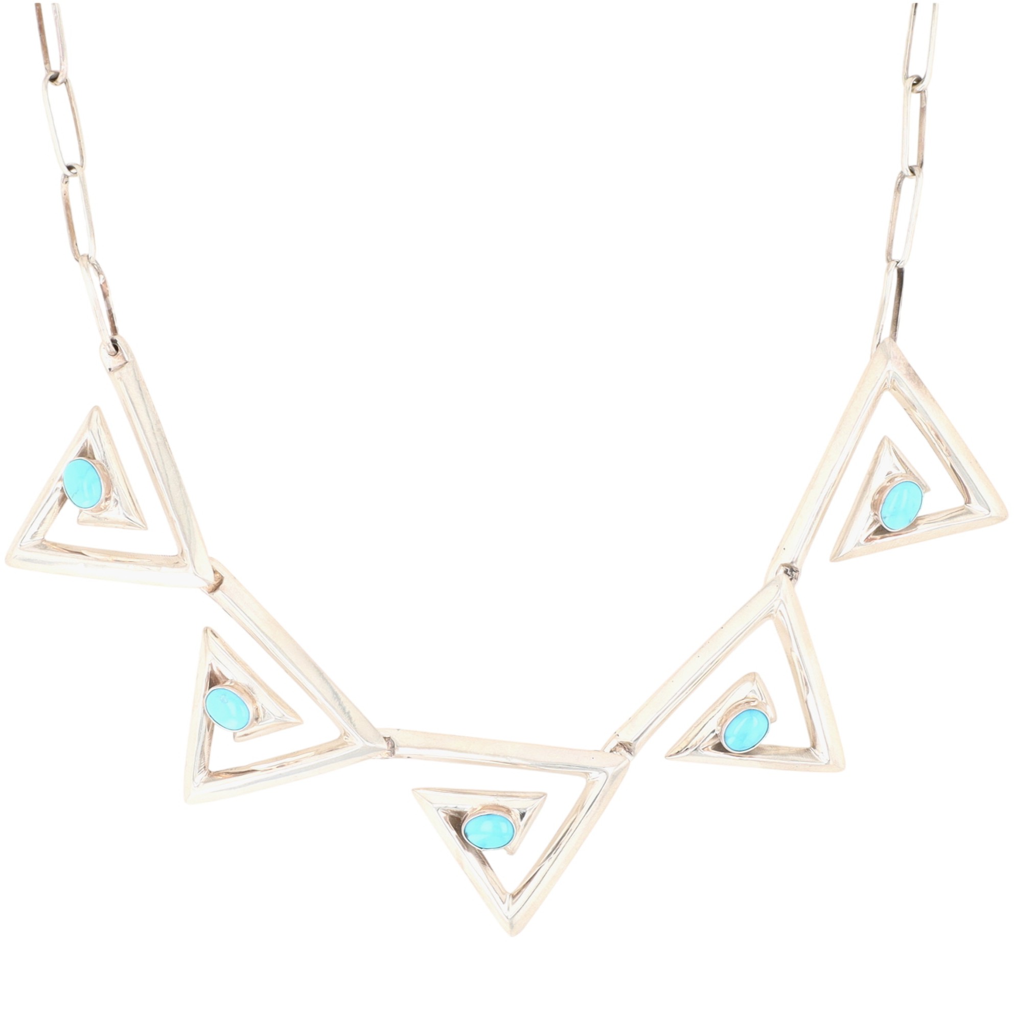 Isabelle Kee Navajo Sterling Turquoise Geometric Necklace 46g