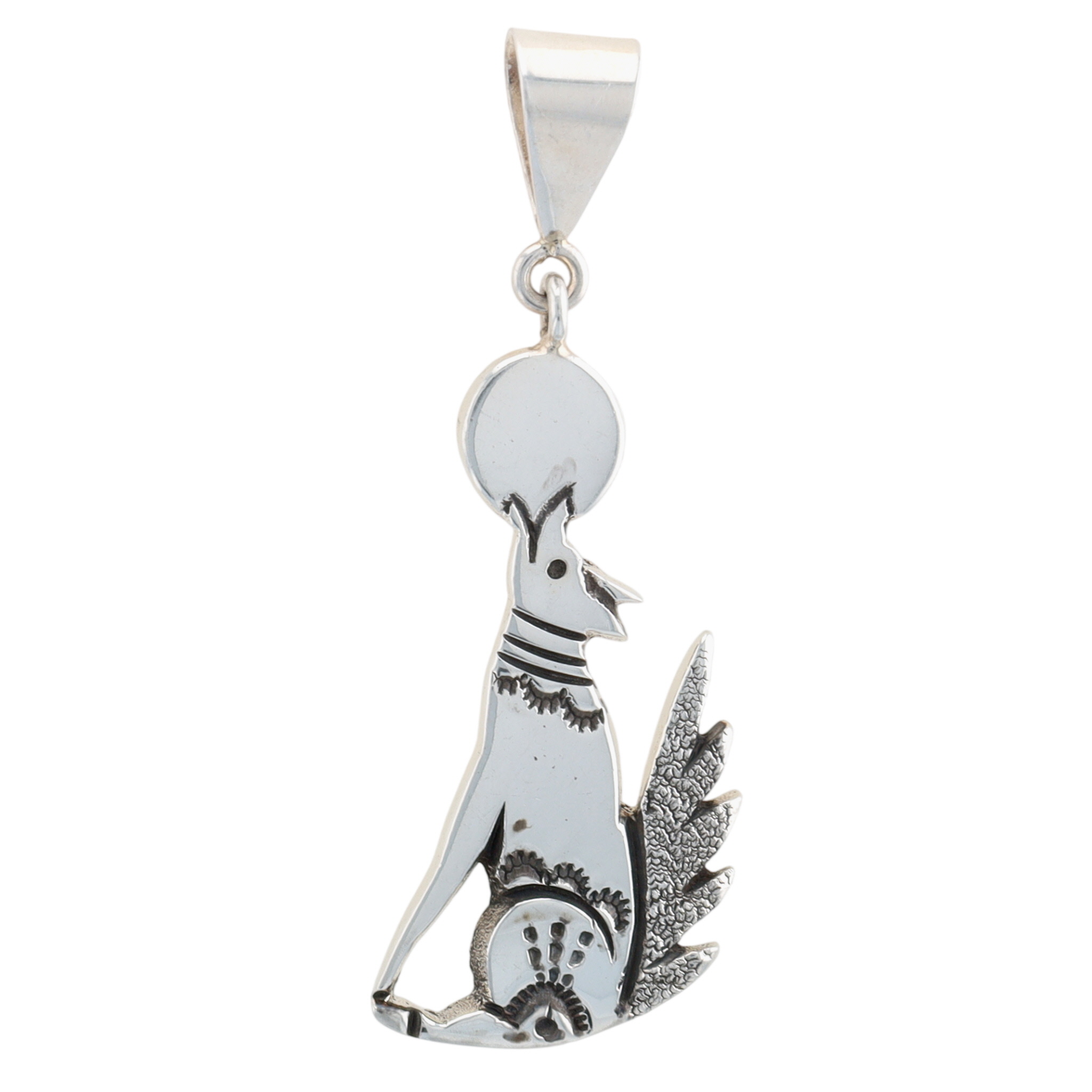 Norman Woody Navajo Plain Sterling Silver Howling Wolf Pendant 12g
