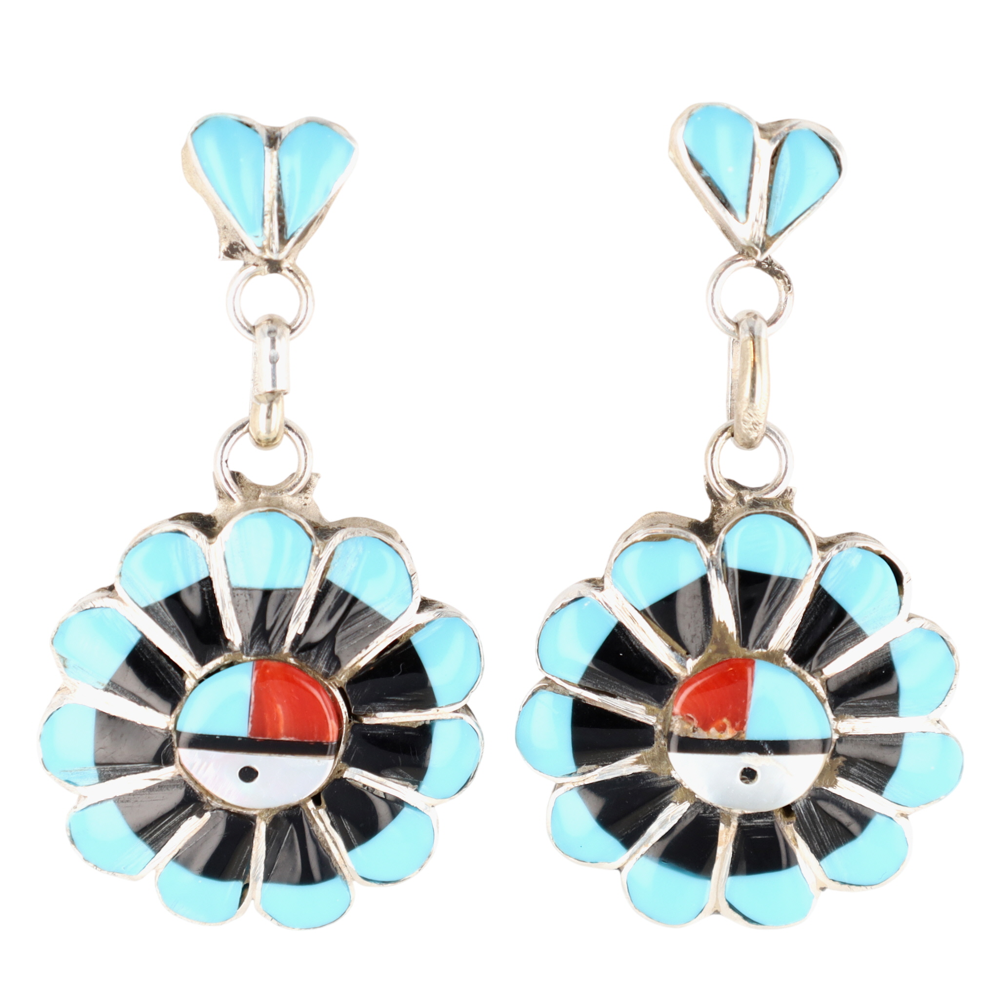 Pauline Lonjose Zuni Sterling Multi-Stone Sunface Inlay Stud Earrings 10g