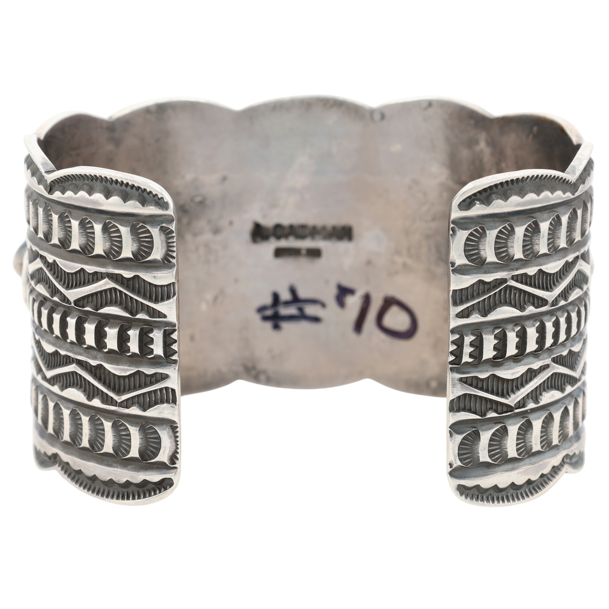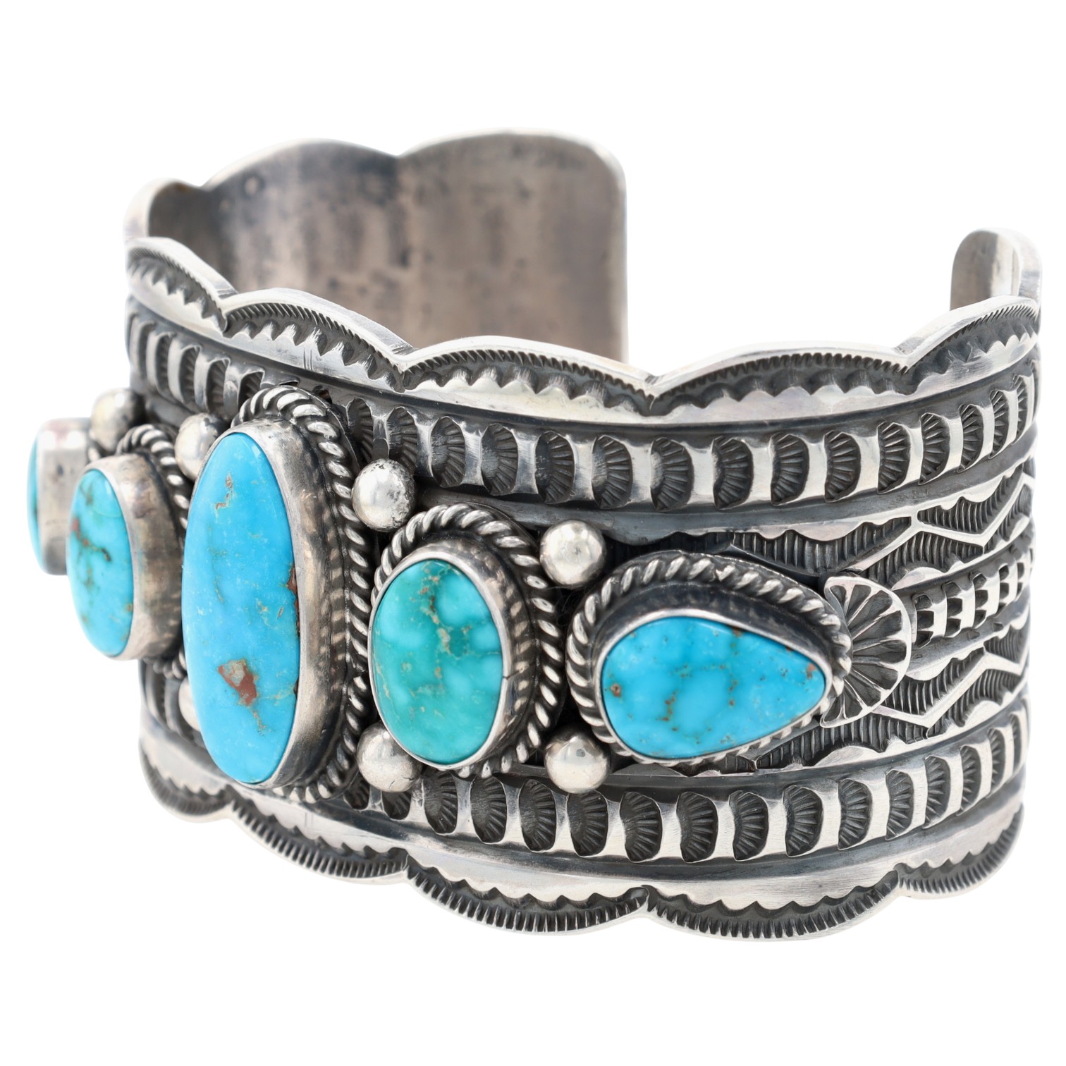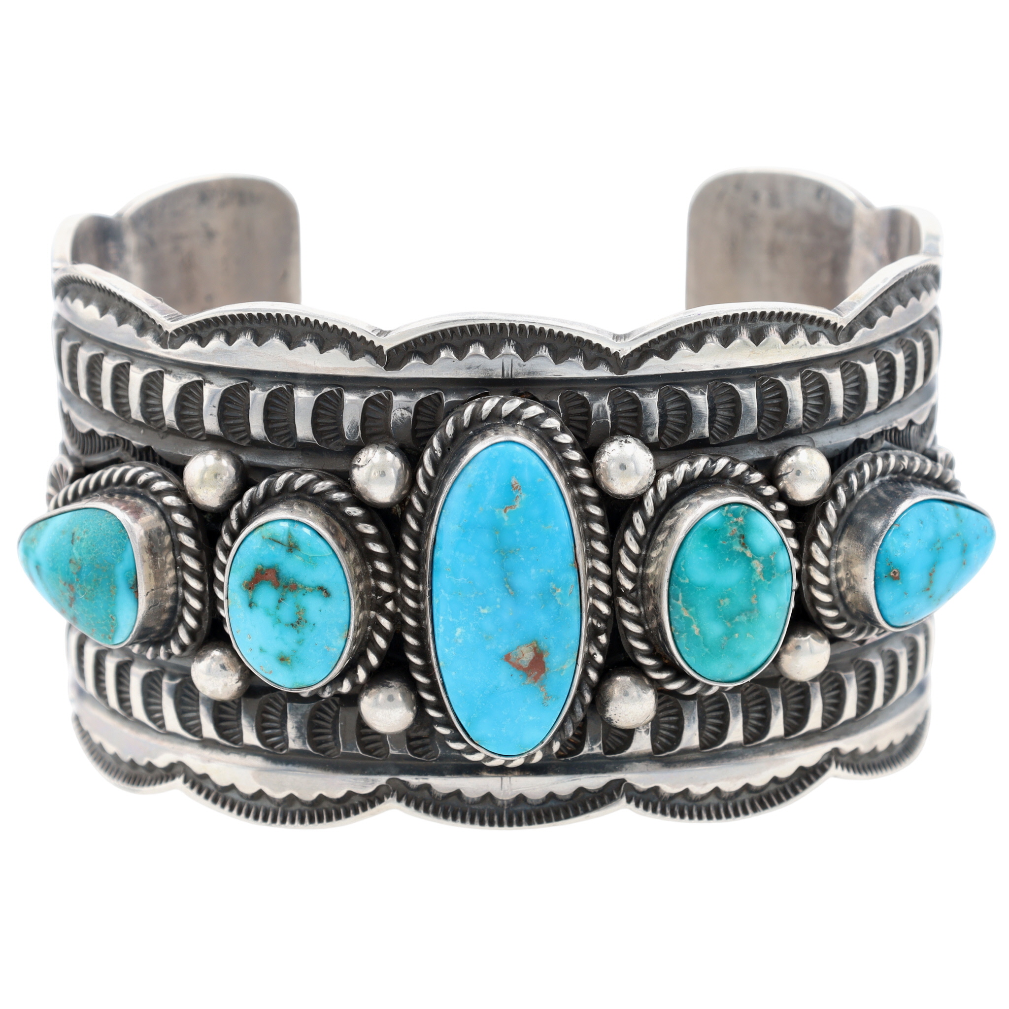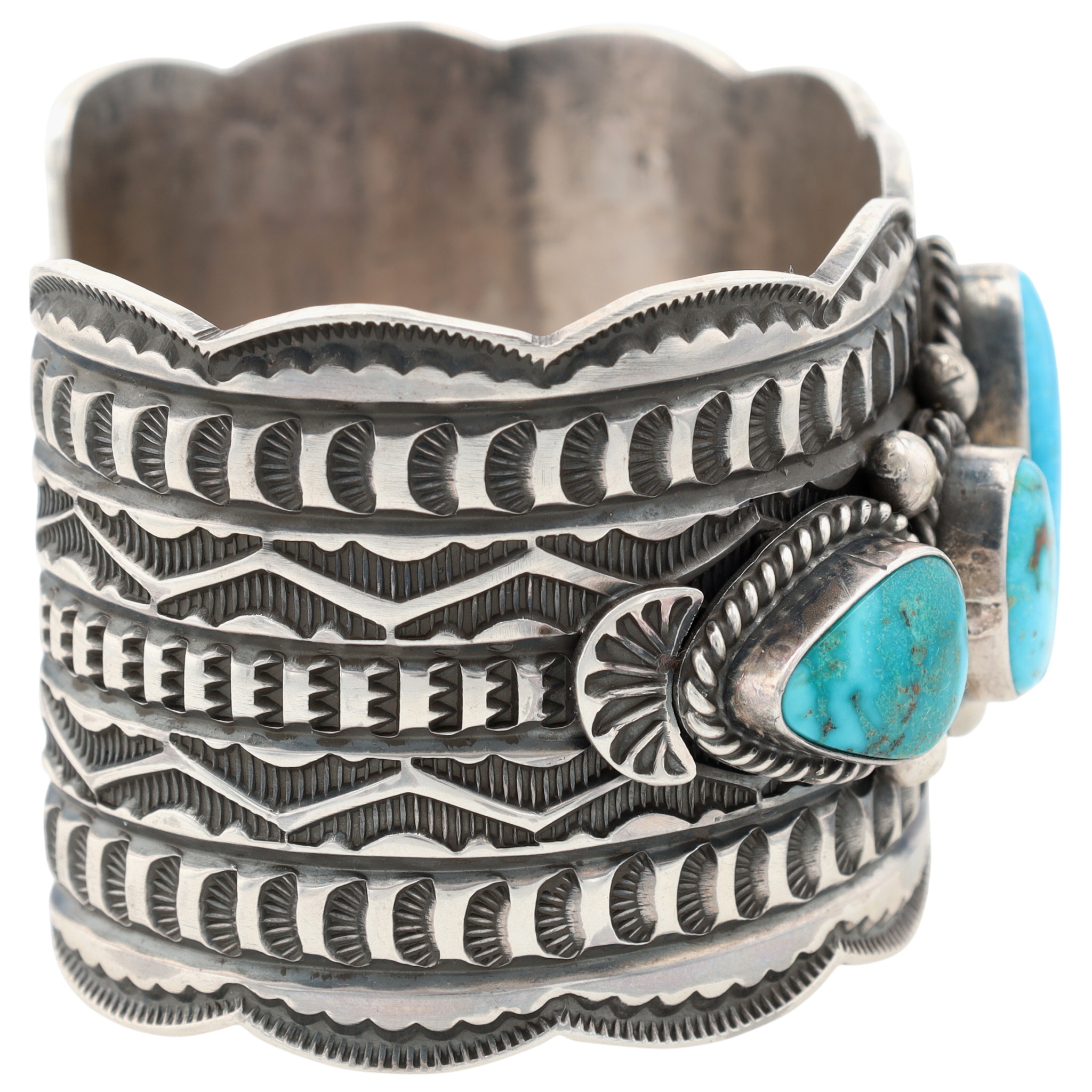Presented in partnership with the historic Richardson’s Trading Post, a cornerstone of Native American jewelry since 1913. Selected from their archives of rare vintage and contemporary pieces. Andy Cadman Navajo Sterling Turquoise Cuff Bracelet 91g
