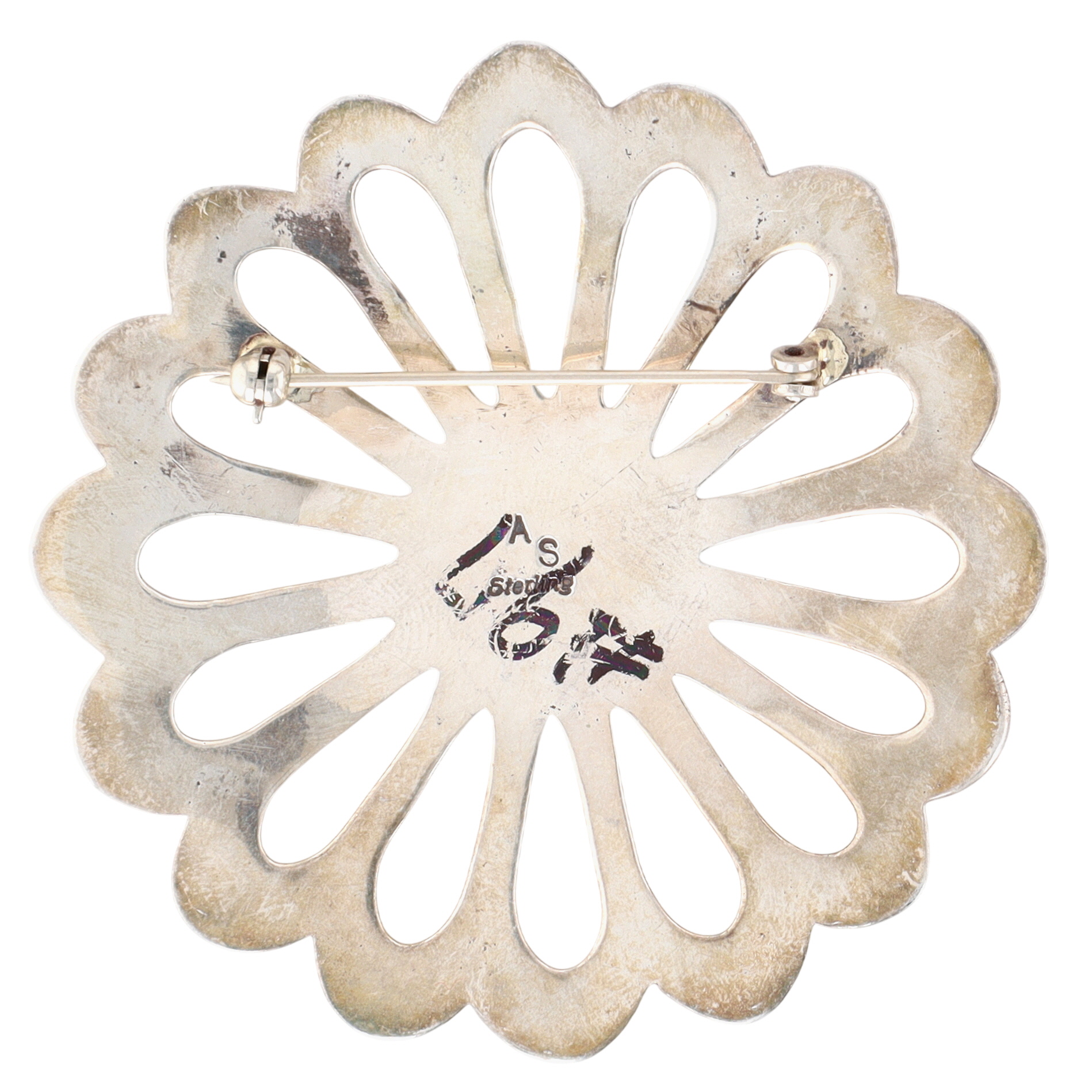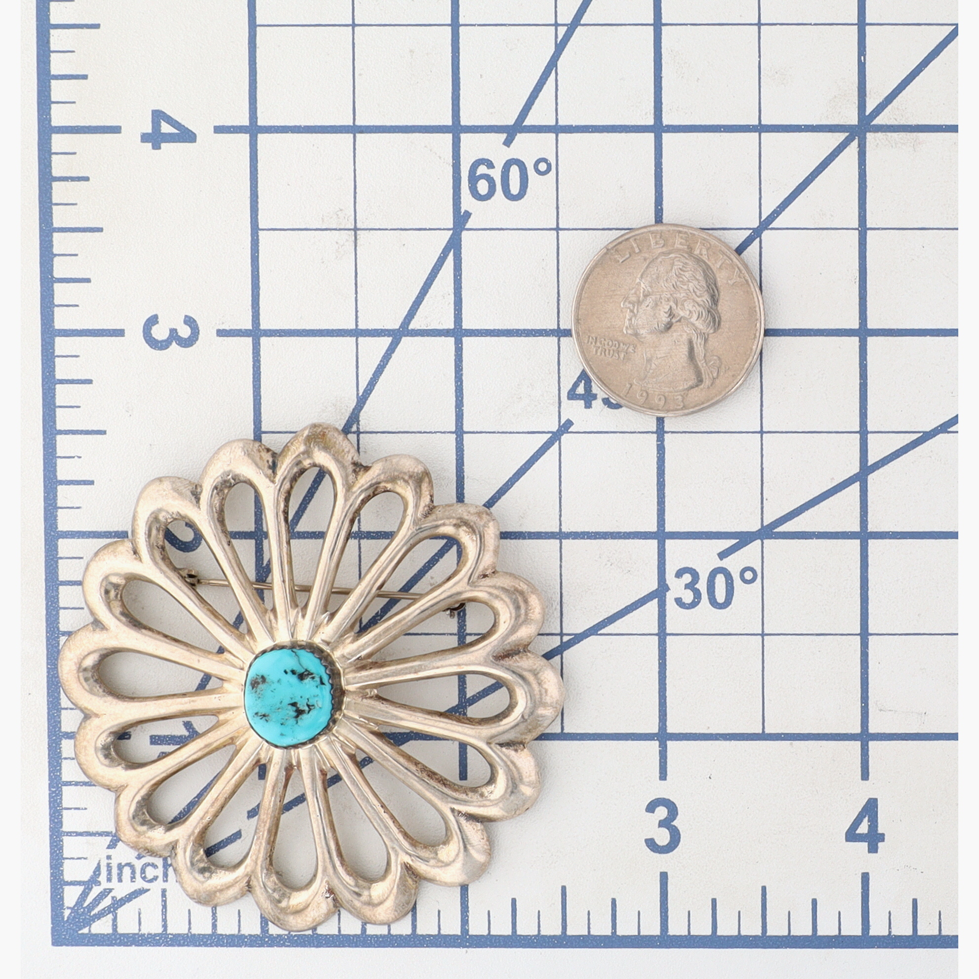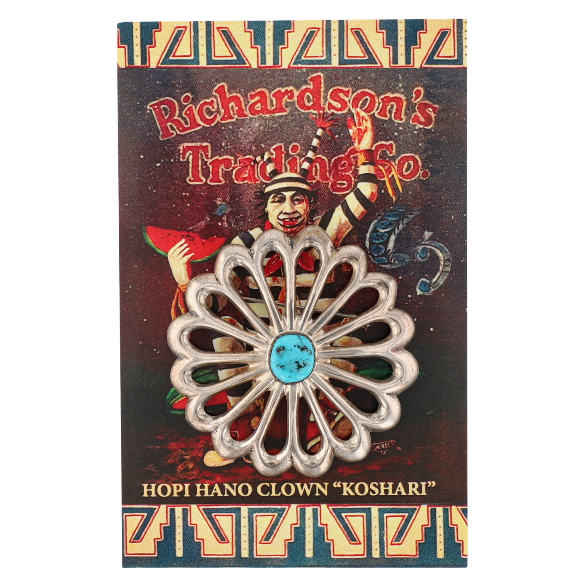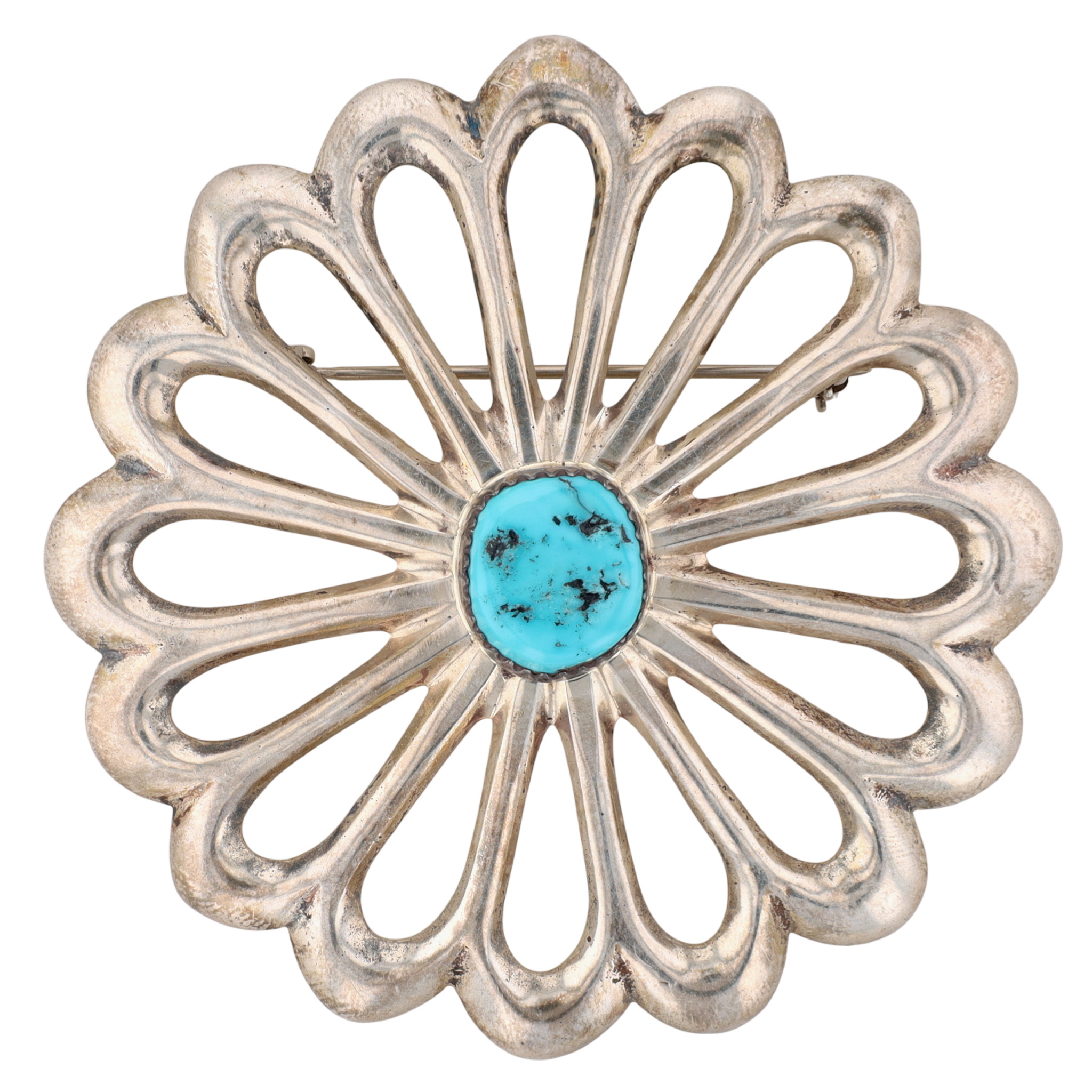 Presented in partnership with the historic Richardson’s Trading Post, a cornerstone of Native American jewelry since 1913. Selected from their archives of rare vintage and contemporary pieces. Signed AS Navajo Sterling Turquoise Flower Brooch 31g