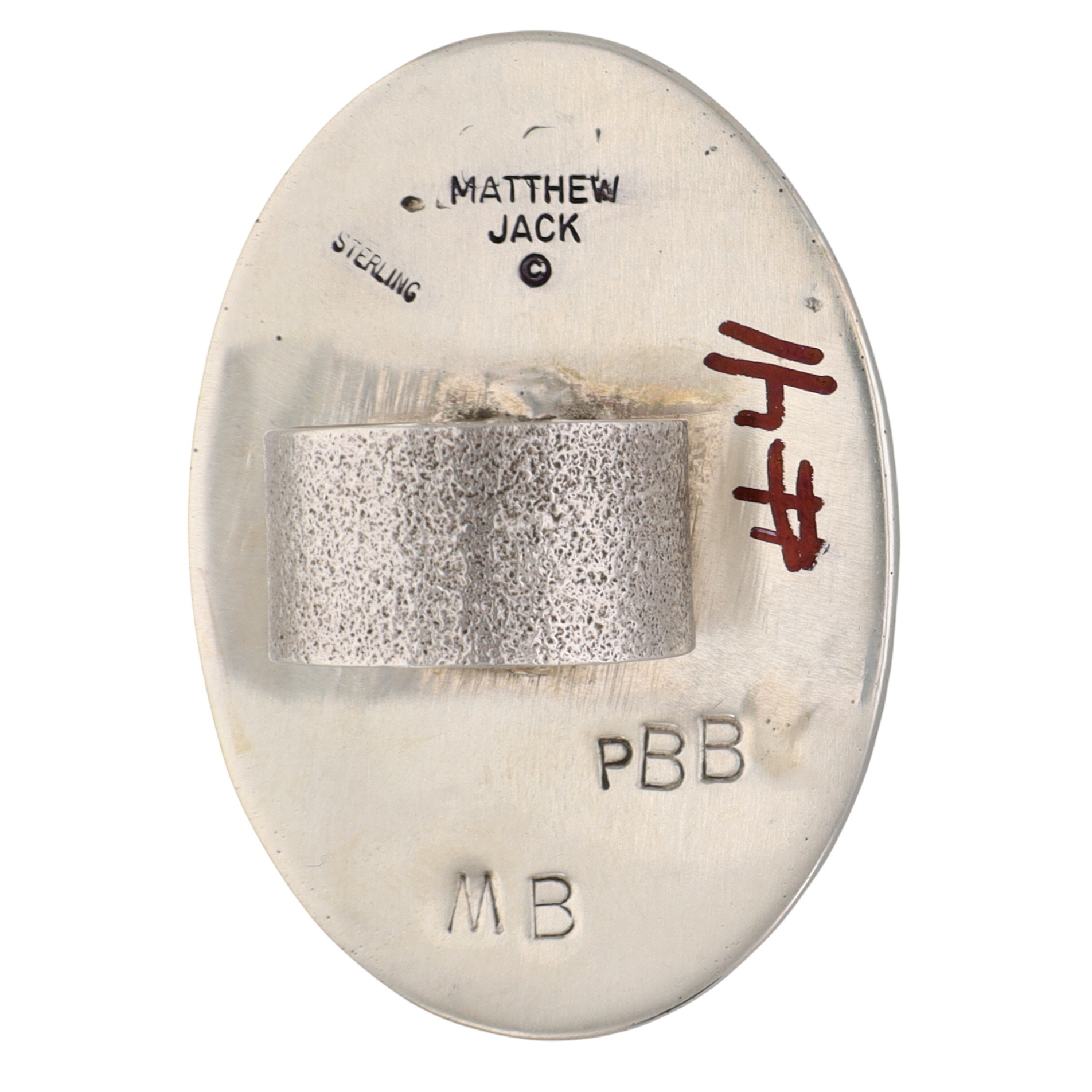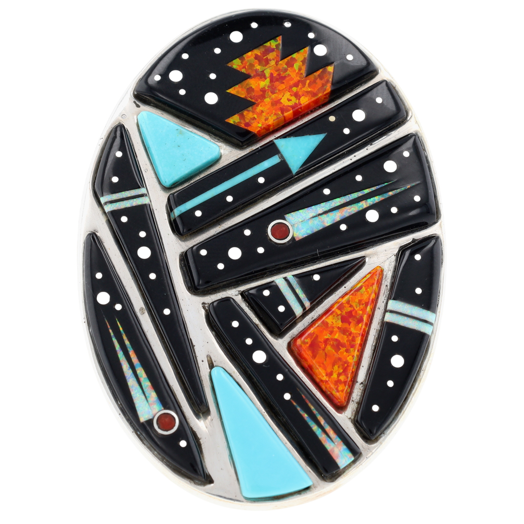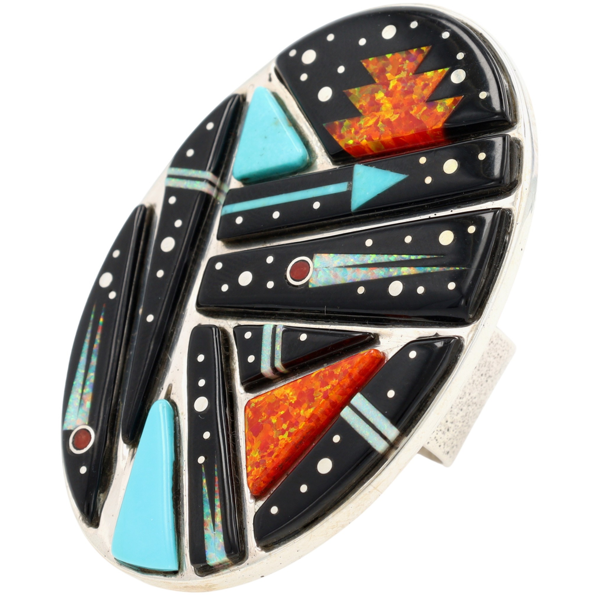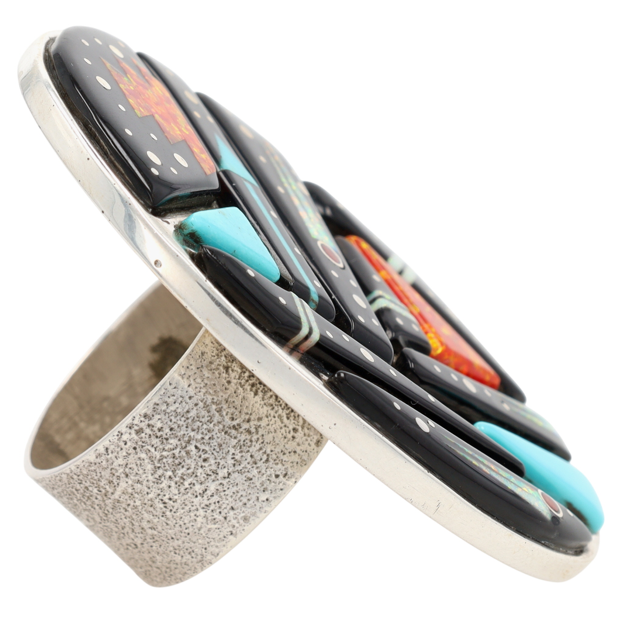 Presented in partnership with the historic Richardson’s Trading Post, a cornerstone of Native American jewelry since 1913. Selected from their archives of rare vintage and contemporary pieces. Matthew Jack Navajo Sterling Multi-Stone Night Sky Inlay Ring Sz. 9.5, 43g