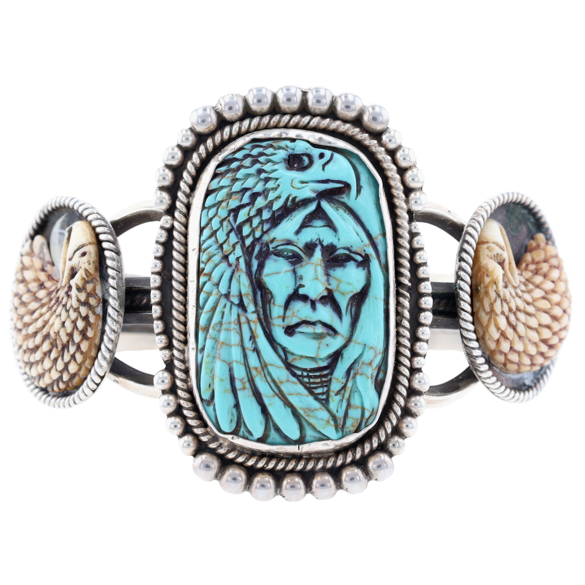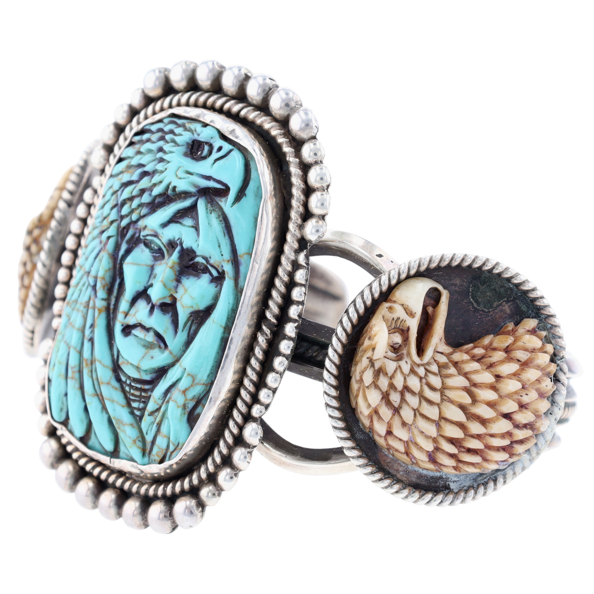-Carved Eagles of Bone, Turquoise Eagle and Chief